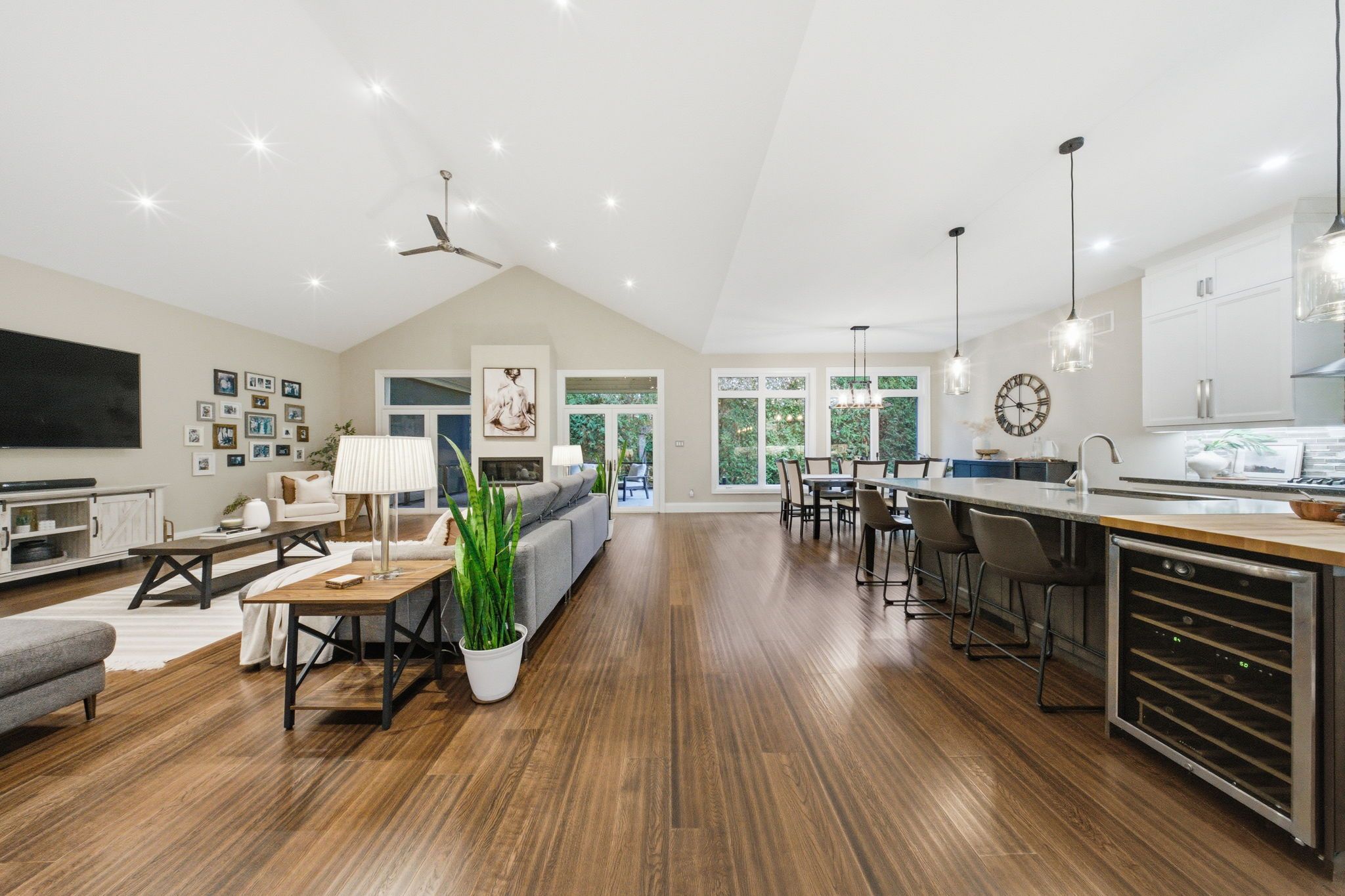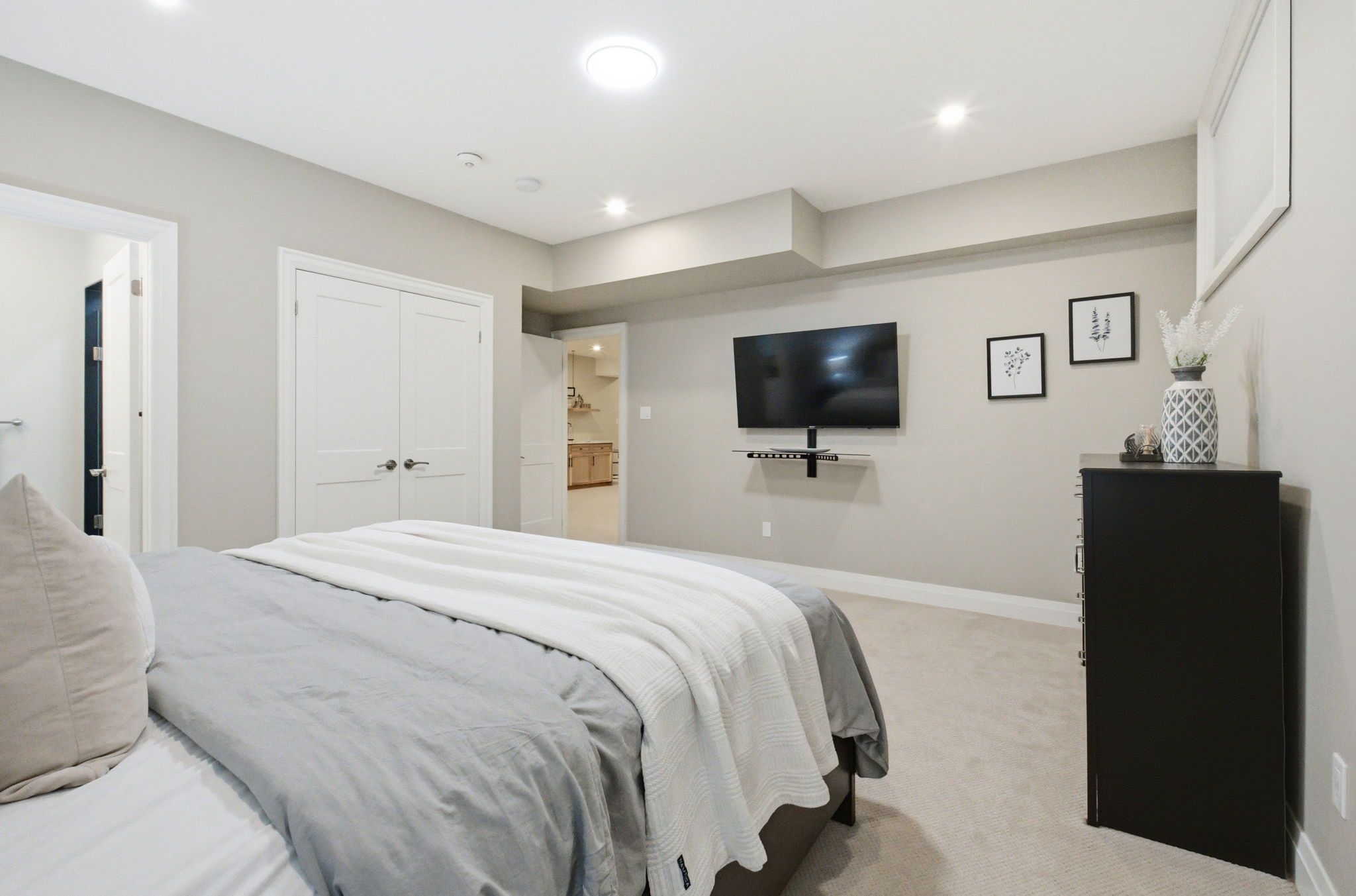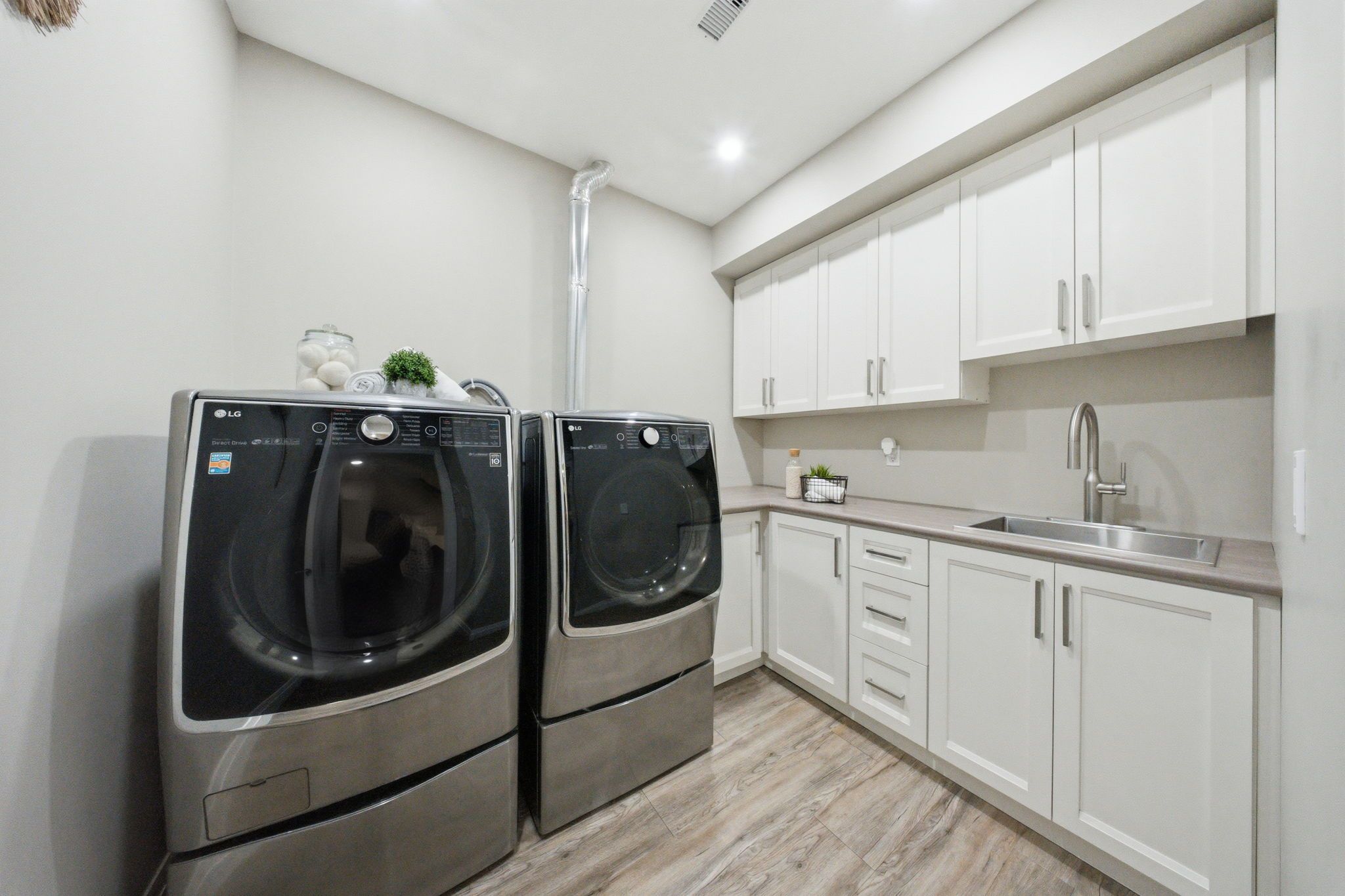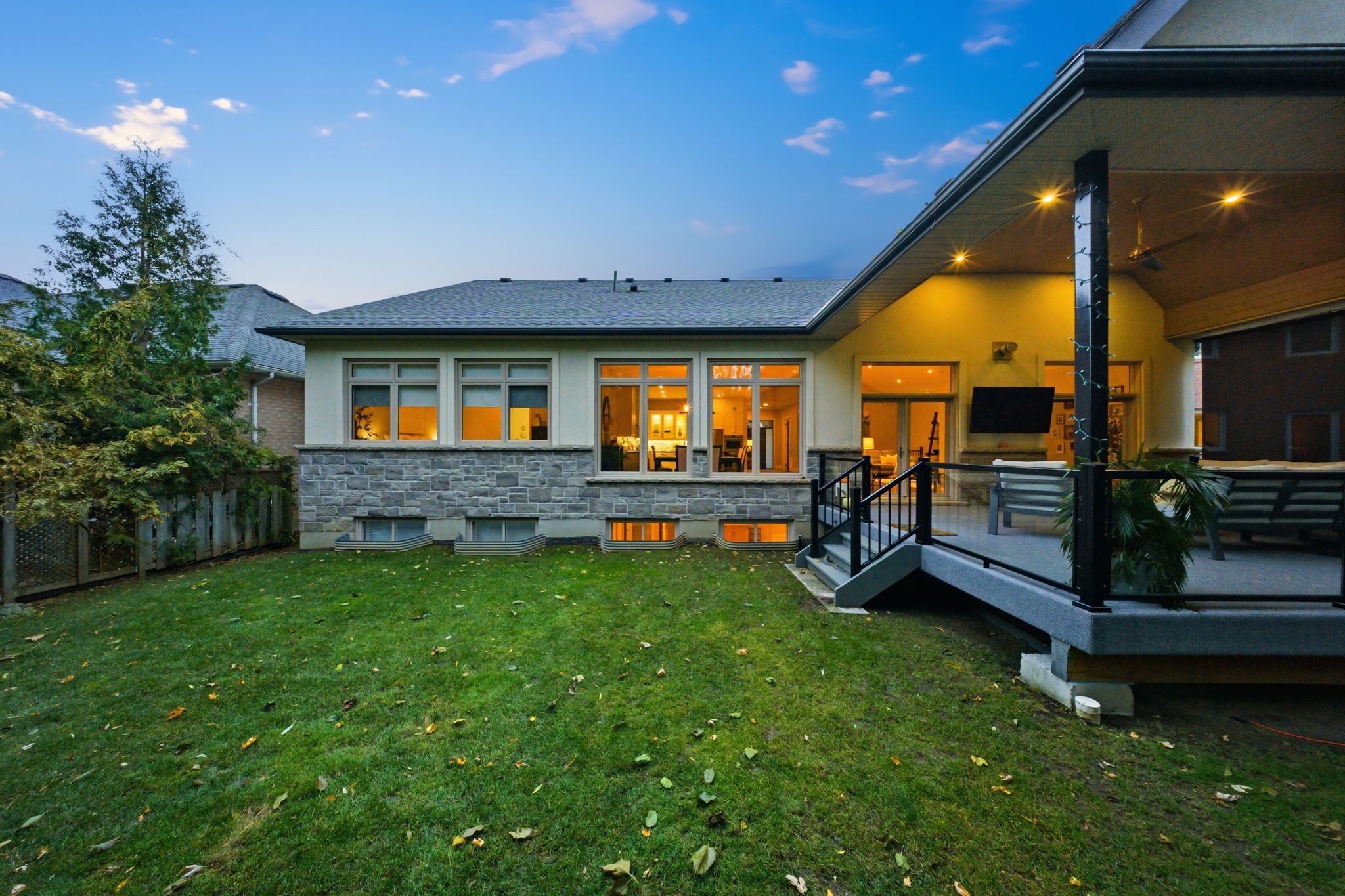 A rare offering in central pickering-this custom-built bungalow blends timeless architecture with modern luxury, steps from one of the city's top-rated elementary schools. From the moment you walk in, soaring 10ft ceilings and a dramatic 15ft vaulted great room set an unmistakably upscale tone. The open-concept layout delivers over 2,500sqft of refined main-floor living, perfectly suited for both large families and sophisticated downsizers who value space and comfort. The kitchen stands as the home's showpiece-a true chef's haven featuring quartz countertops, premium stainless-steel appliances, b/i double ovens, a gas range with pot filler, butcher-block island with prep sink, and a dedicated wine fridge. The living space extends outdoors through dual french door walkouts to a covered patio complete with illuminated glass railings, a mounted tv, designer fan, and a privacy screen, creating an effortless indoor-outdoor lifestyle. The bedroom wing offers serene luxury, including custom closets throughout and a primary suite with a spa-like ensuite showcasing an oversized glass shower, sculptural soaker tub, and a brilliantly designed walk-through dressing room that connects to a second bedroom-perfect for a nursery or home office. A floating staircase leads to the expansive 9ft high lower level, designed with remarkable versatility. Here you'll find a large rec area, wet bar, two additional bedrooms, three bathrooms, and two impressive bonus rooms-including an 800sqft room beneath the garage ideal for a gym, theatre, or storage. A second private entrance accesses a dedicated lower-level suite currently used as a salon-ideal for a home-based business or future kitchen/in-law suite. Completing the home is a heated garage with oversized doors, adding to the thoughtful functionality throughout this meticulously crafted property. Opportunities like this don't come often. Schedule a private tour and see firsthand why this home stands in a class of its own.