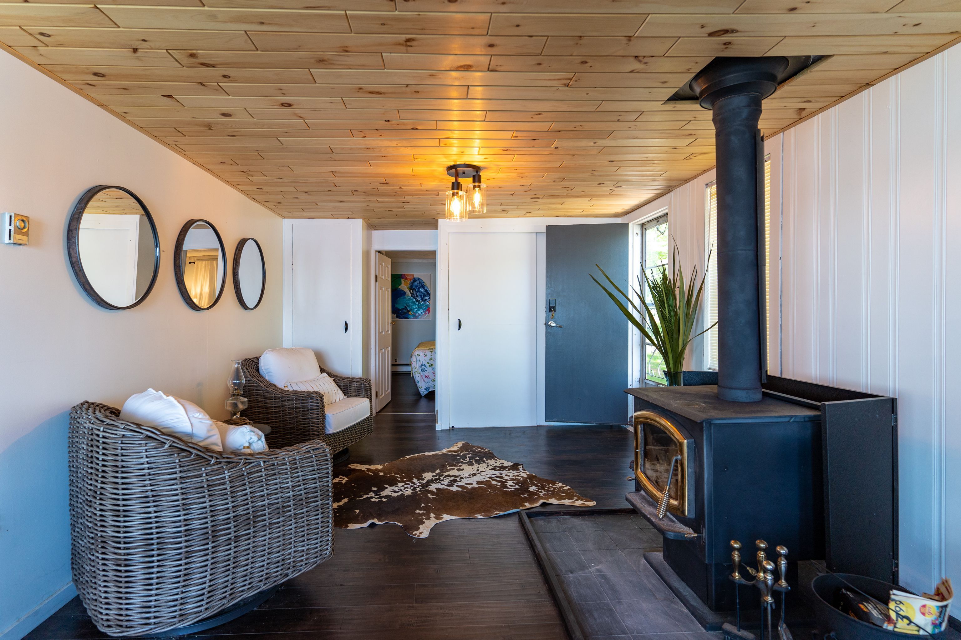 • Airtight woodstove keeps the cottage warm during cooler months.