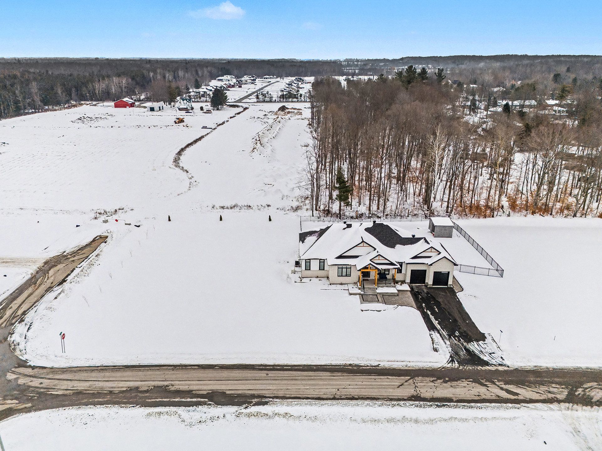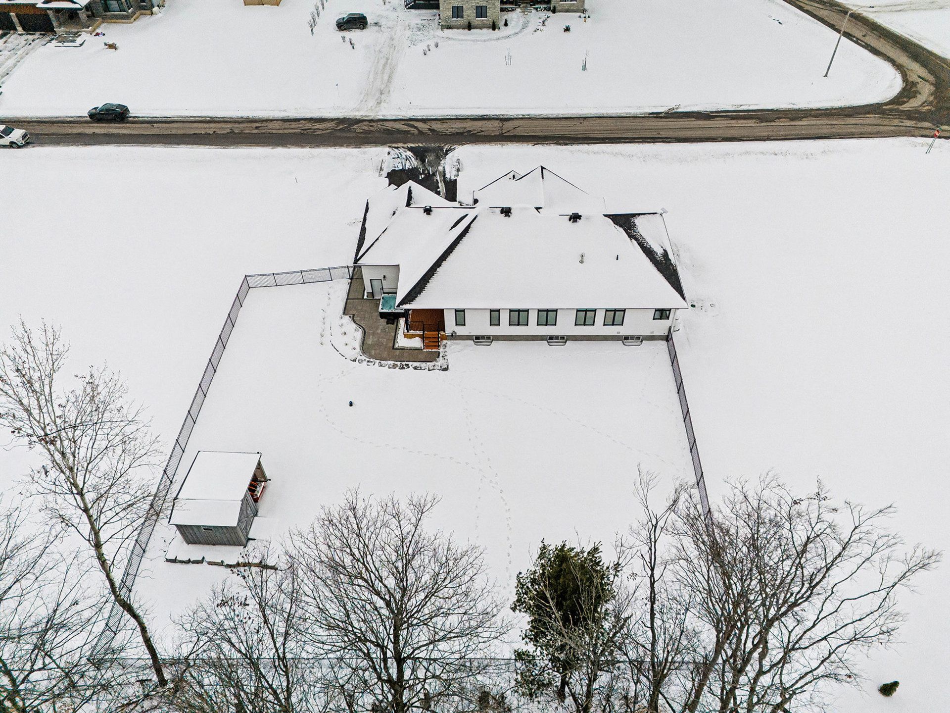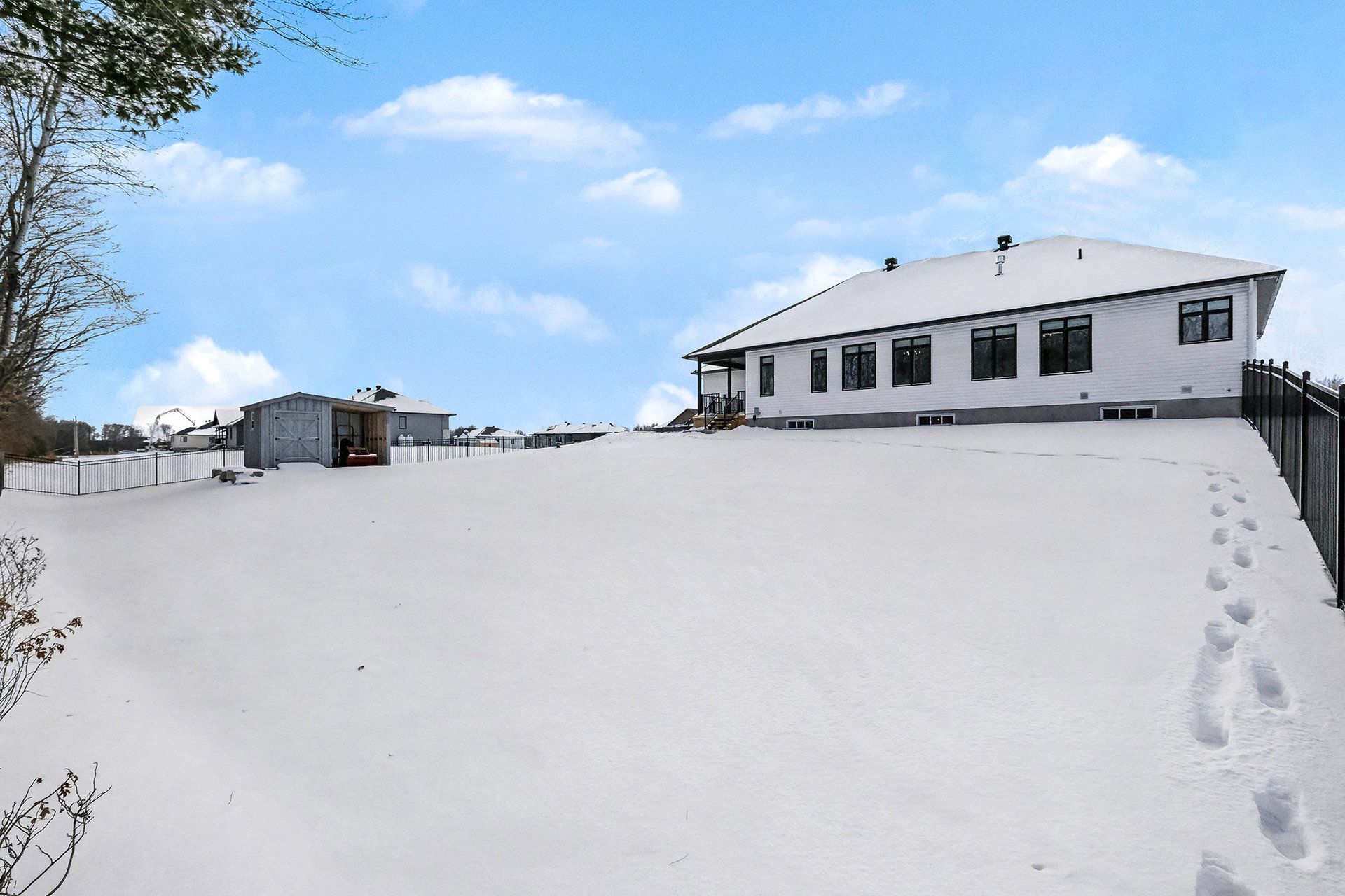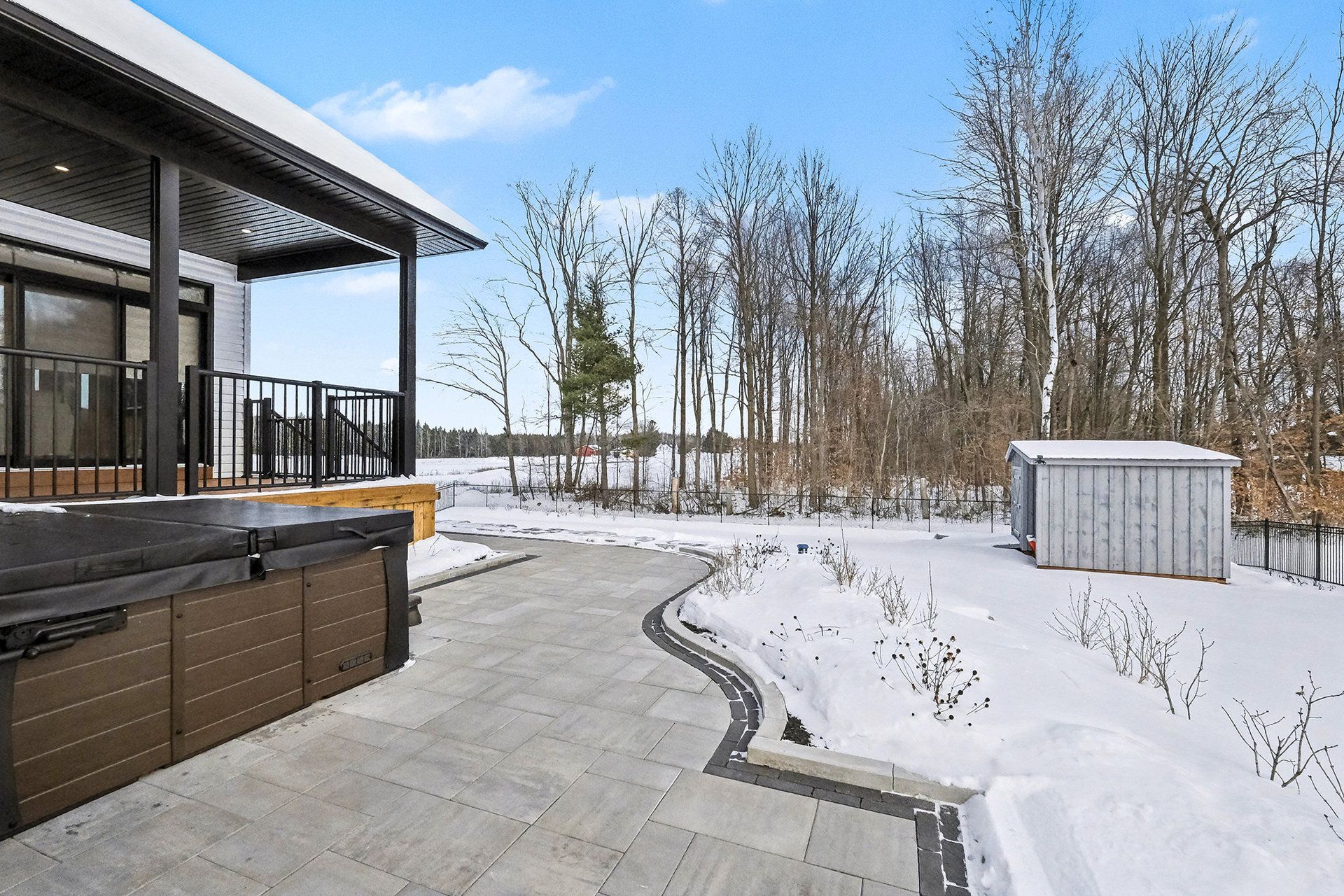 The sussex in silver creek offers a private retreat on 3/4 acre in the peaceful community of hallville. This turnkey, energystar-certified home by parkview homes blends timeless style with modern function in a serene everyday setting. A paved laneway leads to a landscaped front yard with raised gardens and in-ground accent lighting. Inside, the open-concept design features tray ceilings, wide-plank engineered hardwood, and a striking gas fireplace anchoring the living room. The chef-inspired kitchen includes quartz counters, stylish backsplash, stainless steel appliances, large sink, ample storage, and an oversized island perfect for entertaining. A covered porch off the dining area extends living outdoors. A mudroom with garage access and adjacent laundry adds efficiency, while a dedicated office or flex space suits work, study, or hobbies. The primary suite is a true retreat with a spa-like five-piece ensuite featuring a freestanding soaker tub, glass-enclosed shower, and a spacious walk-in closet. Two additional generous bedrooms share a nearby three-piece bath. The lower level offers hardwood flooring and a professionally installed 20' x 12' gym flooring area. Automatic hunter douglas blinds, a generac backup system, and a water treatment system enhance comfort and peace of mind. Outside, the private backyard is designed for relaxation, featuring a large hot tub with lounger, lush greenery, apple, pear, and evergreen trees, perennial gardens, and rose bushes. Elegant wrought-iron fencing on three sides with chain-link along the tree line adds privacy. A professionally designed amish-style shed with lean-to provides ample storage, complementing the attached two-car garage. Custom gemstone permanent decorative lighting highlights the exterior, offering beauty and year-round curb appeal. This exceptional property delivers refined living, thoughtful design, and a tranquil country setting - truly a place to call home.