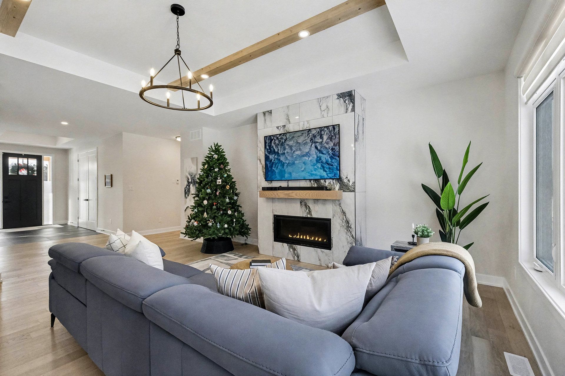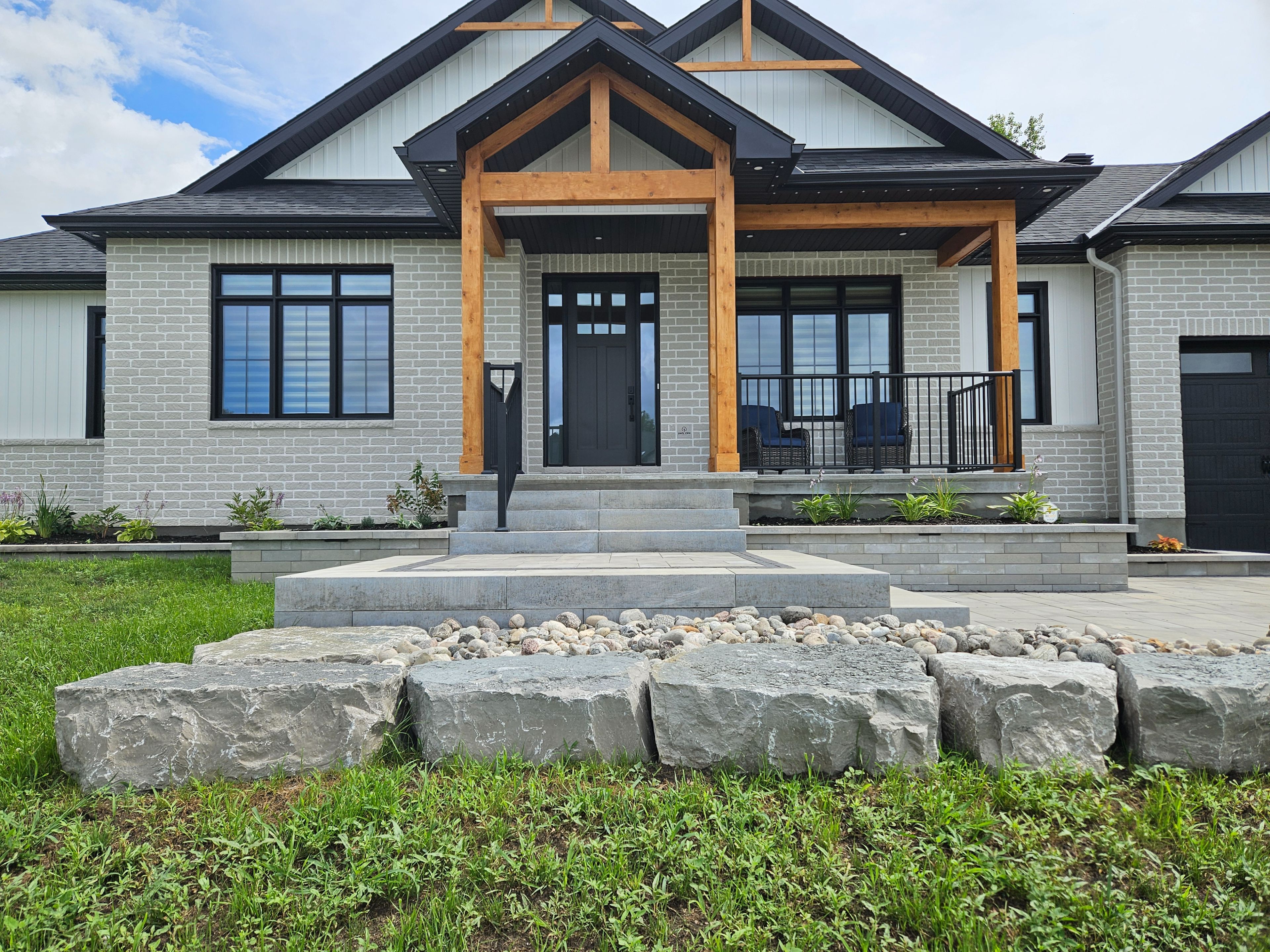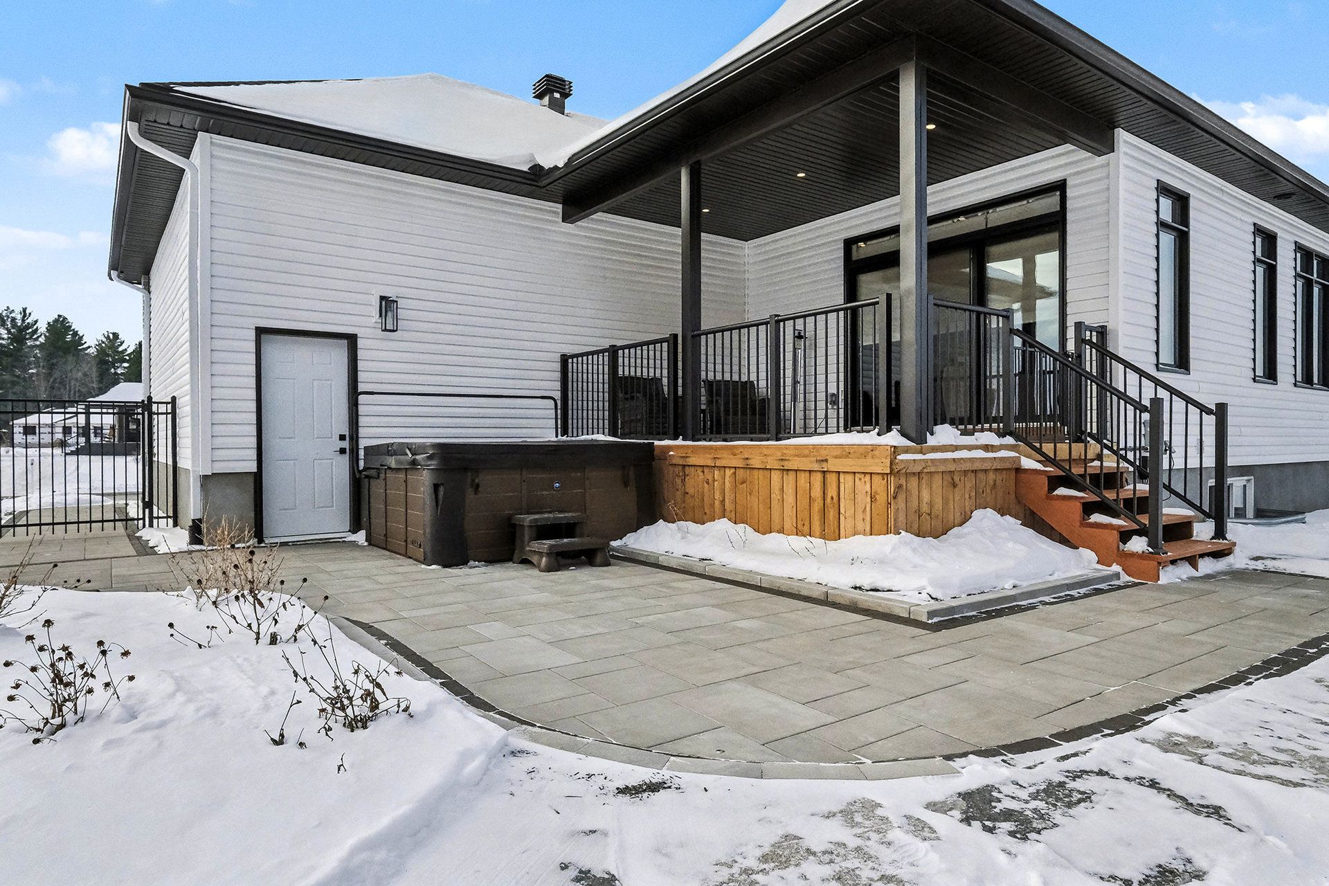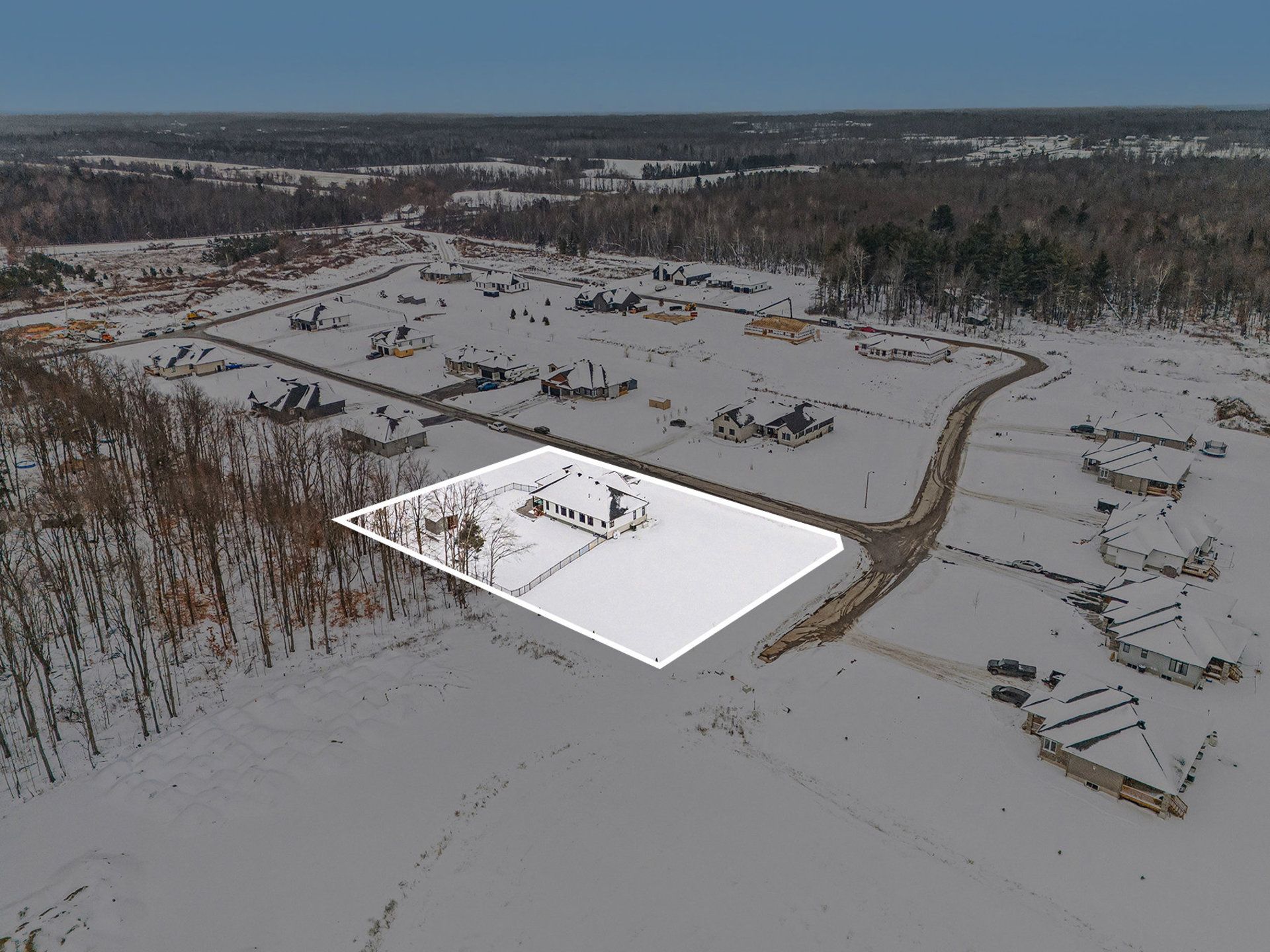 The sussex in silver creek offers a private retreat on 3/4 acre in the peaceful community of hallville. This turnkey, energystar-certified home by parkview homes blends timeless style with modern function in a serene everyday setting. A paved laneway leads to a landscaped front yard with raised gardens and in-ground accent lighting. Inside, the open-concept design features tray ceilings, wide-plank engineered hardwood, and a striking gas fireplace anchoring the living room. The chef-inspired kitchen includes quartz counters, stylish backsplash, stainless steel appliances, large sink, ample storage, and an oversized island perfect for entertaining. A covered porch off the dining area extends living outdoors. A mudroom with garage access and adjacent laundry adds efficiency, while a dedicated office or flex space suits work, study, or hobbies. The primary suite is a true retreat with a spa-like five-piece ensuite featuring a freestanding soaker tub, glass-enclosed shower, and a spacious walk-in closet. Two additional generous bedrooms share a nearby three-piece bath. The lower level offers hardwood flooring and a professionally installed 20' x 12' gym flooring area. Automatic hunter douglas blinds, a generac backup system, and a water treatment system enhance comfort and peace of mind. Outside, the private backyard is designed for relaxation, featuring a large hot tub with lounger, lush greenery, apple, pear, and evergreen trees, perennial gardens, and rose bushes. Elegant wrought-iron fencing on three sides with chain-link along the tree line adds privacy. A professionally designed amish-style shed with lean-to provides ample storage, complementing the attached two-car garage. Custom gemstone permanent decorative lighting highlights the exterior, offering beauty and year-round curb appeal. This exceptional property delivers refined living, thoughtful design, and a tranquil country setting - truly a place to call home.