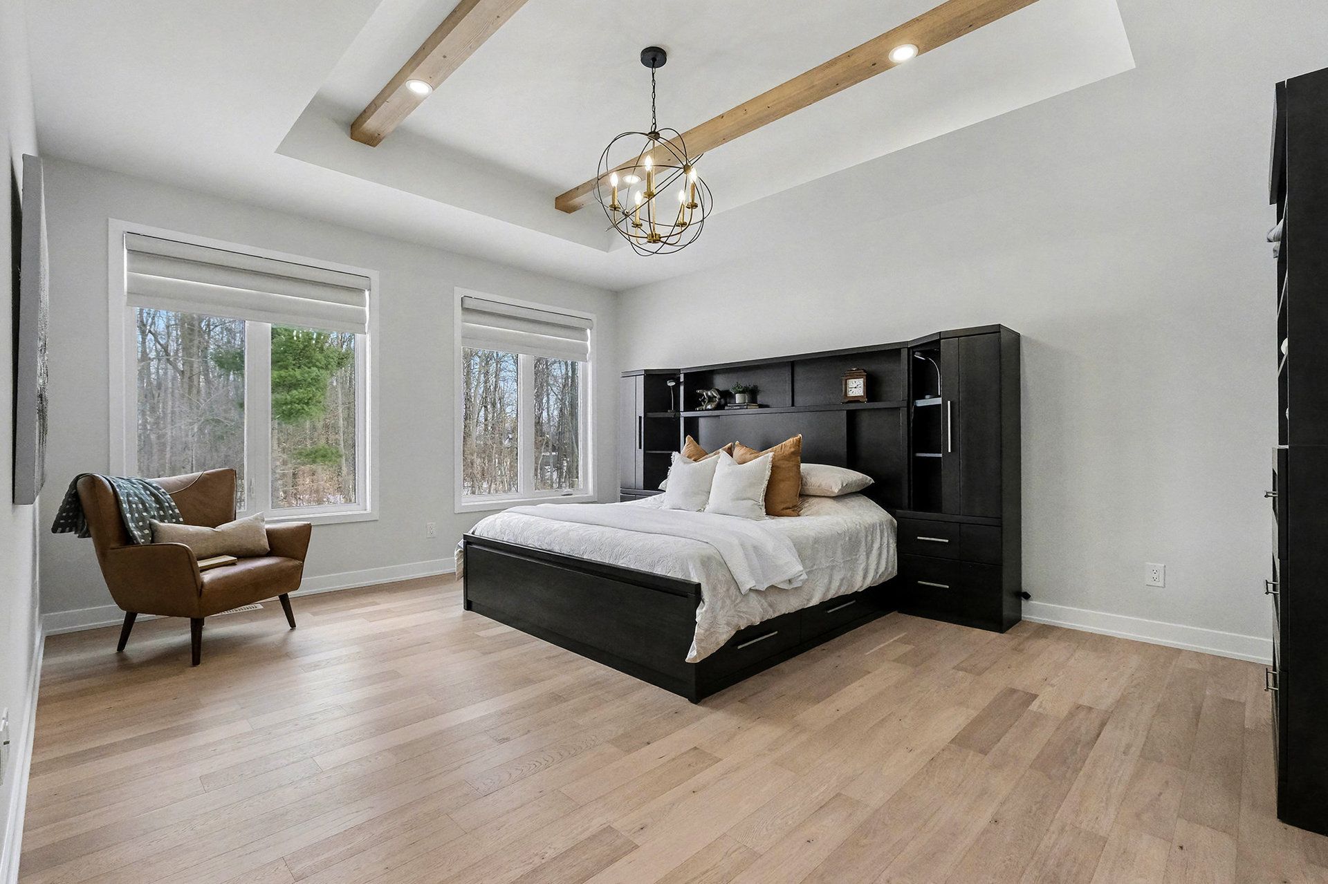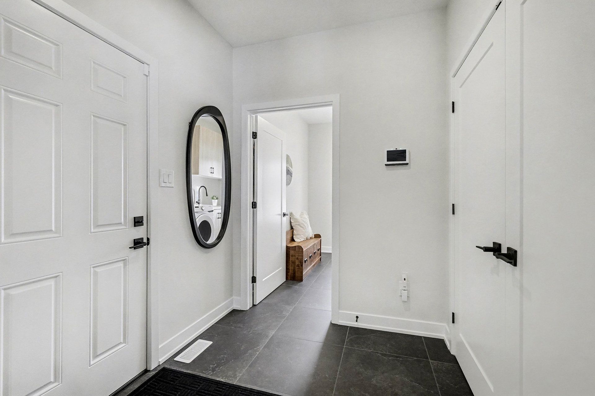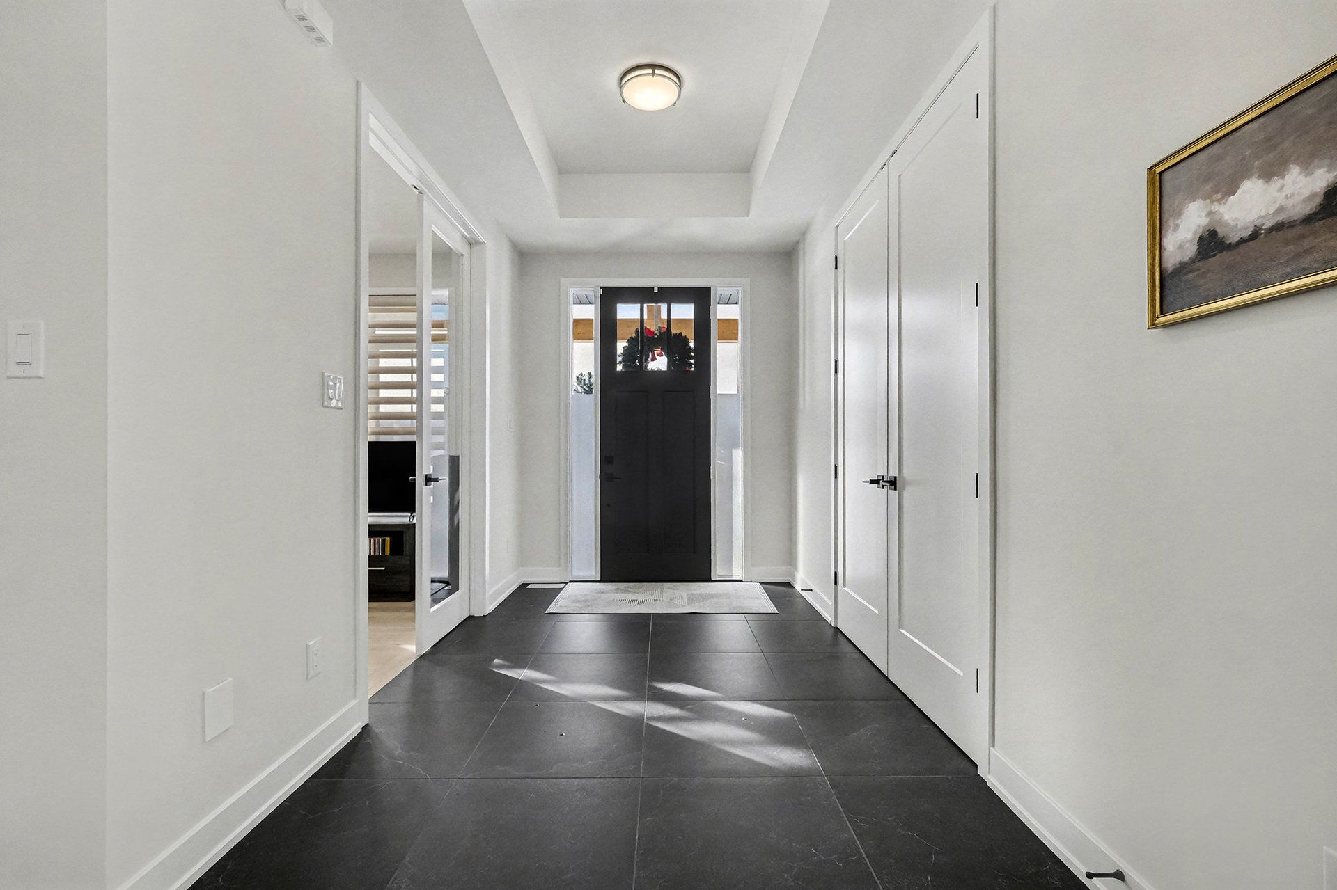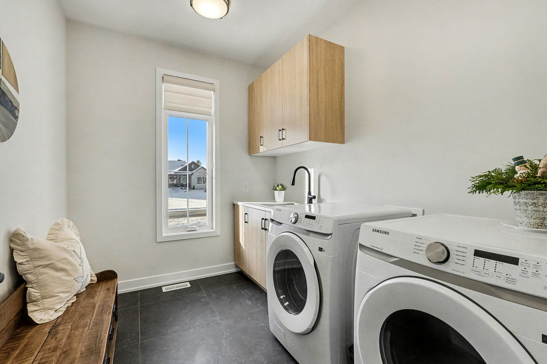 The sussex in silver creek offers a private retreat on 3/4 acre in the peaceful community of hallville. This turnkey, energystar-certified home by parkview homes blends timeless style with modern function in a serene everyday setting. A paved laneway leads to a landscaped front yard with raised gardens and in-ground accent lighting. Inside, the open-concept design features tray ceilings, wide-plank engineered hardwood, and a striking gas fireplace anchoring the living room. The chef-inspired kitchen includes quartz counters, stylish backsplash, stainless steel appliances, large sink, ample storage, and an oversized island perfect for entertaining. A covered porch off the dining area extends living outdoors. A mudroom with garage access and adjacent laundry adds efficiency, while a dedicated office or flex space suits work, study, or hobbies. The primary suite is a true retreat with a spa-like five-piece ensuite featuring a freestanding soaker tub, glass-enclosed shower, and a spacious walk-in closet. Two additional generous bedrooms share a nearby three-piece bath. The lower level offers hardwood flooring and a professionally installed 20' x 12' gym flooring area. Automatic hunter douglas blinds, a generac backup system, and a water treatment system enhance comfort and peace of mind. Outside, the private backyard is designed for relaxation, featuring a large hot tub with lounger, lush greenery, apple, pear, and evergreen trees, perennial gardens, and rose bushes. Elegant wrought-iron fencing on three sides with chain-link along the tree line adds privacy. A professionally designed amish-style shed with lean-to provides ample storage, complementing the attached two-car garage. Custom gemstone permanent decorative lighting highlights the exterior, offering beauty and year-round curb appeal. This exceptional property delivers refined living, thoughtful design, and a tranquil country setting - truly a place to call home.