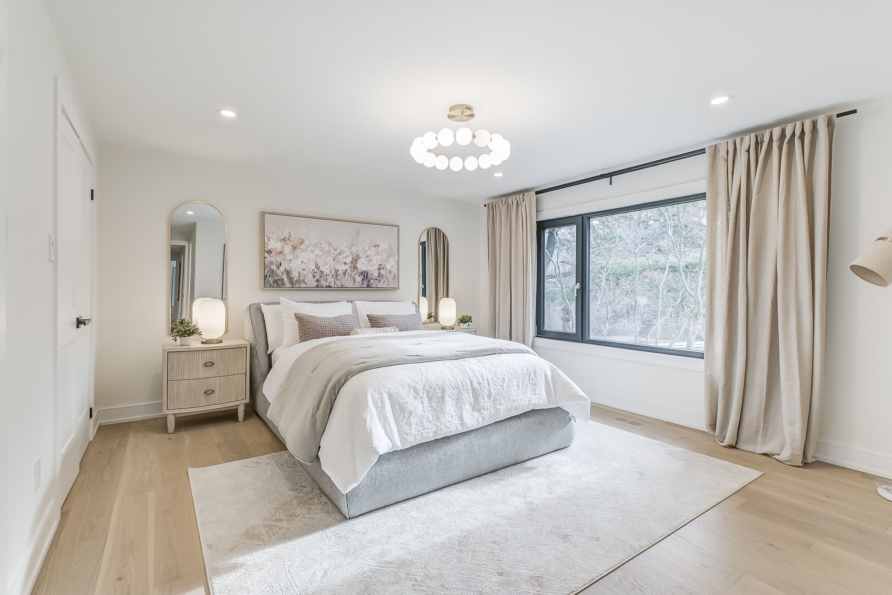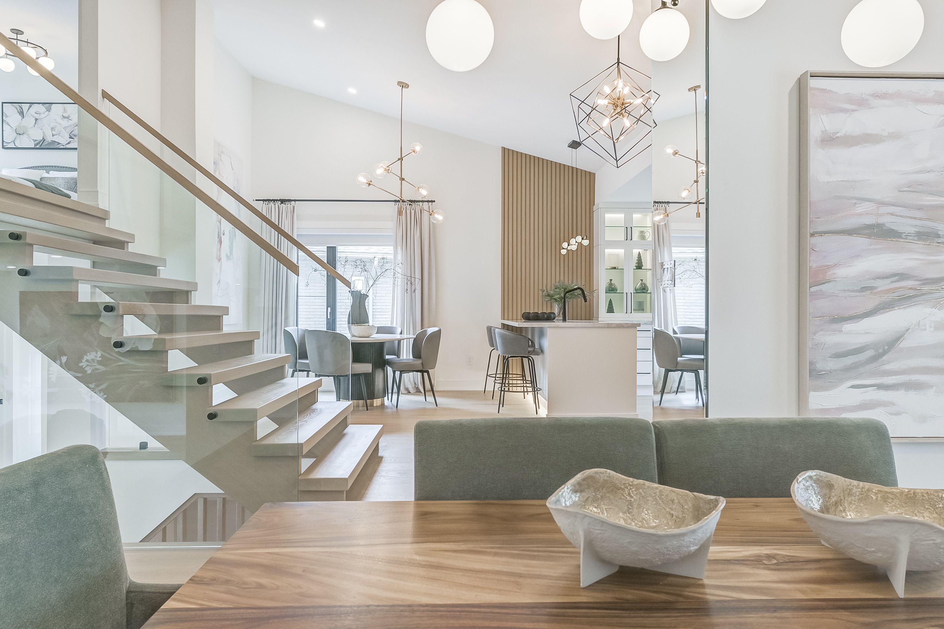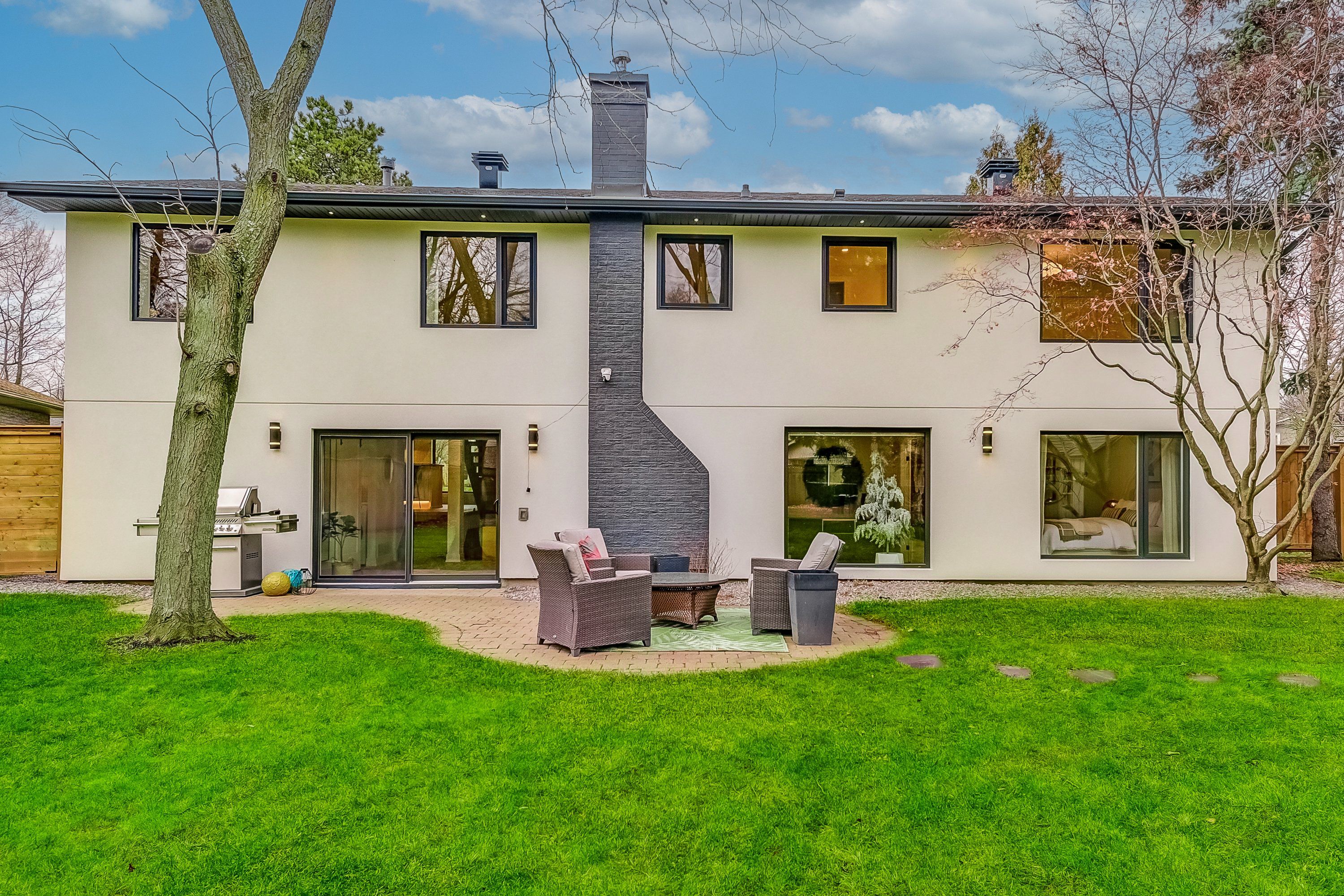 Experience exquisite elegance in this expertly remodeled backsplit in prestigious clarkson, just steps away from the lake. Offering 2,850 sf of refined living space, this 4+1-bed, 3-bath residence immediately impresses with it's soaring cathedral ceiling and flowing open concept layout, thoughtfully designed for elevated family or executive living. Bring out your inner chef with a bright kitchen lined with gleaming polished quartz counters and backsplash, custom cabinets and built-in high-end bosch appliances. The central floating staircase leads you to the second floor bedrooms, with gorgeous views of the expansive 95 x 155 lot. Sophisticated ambiance lives in the ground floor family room, with its stunning fireplace feature wall giving the home a grand appeal. Direct access to the sprawling backyard, perfect for al fresco dining, with ample room for play, gardening, and relaxation. Located just minutes away from various parks and walking trails, clarkson go station, lake ontario, rattray marsh, port credit and downtown oakville. Created for memorable moments inside and out, this home is the definition of luxury, comfort, and style.
