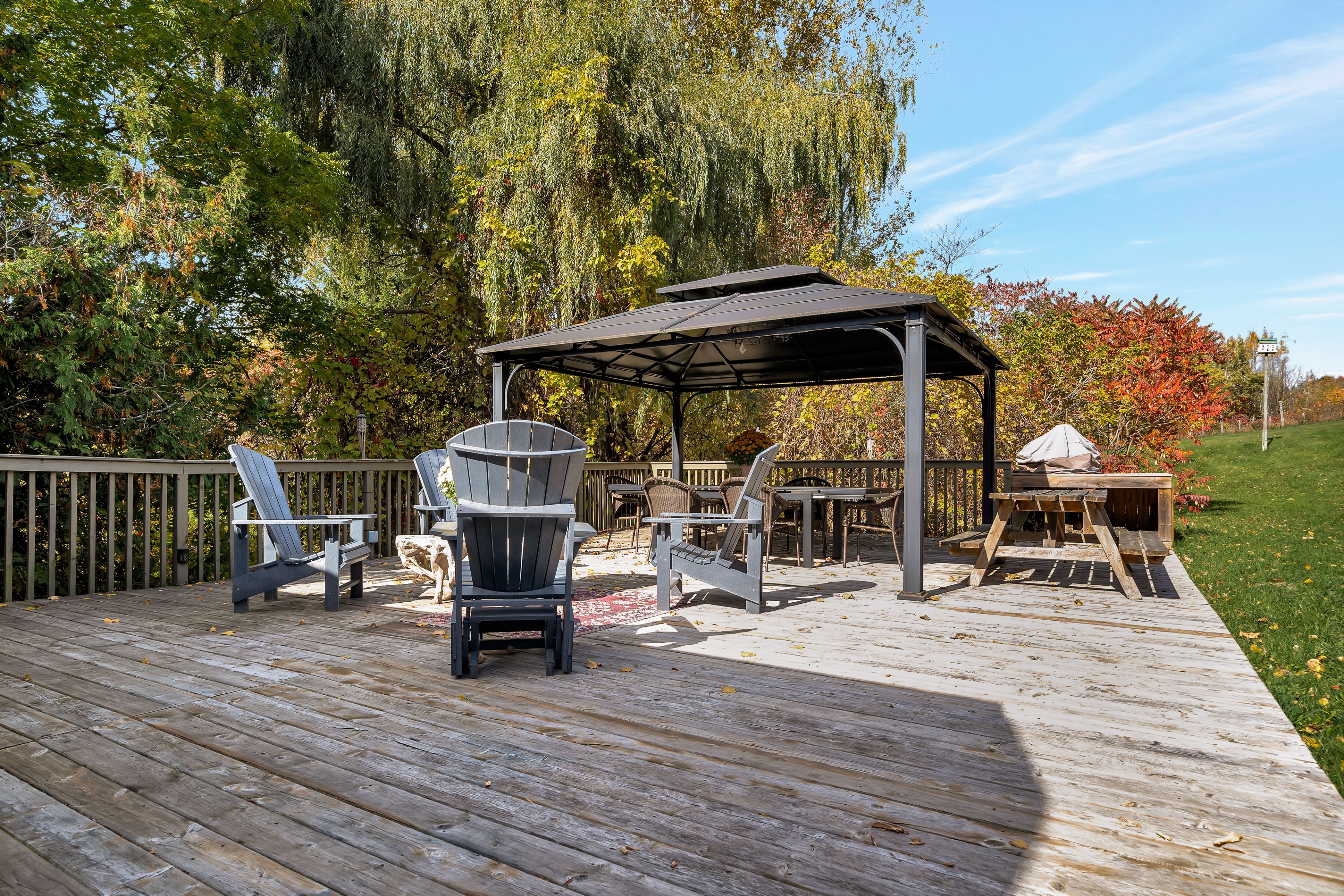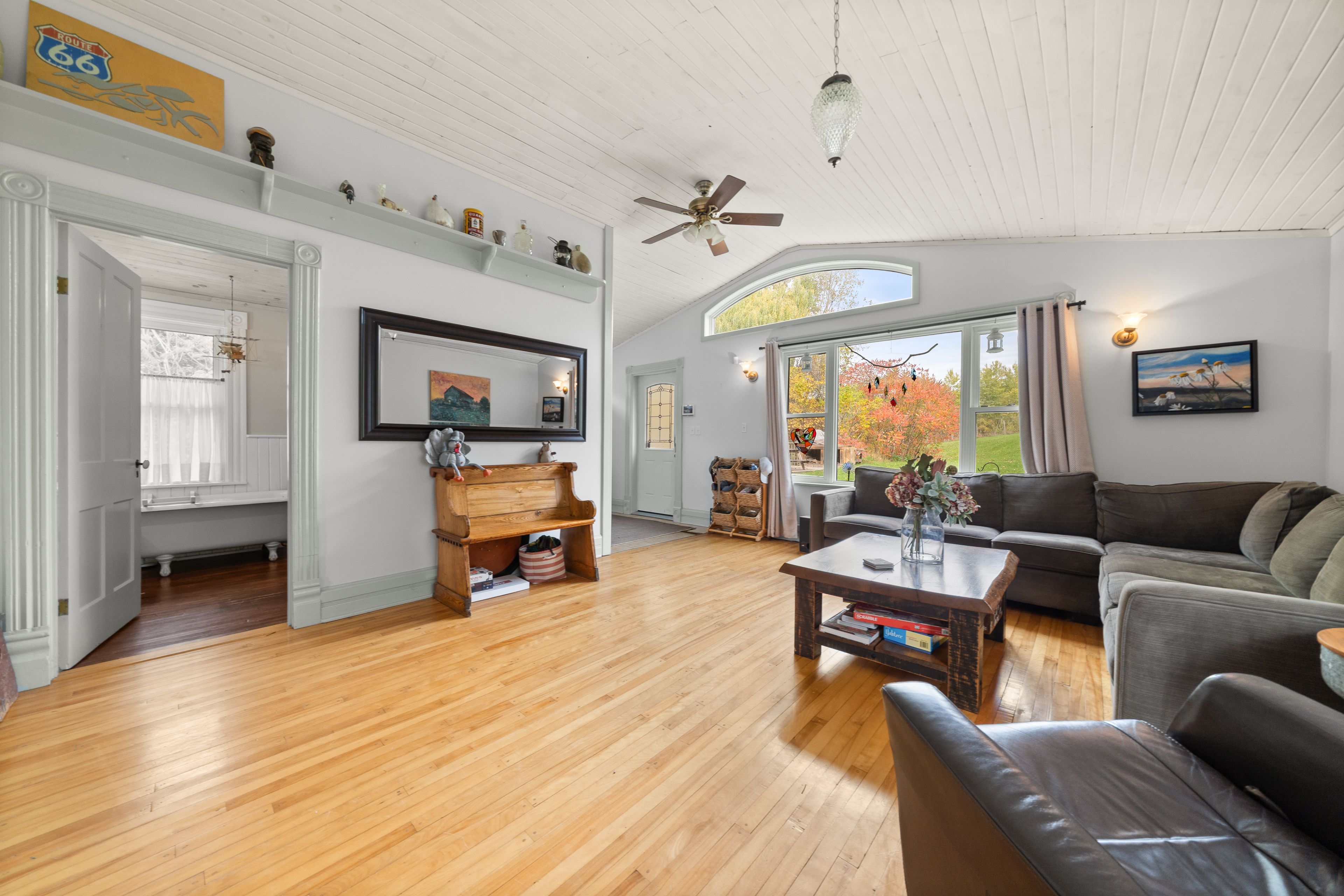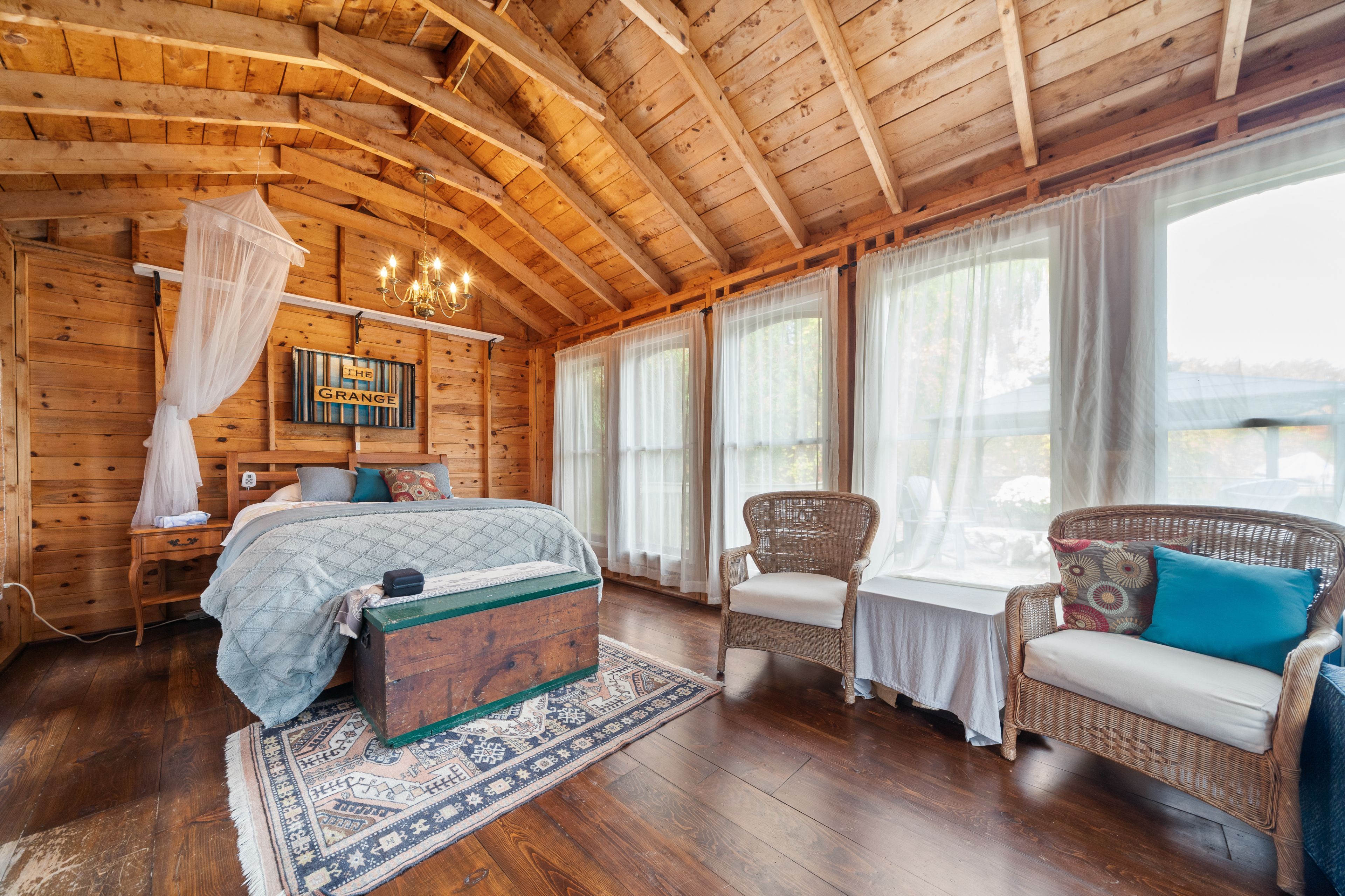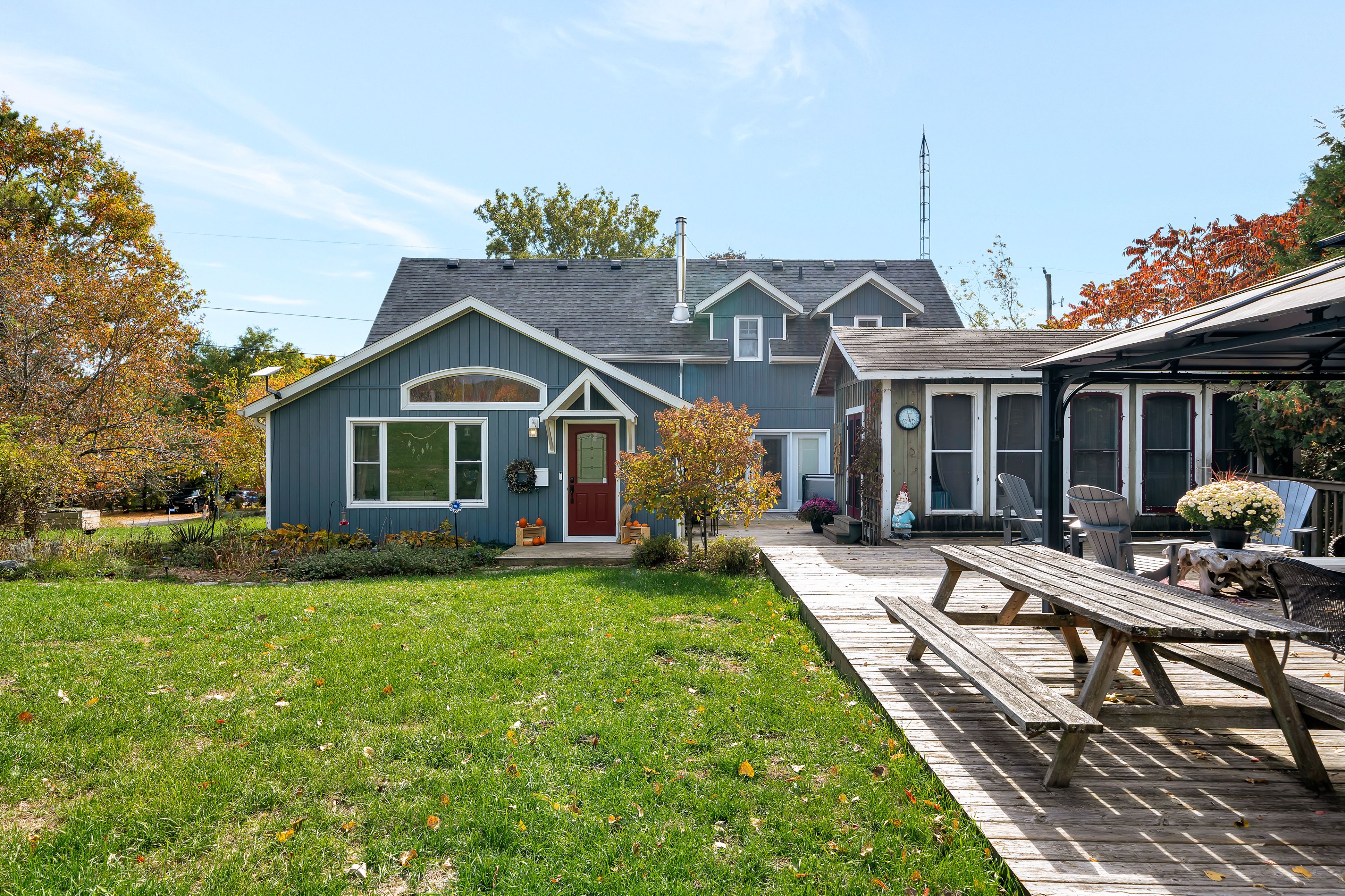 From a bird's-eye perch, the full magic of this timeless 45-acre family estate unfolds-a retreat blending history, character & opportunity. The vibrant setting features a charming c. 1900 farmhouse, a majestic 1870 post-and-beam barn, two cozy bunkies & pavilion + a detached garage w/ loft-offering > 5,000 sq. Ft. Of versatile living, working, & hobby space. Amid rolling hills, streams, and hardwood forest bursting with maple, oak & pine in full fall colour. Lovingly updated & expanded in 2018, the farmhouse retains its heritage charm with a modern design to leverage main floor living w/ an expanded 2-floor footprint, 4 bdrms + 3 baths. Enjoy the custom pine kitchen, natural hardwood floors & cozy wood stove centering the family dining hub. The new bright main-floor primary suite features glass french doors streaming natural light, accessible glass shower ensuite + deck w/o. Upstairs offers an equally large family room w/ ensuite, (potential 2nd primary) + addt'l bdrms & an office nook. Major upgrades incl. Electrical, plumbing, hvac & new b/u generator. Outdoors, a large guest bunkie, hot tub, bbq and covered gazebo tease the backyard oasis to come. Approx 5. 5 acres of cleared rolling hills offer majestic views of two fenced paddocks ready & waiting for an equestrian re-fresh and an array of options for an in-ground pool +++ following the natural landscape of the property. A screened-in pavilion & new 2nd bunkie sit atop the 1st rolling hill. The grand barn towering 30' w/ timeless appeal, has 3 w/o levels: stables below, a heated workshop, and 24' soaring loft spanning the entire 30' x 60' barn. Ideal for a barndominium, artisan studio, or business. Detach 1. 5 car garage for toys, tools & tractors w/ 2nd level loft t. B. Finished. Massive frontage, plenty of acreage and strategic placement opportunities for privacy w/ a 2nd home or potential severance for the kids. Kms of trails await for horseback riding, hiking, cycling & x-country skiing - a 4 season paradise.