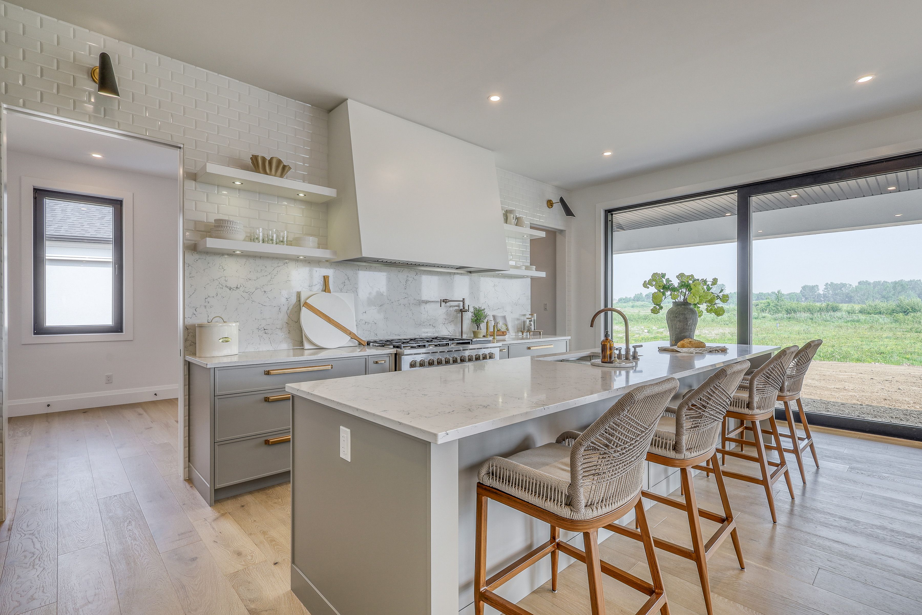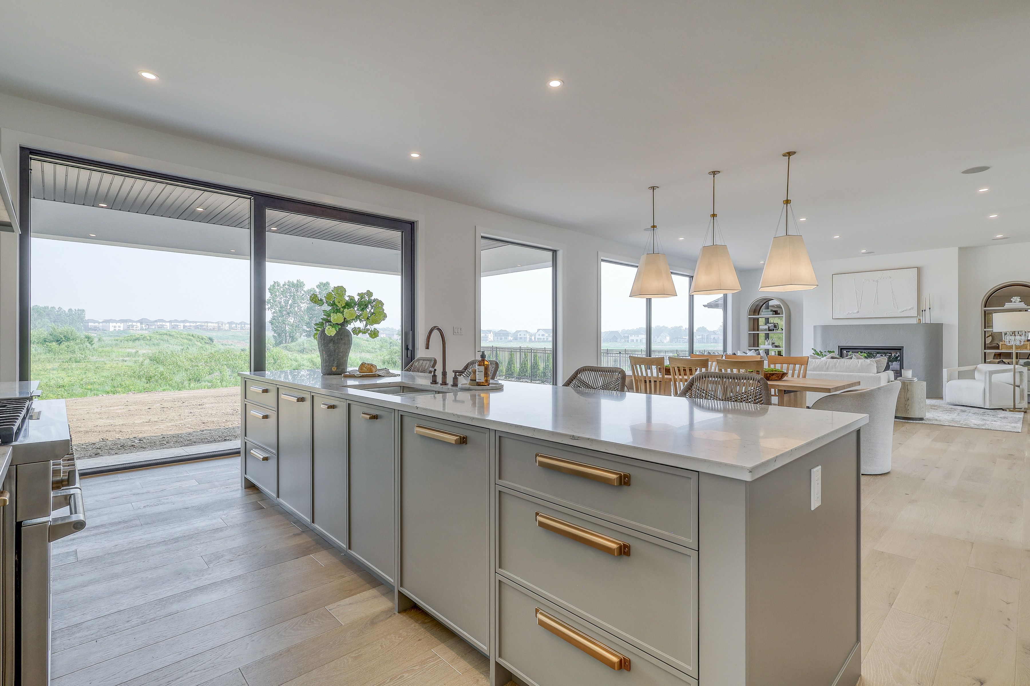 Currently under construction, timeless design offering 4 spacious bedrooms and almost 4000 sq ft. With endless upgrades. Located in the desirable neighbourhood of edgewater estates, only steps from komoka provincial parks, trails, nature and still close to amenities. The main floor is open concept with a wall of windows and an oversized sliding door to the covered patio. The kitchen has beautiful custom cabinetry to the 10 ft ceilings. Glass detail in the display cabinets, quartz counters, custom range hood and high end appliances. Through hidden pocket doors you find a large mudroom and a pantry that can serve as a full second kitchen. The main floor also features a private office space, gas fireplace in the living room and a 2 storey entrance way. The staircase is grand and elegant with plenty of natural light. The primary bedroom has views of open space. A beautiful ensuite with a glass shower and freestanding soaker tub. The walk-in closet is lined with cabinetry for maximum storage. The well planned laundry room offers hidden hampers and quartz folding counters. The second bedroom offers a private ensuite and walk-in closet. All rooms are spacious with great views and hardwood floors. This impressive home sits on a lookout lot backing onto the pond with a 3 car garage. Photos are of past model home.