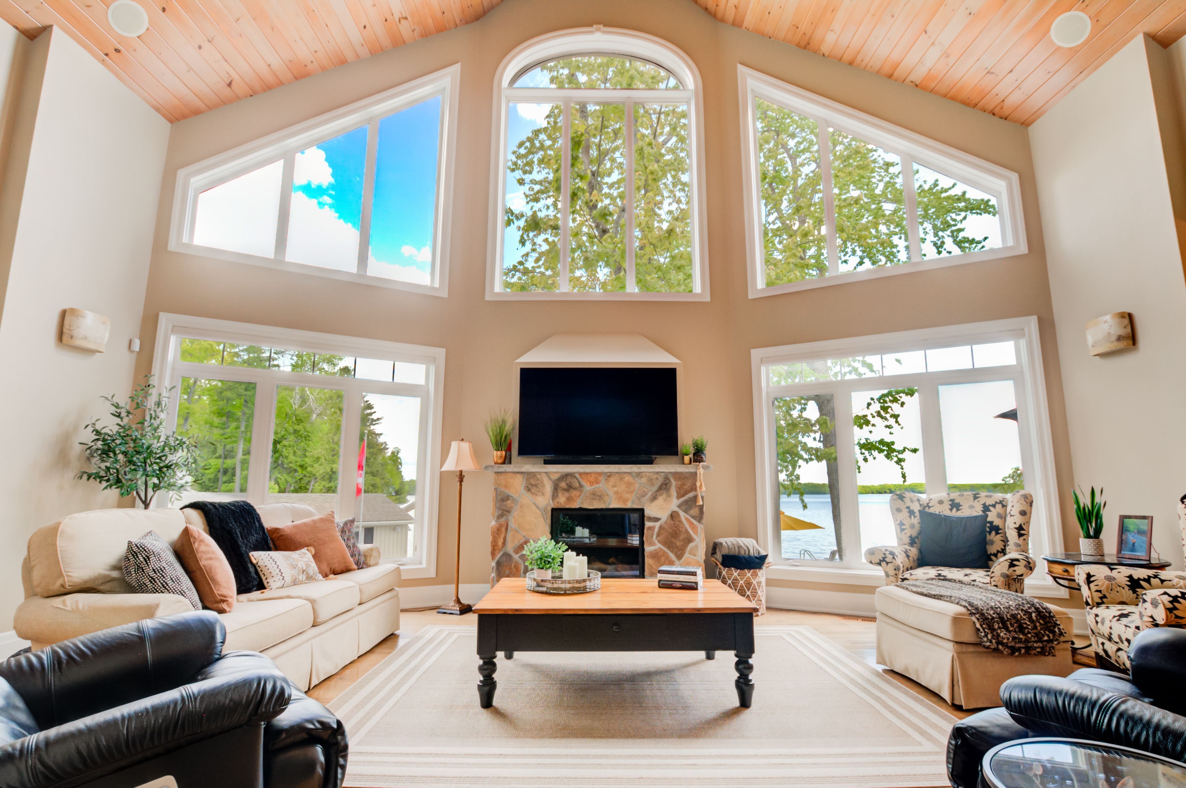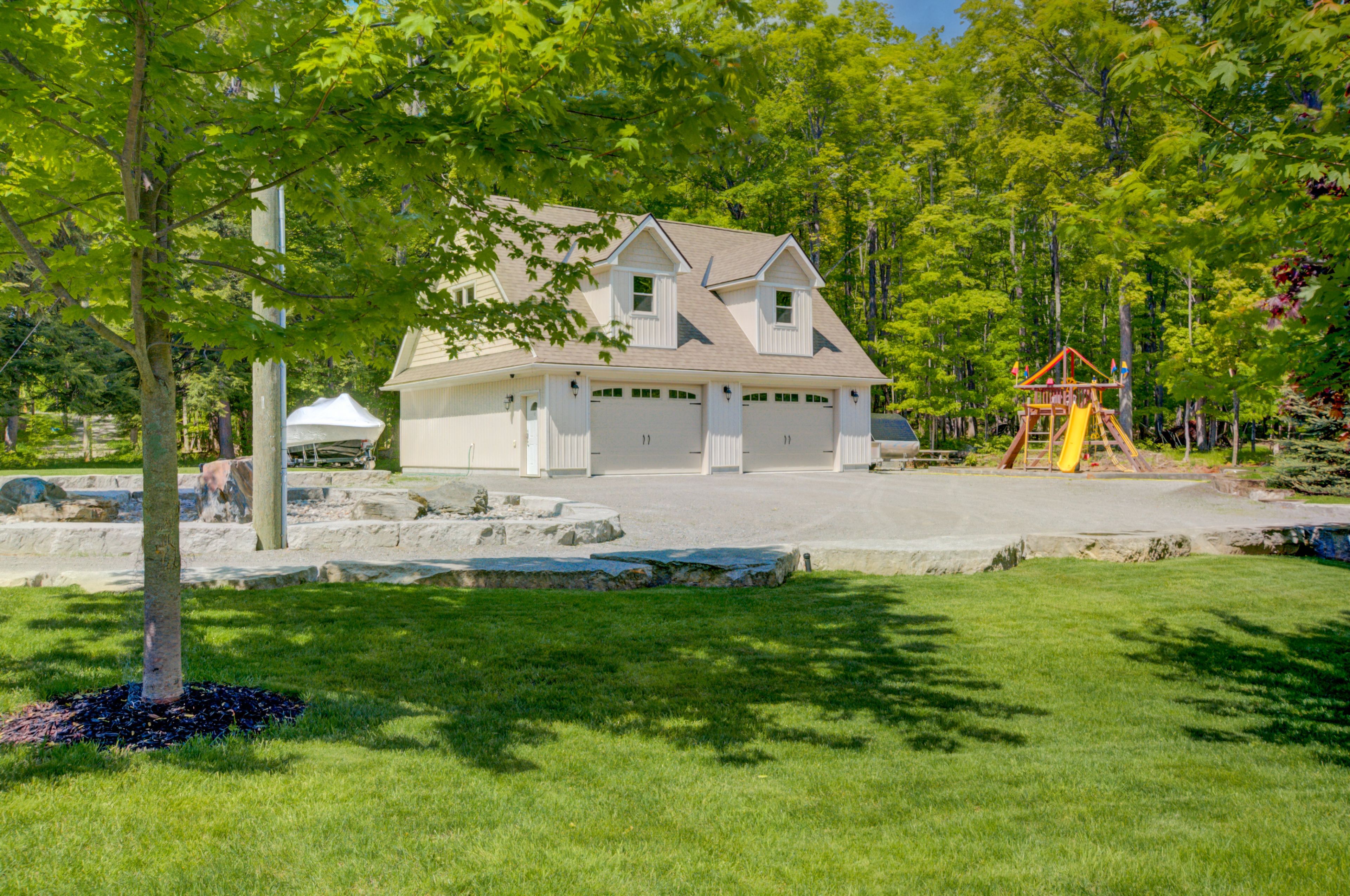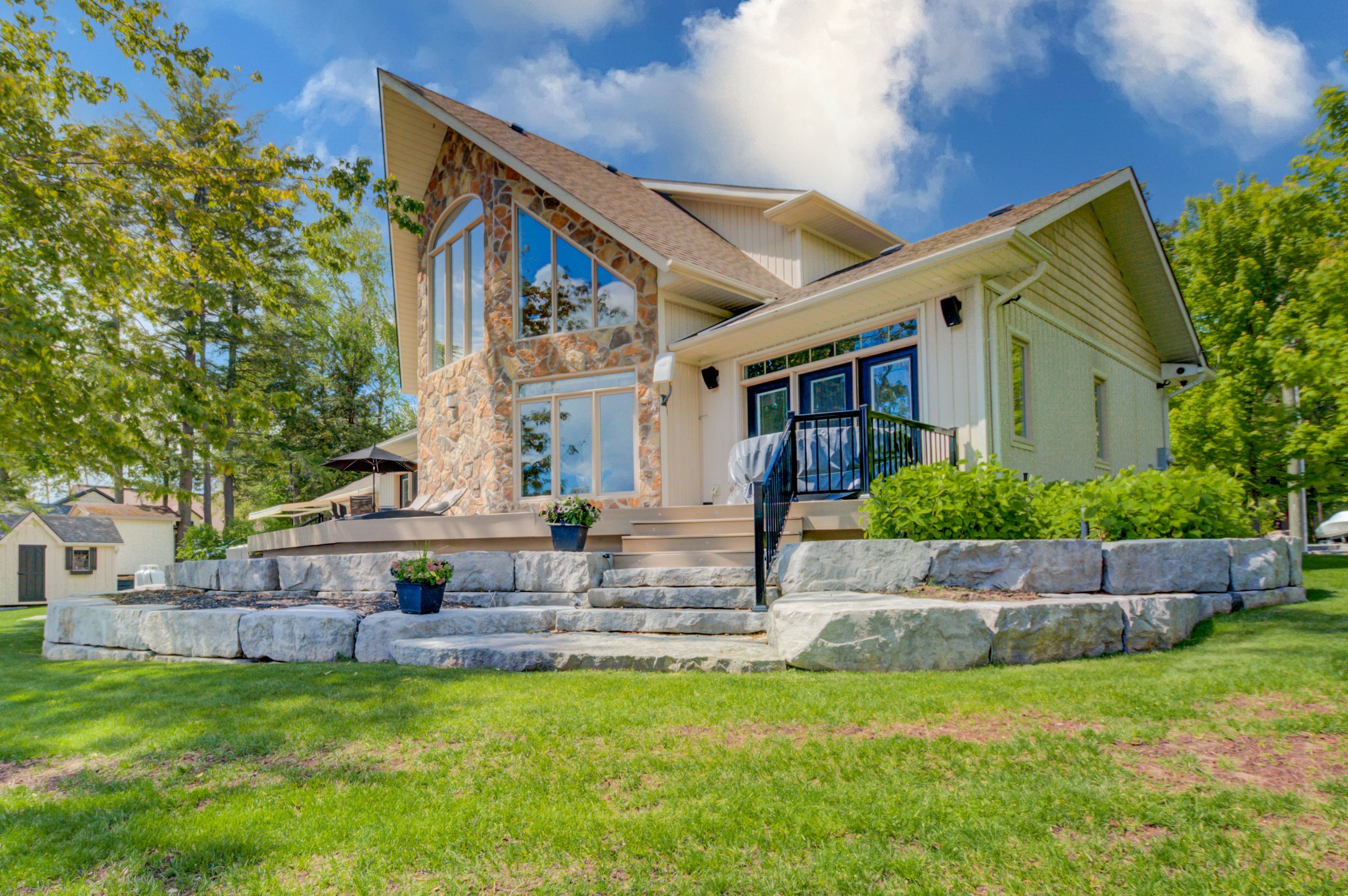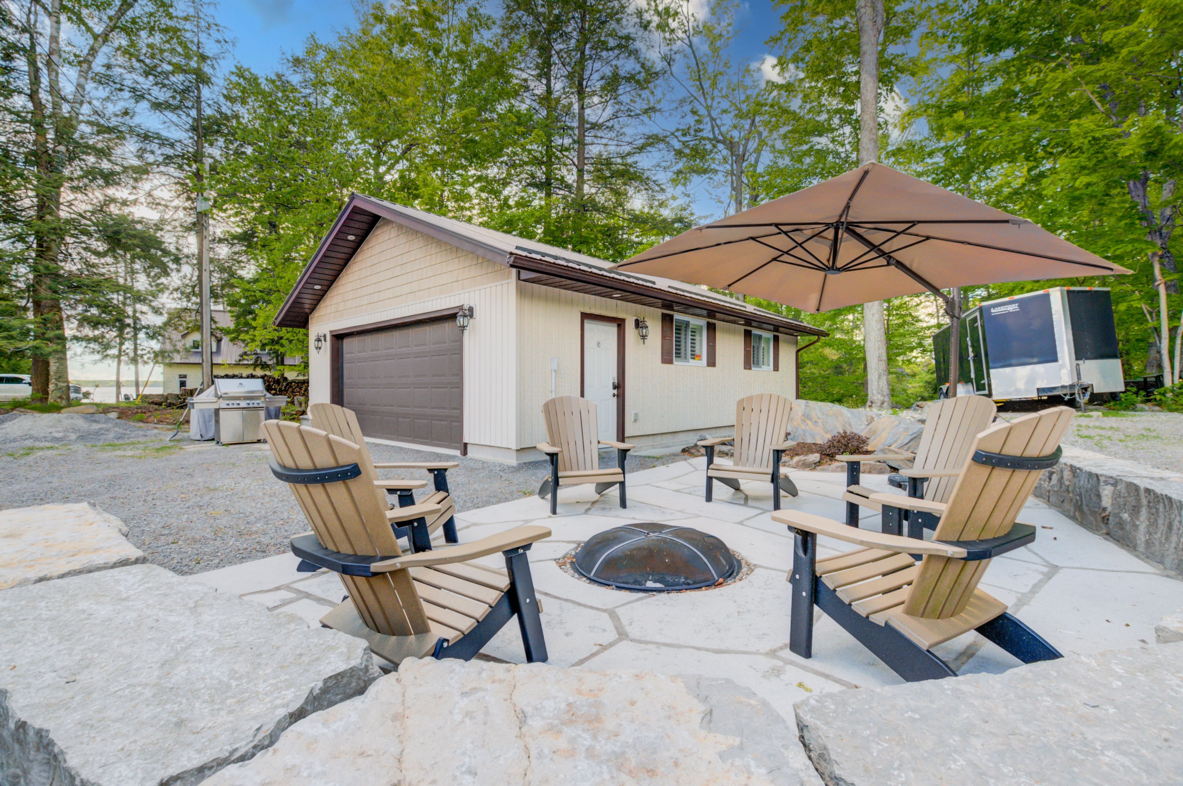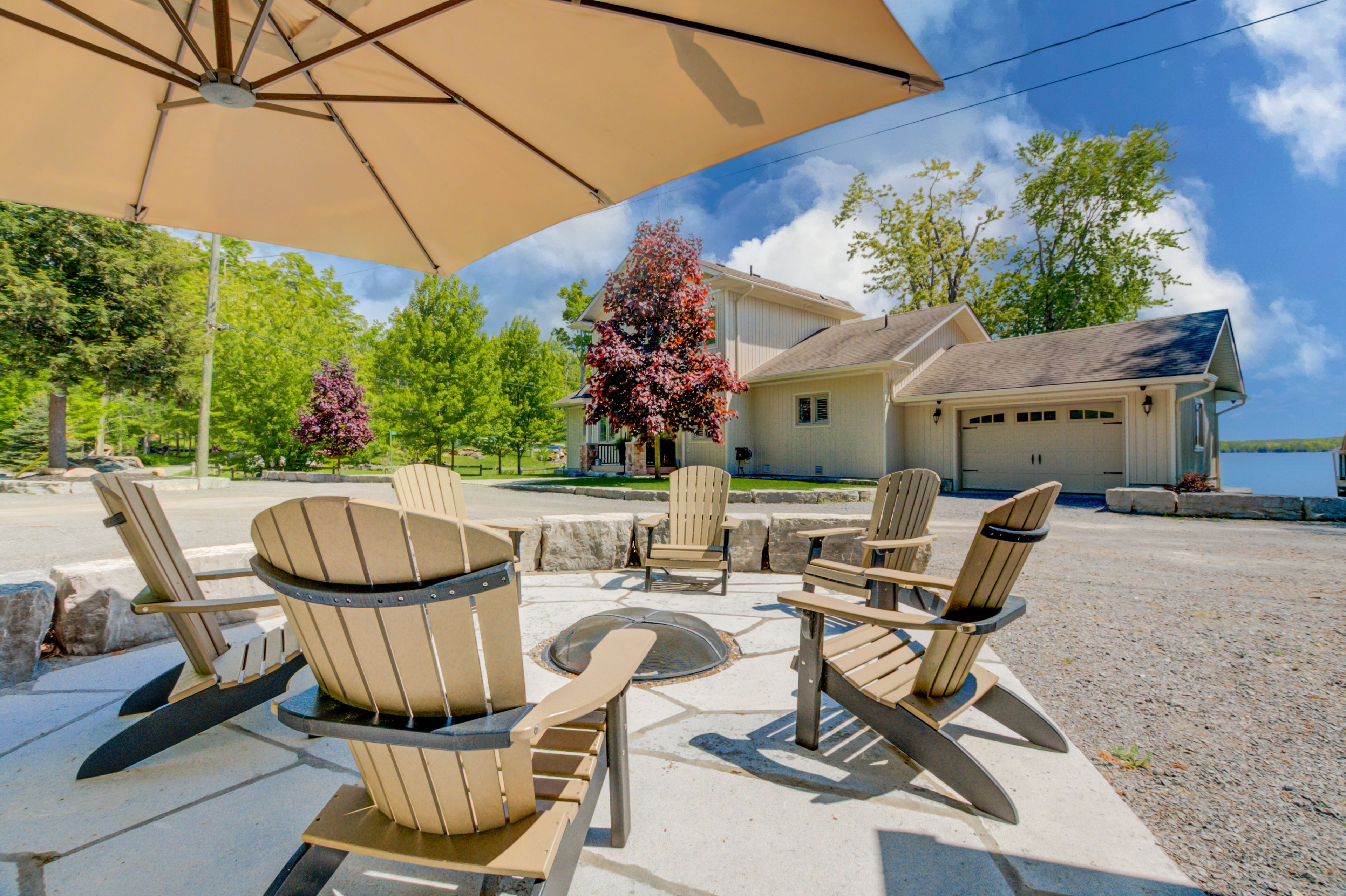 This impressive home must be seen to be fully appreciated. If you've been searching for a stunning, year-round waterfront oasis just 1. 5 hours from the gta, your search ends here. Set in a private, serene setting, near the end of a quiet road, where neighbours respect the natural beauty and peaceful enjoyment of the area, this thoughtfully designed 13-year-old home was built by a legacy family who have cherished the lake since the 1950s. The residence offers four bright bedrooms and three well-appointed bathrooms, along with a gourmet island kitchen featuring granite countertops-perfect for entertaining. The open-concept design showcases breathtaking lake views, complemented by gleaming hardwood and travertine floors that flow gracefully throughout the home. The family room impresses with a soaring 24-foot ceiling and a dramatic wall of windows, capturing the coveted southwestern exposure and filling the space with natural light. Enjoy dining indoors overlooking the water, or step outside to the expansive trex composite deck, complete with a sun-shade awning, integrated sound system, and low-voltage lighting-creating an ideal setting for effortless entertaining. The grounds are equally exceptional, featuring extensive armour stone, landscaping, and irrigation system, with a large fire pit finished with bear cut flagstone-perfect for gathering under the stars and creating lasting memories. Additional features include a custom rainbow children's play centre and an impressive 36 x 32 ft two-storey, three-car heated garage. Above the garage, a beautifully finished games room or guest suite with a gas fireplace provides flexible living space. A second 24 x 32 ft detached 1. 5-car garage is equipped with both propane and electric furnaces, along with 100-amp service, while the home also offers an attached single-car drive-through garage. Near the boat launch, a 24 x 12 ft dry boathouse-finished and heated-offers the perfect space for a studio or peaceful meditation retreat.