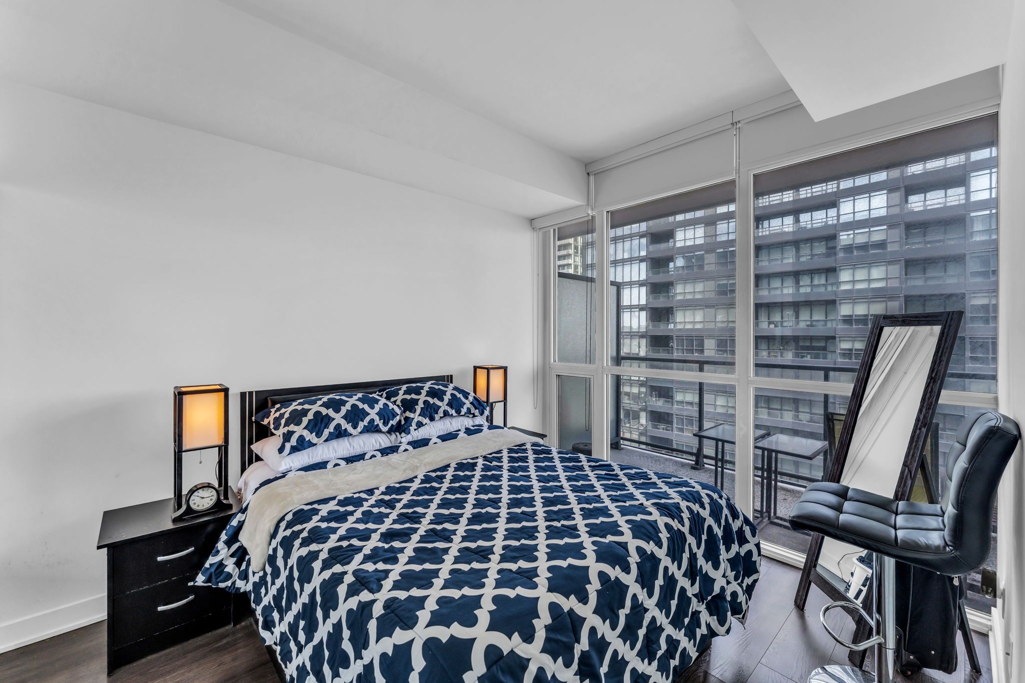 This 10th-floor, 1-bedroom-plus-den hits all the marks for downtown convenience. Transit couldn't be easier: bathurst, king, & queens quay streetcars are all just steps away. Everything you need is walkable: loblaws, shoppers, lcbo, farm boy, stackt market & more are all within blocks. Lake ontario is 3 blocks south. The building delivers on amenities: concierge, gym, saunas, yoga room, party room with kitchen, theatre room, games room with pool table and foosball, large rooftop terrace & bbq area, and secure visitor parking. Your neighbourhood: fort york library, aroma espresso bar, tim hortons, the bentway for year-round skating and events. Billy bishop airport is close by (ideal for frequent travelers), rogers centre 15 minutes, exhibition place 15 minutes, the well 15 minutes. Cn tower views right outside. The unit itself is immaculate and spacious, with a wall of windows that brings in ample natural light. Bathroom tile has been updated. Soft-close kitchen cabinetry, plus added storage cabinets in kitchen and bathroom, as well as kitchen island with seating, are included. The 105-square-foot balcony can seat many, and a storage locker is included. Den could be used as office, dining room, or 2nd bedroom. This is efficient downtown living: transit-connected, amenity-rich, walkable to work and play. No car needed, but if you have one, parking spaces for rent come available often. Move in and get on with your life.