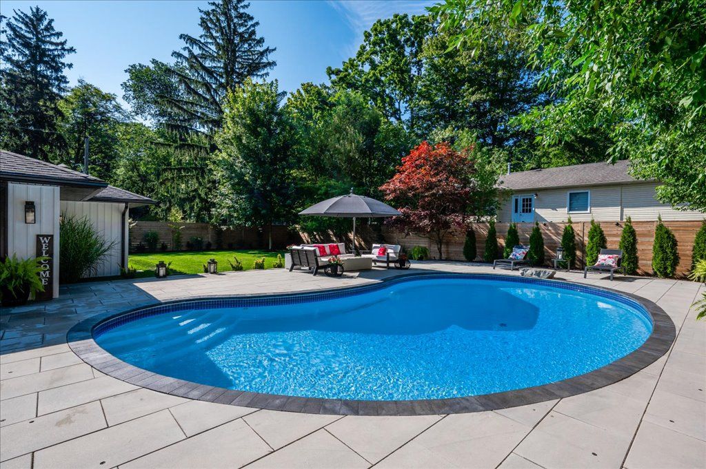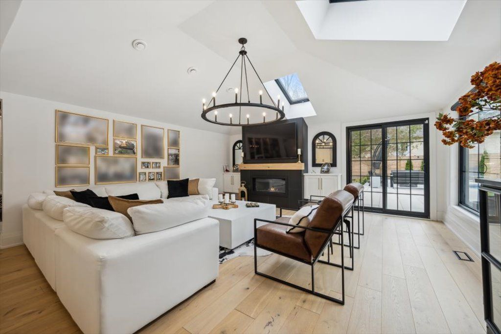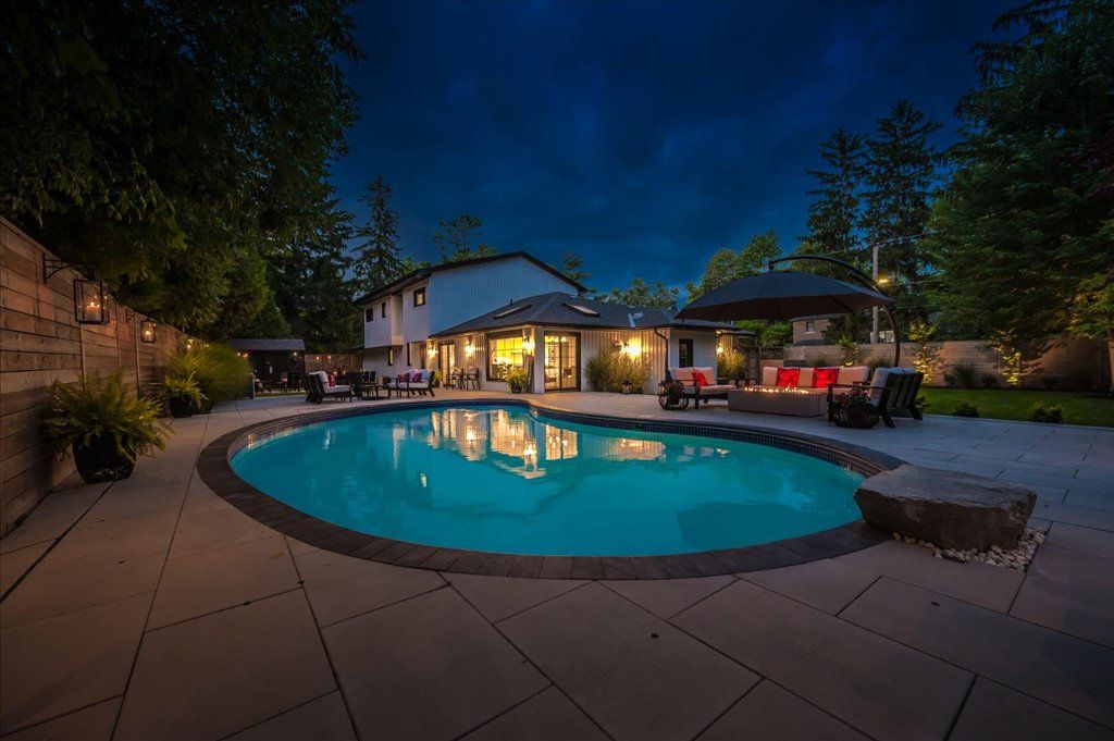 Absolutely gorgeous modern farmhouse masterpiece in the heart of mineola! This charming fully renovated 5 bed 4 bath home nestled on a prestigious 90 x 200 mature lot on a quiet street offers everything you desire. A charming front porch provides for great curb appeal. Enter through the front door into a spacious foyer with custom built in closets & ship lap feature wall. Enjoy entertaining in the expansive sun-filled main level featuring a main floor primary bedroom with a spa inspired ensuite. Wide plank engineered naked white oak flooring flows throughout, a breathtaking chef's kitchen with custom cabinetry, wolf 6 burner range, high end stainless steel appliances, quartz counter tops and backsplash, a large prep island and a second island dining table with barstool seating. The kitchen is open to a stunning family room with vaulted ceilings and vented skylights , gas fireplace with floor to ceiling porcelain surround and custom built-ins. Walkout from both kitchen and family room to unwind in a spectacular private, professionally landscaped resort style backyard oasis featuring a concrete salt water pool, large paver patio, fire pit area and lush perennial gardens. Take the solid oak, open riser staircase to the second floor where hardwood flooring continues through 4spacious bedrooms. Bedrooms 2 & 3 feature vaulted ceilings and feature walls. A gorgeous 4piece bath with a custom glass shower completes the second level. The fully finished lower level is designed for comfort and functionality offering a comfy rec room with ship lap feature wall and built-in electric fireplace, wide plank premium vinyl flooring, 3 piece bath, laundry room with custom cabinetry, & a sauna. This extraordinary home blends thoughtful design with top-tier finishes, all in one of mississauga's most sought-after neighbourhoods. This is more than just a house, it's a meticulously maintained retreat, pride of ownership is obvious. Don't miss the opportunity to make it yours!
