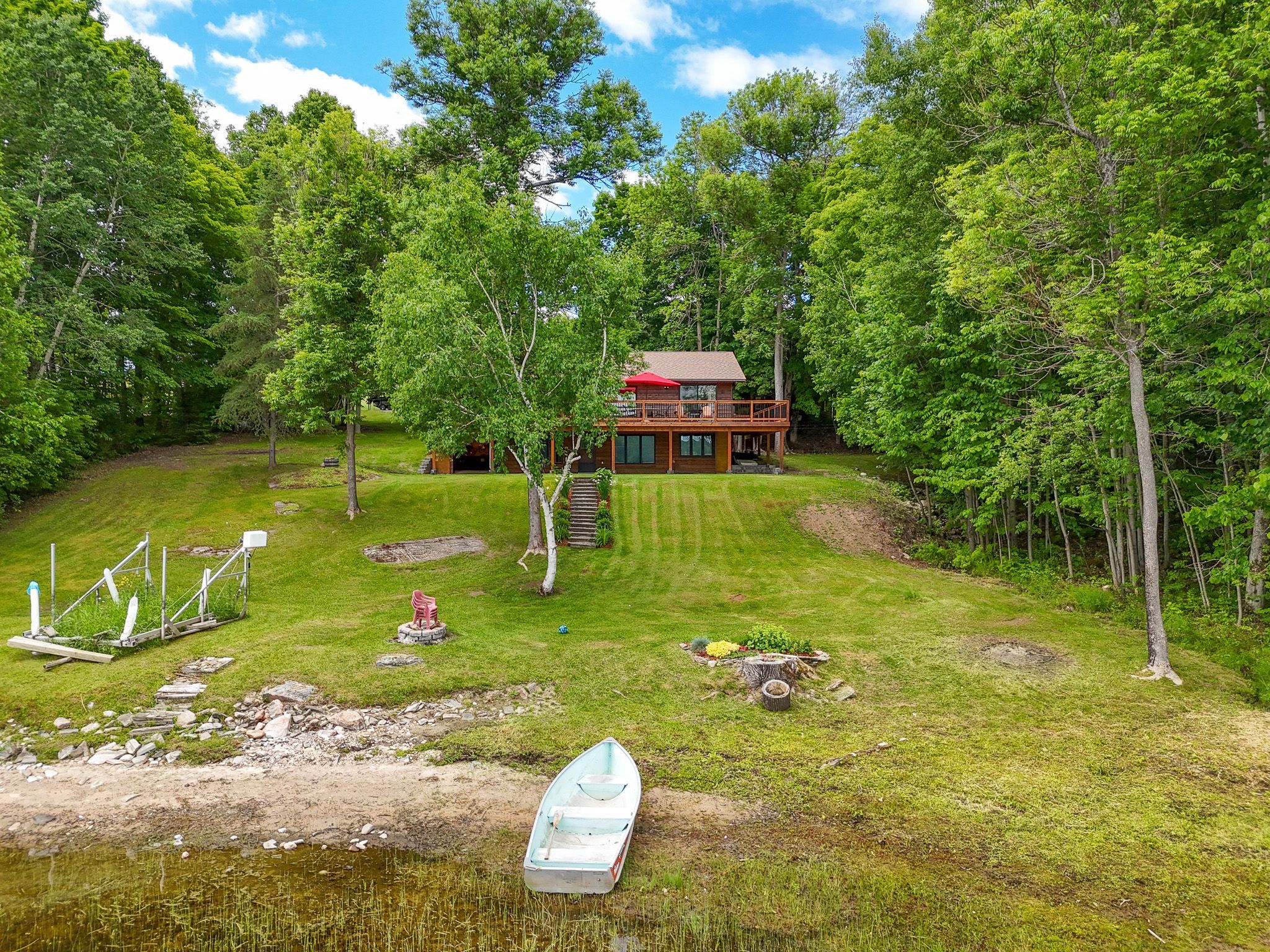 Subtype DetachedIndoor Features Central Vacuum, In-Law CapabilityOutdoor Features Deck, FishingAmenities Lake/Pond, Lake AccessOwnership FreeholdViews Lake, Trees/WoodsWaterfront DirectAppliances Multiple EntrancesBasement Finished with Walk-OutFoundation Concrete BlockHeating / Cooling Forced AirHeating Fuel PropaneSewer Septic