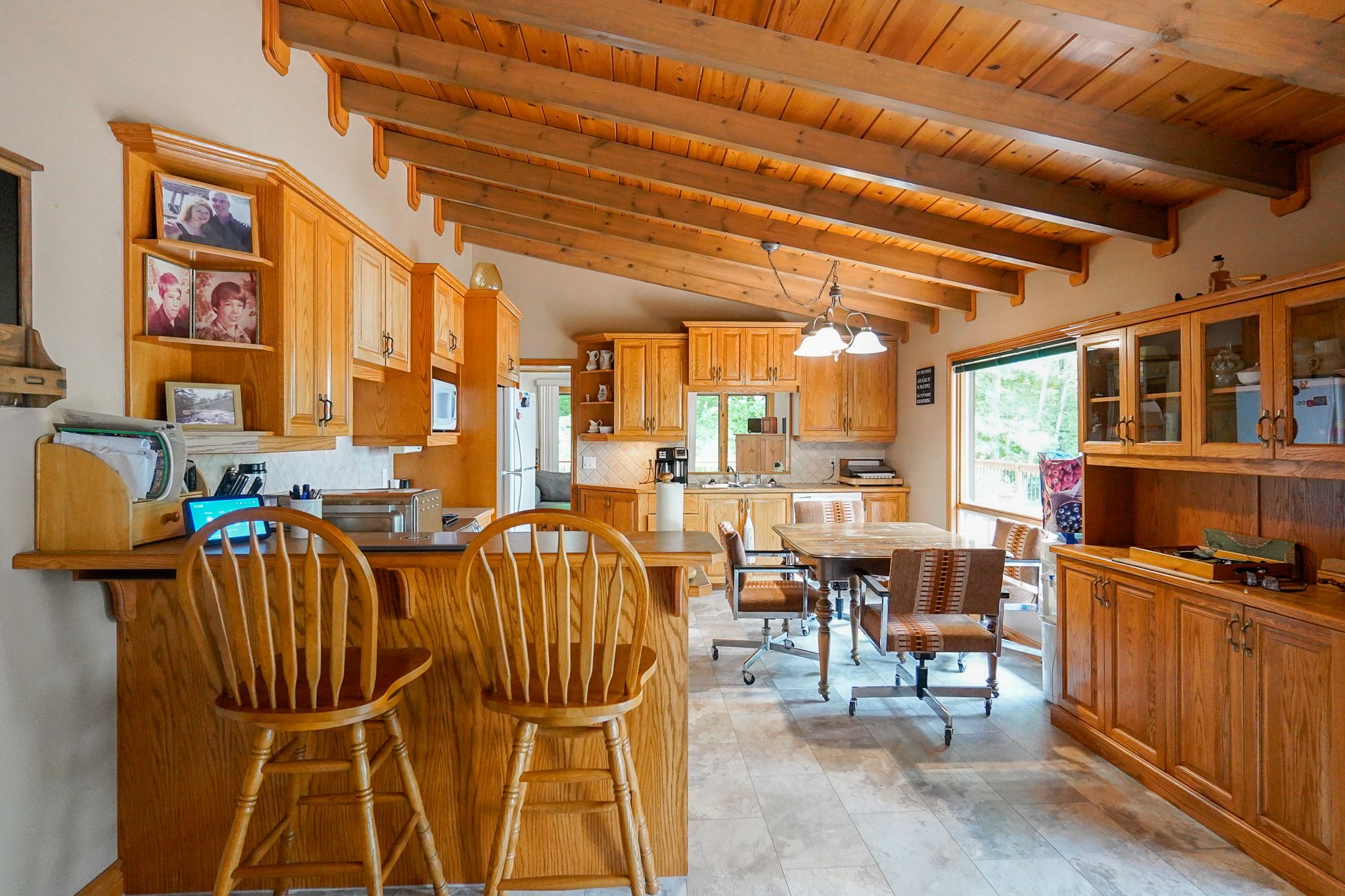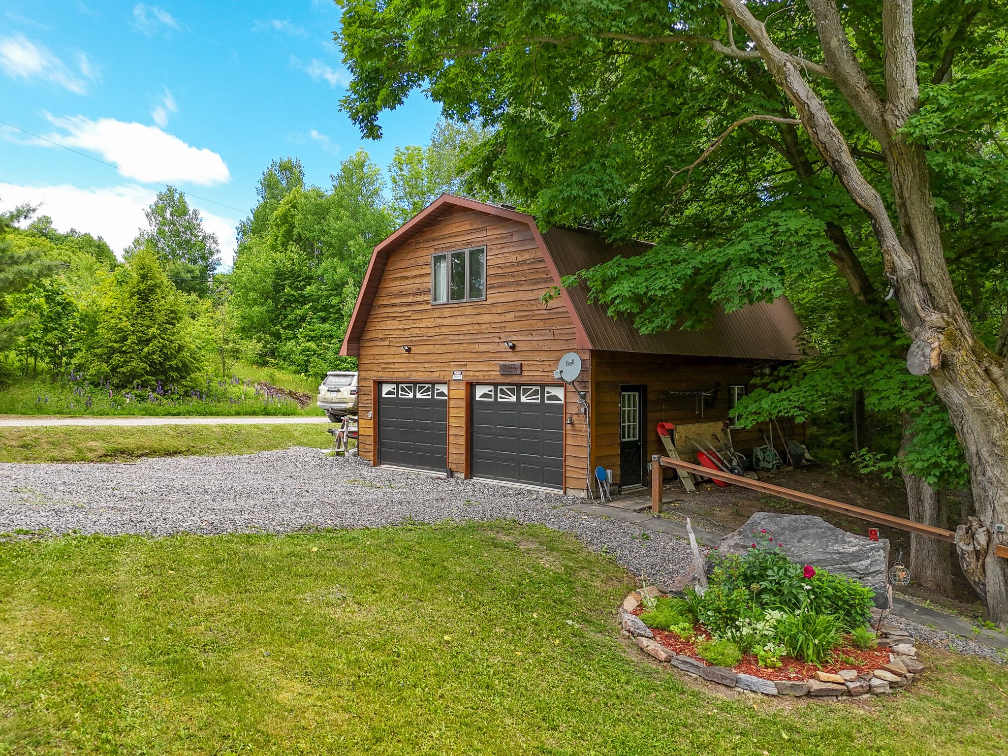 Welcome to this beautifully maintained year-round waterfront home on restoule lake, cherished by the same family for decades. Situated on over an acre of landscaped grounds, the property features mature trees, stunning rock outcroppings, a manicured lawn, and a gentle slope to approximately 200 ft of shoreline on the highly sought-after 14 km long restoule lake. Offering approximately 2,300 sq ft of finished living space, this home includes 4 bedrooms and 2 bathrooms. The main floor features a bright open-concept layout designed to capture lake views, with an eat-in kitchen, dining room (or office) with walkout, and a living room with walkout to the full-length elevated deck-perfect for entertaining or relaxing while enjoying the waterfront scenery. A woodstove adds warmth and charm for cozy winter evenings. Two bedrooms (one with walk-in closet), a 3-piece bath, and ample storage complete the main level. The finished walkout lower level offers a spacious family room, laundry area, office nook, two additional bedrooms, and a second 3-piece bathroom. A workshop/utility room with overhead door provides easy access for storage and recreational equipment. Additional features include a detached 32'3" x 24'3" insulated and heated garage/shop with 60-amp panel and a finished loft above with new flooring, ideal for guests or studio space. The home is serviced by 200-amp electrical, forced-air propane furnace (new 2026), central air, central vacuum, septic system, and lake water with uv system. Updated flooring and eavestroughs with gutter guards. High-speed internet and bell satellite available. Restoule lake offers excellent swimming, boating, and fishing including pike, bass, pickerel, lake trout, and world-class muskie. Close to atv and ofsc trails, restoule provincial park, and acres of crown land. Located on a quiet private road ($200/year maintenance) with friendly neighbours. Quick closing available. Excellent short-term rental opportunity.