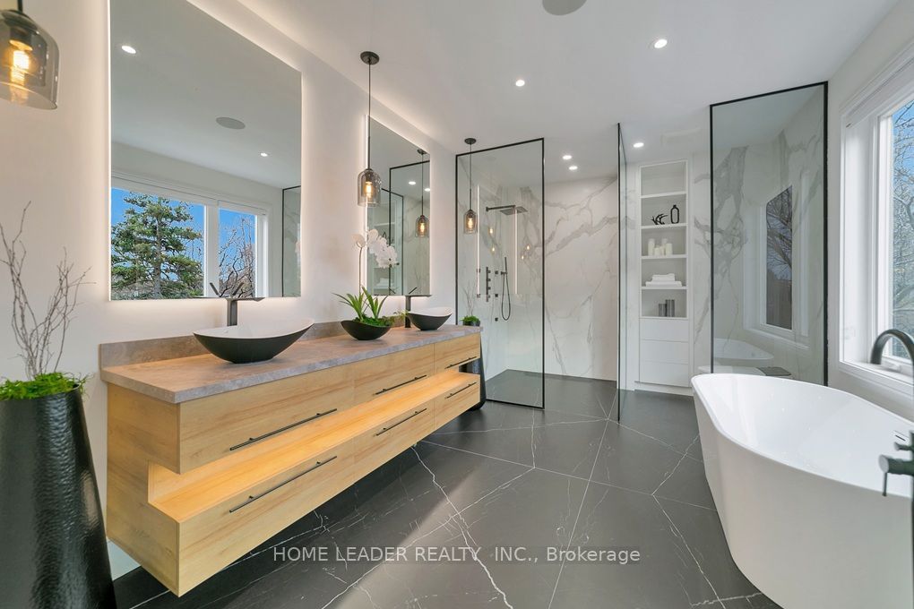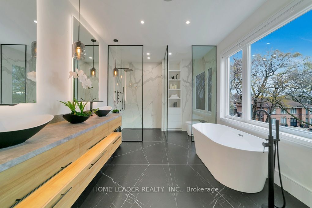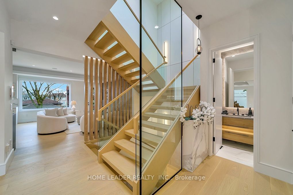 4800 sqf living space (3650 sqf above grade) this california style custom home in heart of remarkable & most accessible yonge & sheppard. A seamless blend of modern design and timeless elegance! This stunning residence is just steps from the subway station and hwy 401. Experience unparalleled comfort and luxury, beginning with a cozy heated driveway, steps, and porch, leading to a warm, heated grand foyers perfect introduction to the thoughtfully designed interiors. The beautifully appointed great room features elegant paneled walls, a cozy gas fireplace, and expansive picture windows, offering seamless indoor-outdoor living. At the heart of the home lies an exquisite chefs kitchen, outfitted with high-end miele appliances, a striking porcelain-wrapped center island, and custom, premium cabinetry ideal for both entertaining and everyday living. The main floor boasts a soaring 13 office, complete with heated floors and a smart privacy divider, creating an inspiring and private workspace. Upstairs, the luxurious primary suite awaits, featuring a fireplace, an oversized walk-in closet, and a spa-like 6-piece ensuite with a heated curb-less shower and modern standalone tub. Three additional bedrooms, each with its own ensuite, ensure ultimate comfort and privacy for family and guests. The bright, fully-finished basement showcases heated floors throughout, a spacious recreation room, a wet bar, and a walkout to a patio with hot tub rough-in perfect for entertaining or relaxing. A pet wash station adds convenience for families with pets, and the oversized backyard deck is an ideal space for summer gatherings. Every detail has been meticulously curated, with features including a full automation system, extensive custom paneling, and smart toilets. This home offers a flawless combination of luxury, practicality, and location, making it a true masterpiece in the heart of north york!