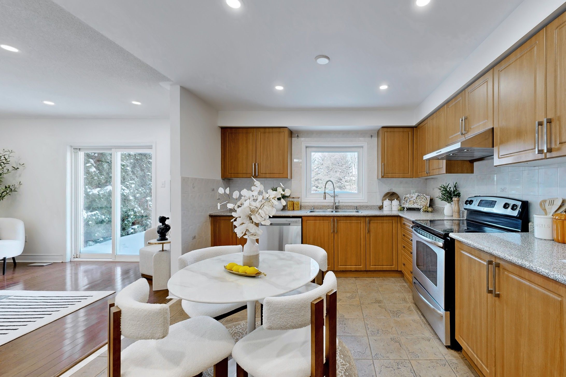 • Family-sized kitchen with a brand new range hood for cooking convenience.