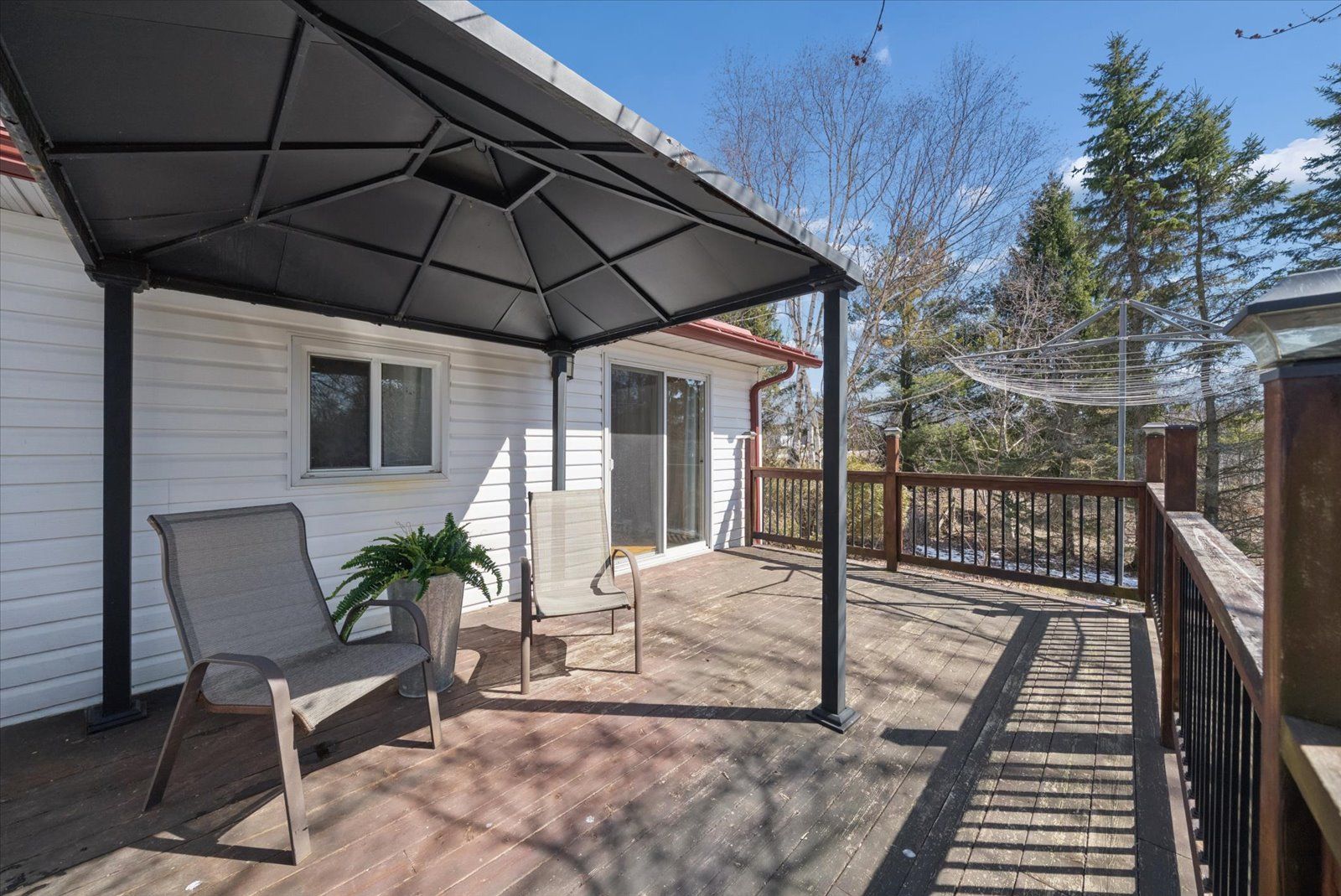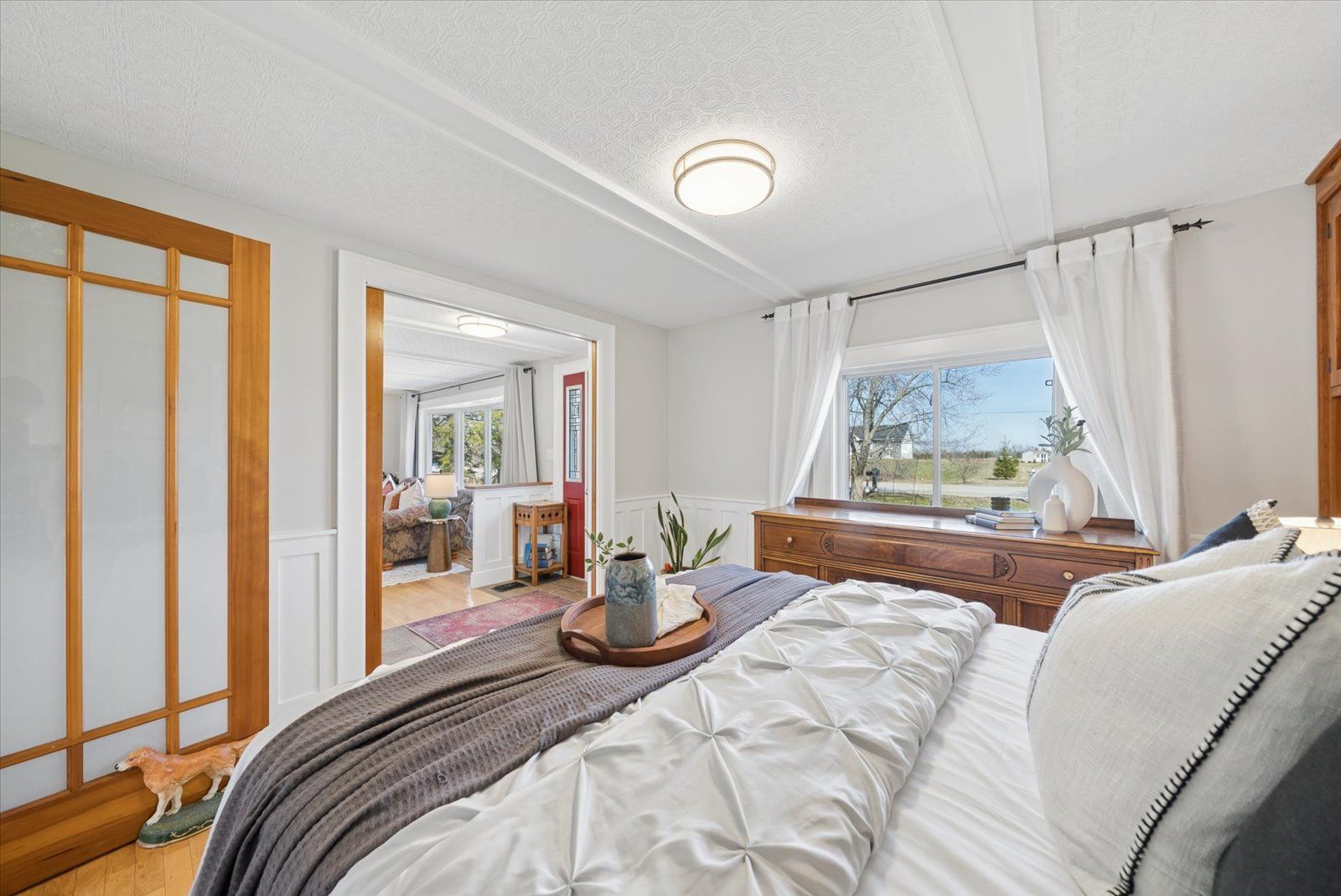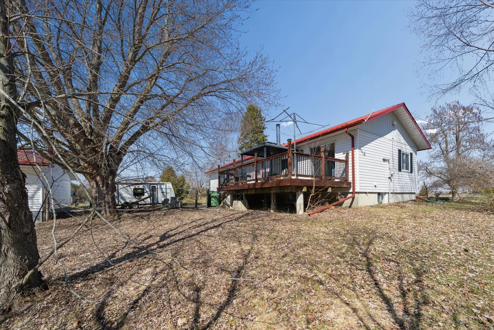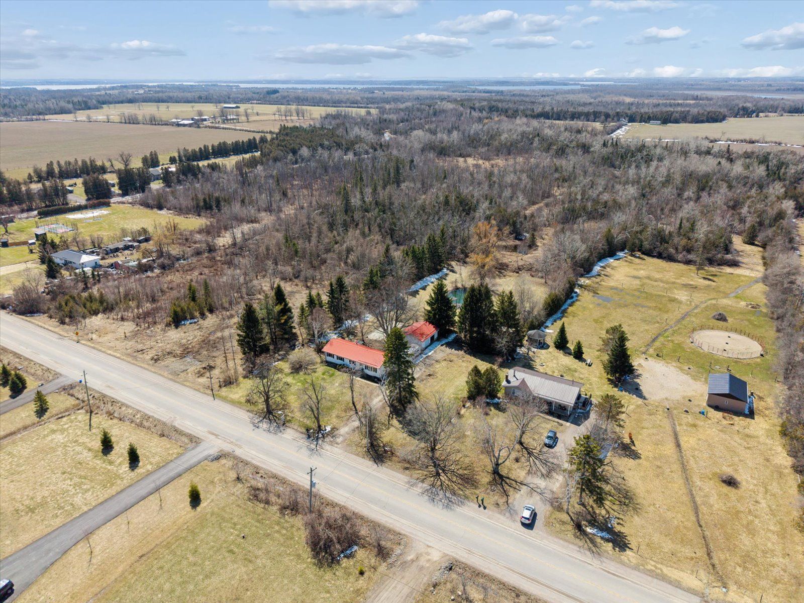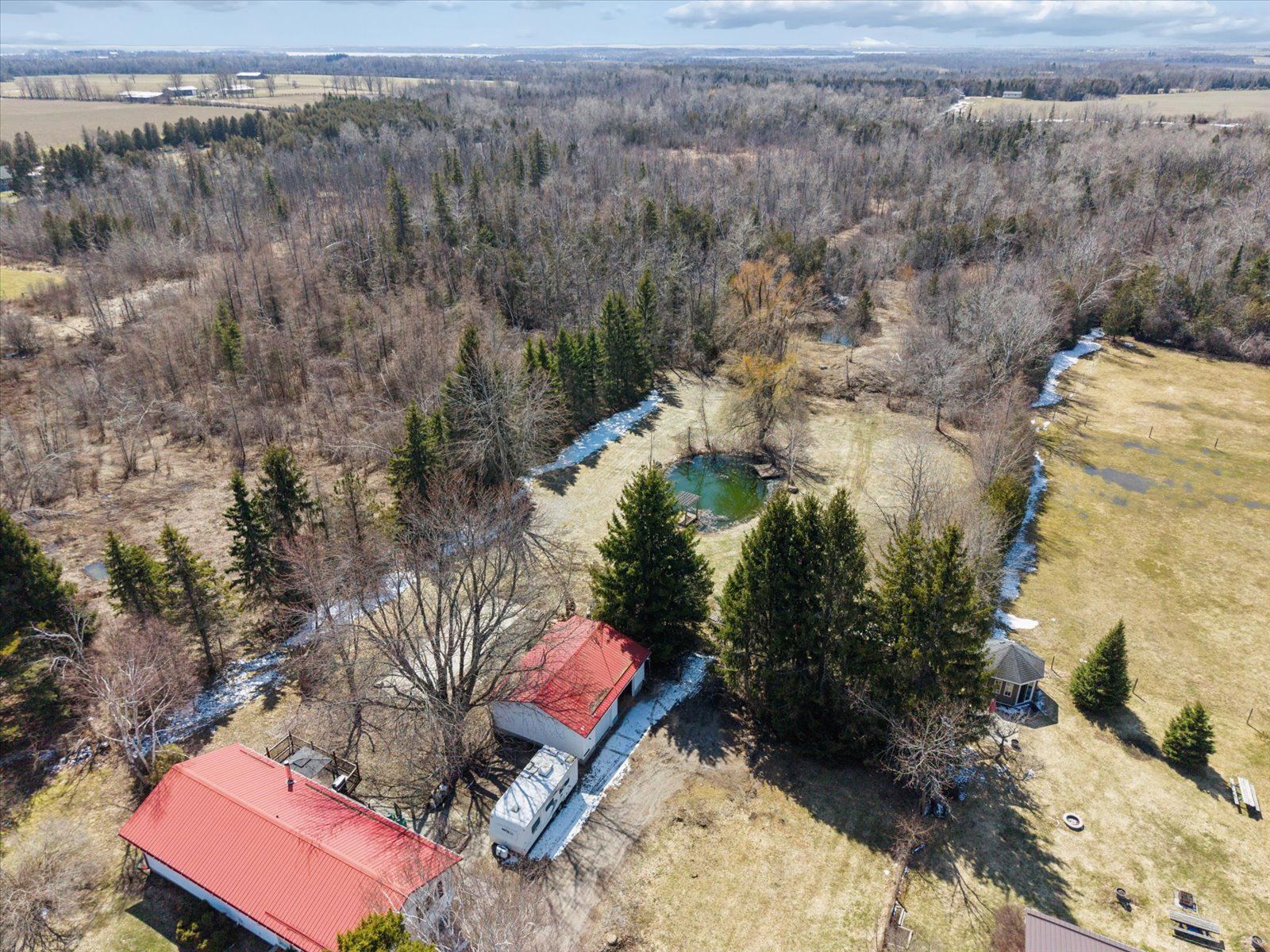 169 valentia rd offers a private 4-acre country setting with two ponds and plenty of usable outdoor space to enjoy. This lovely bungalow features a bright, spacious, open concept main floor filled with large windows offering plenty of natural light. The custom kitchen is both stylish and functional featuring custom cabinetry & beautiful soapstone countertops and connects to the living and dining areas, ideal for everyday living and casual entertaining. The main level has 2 bedrooms, including a huge primary retreat with an updated 4-piece ensuite, tons of closet space, gorgeous pine floors, oversized windows surrounding the room and a walk-out to the large back deck to enjoy a morning coffee. Thoughtful craftsmanship is on display, with custom doors adding a refined touch throughout this home. The walk-up basement extends the living space with a large rec room, second kitchen and 3pc bath providing flexibility for extended family or in-law potential. An oversized detached garage/workshop is perfect for hobbyists, car enthusiasts, or extra storage. A fantastic opportunity for buyers looking for space, privacy, and thoughtful upgrades in a relaxed country setting. Septic tank pumped aug 2025, propane furnace 2023.