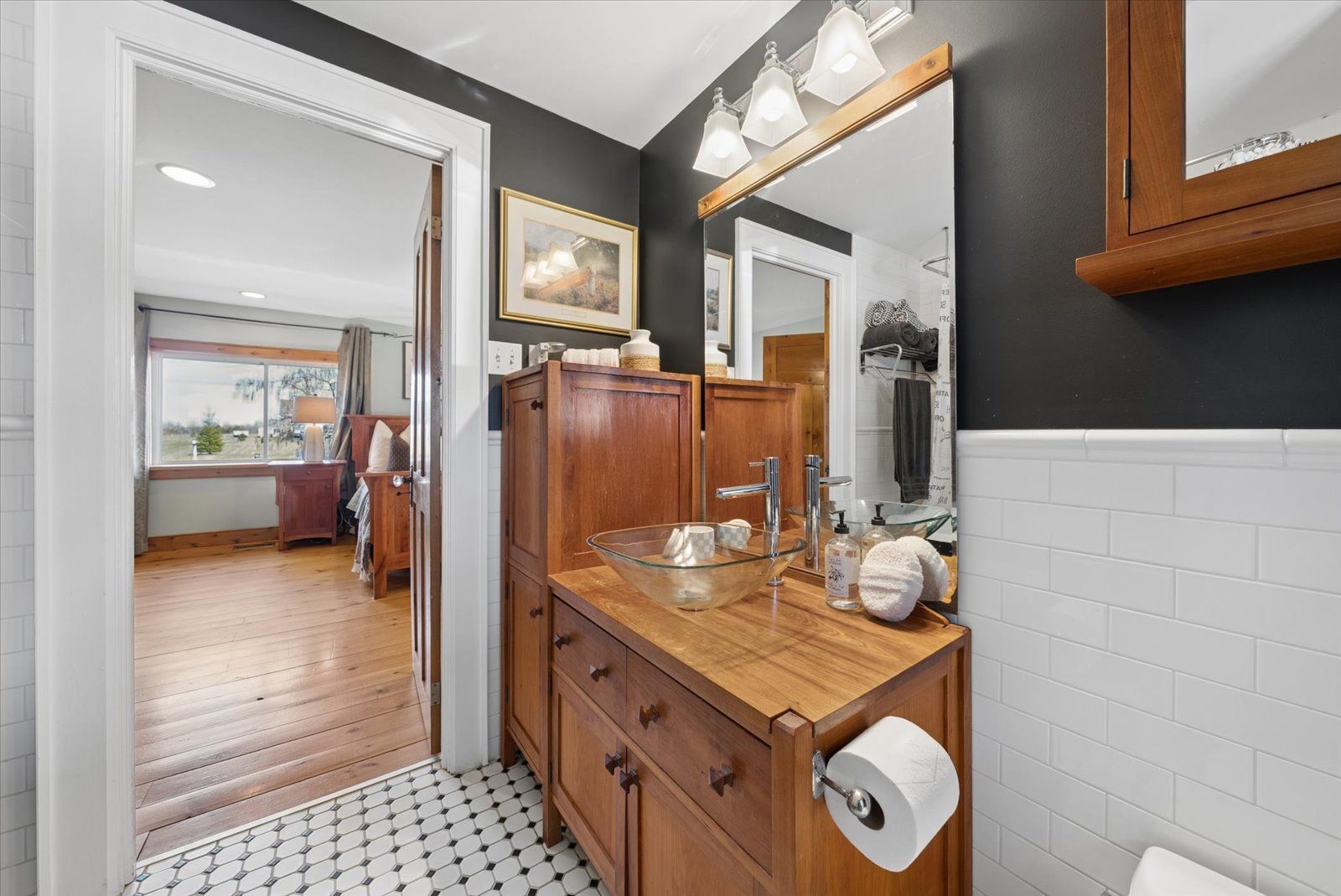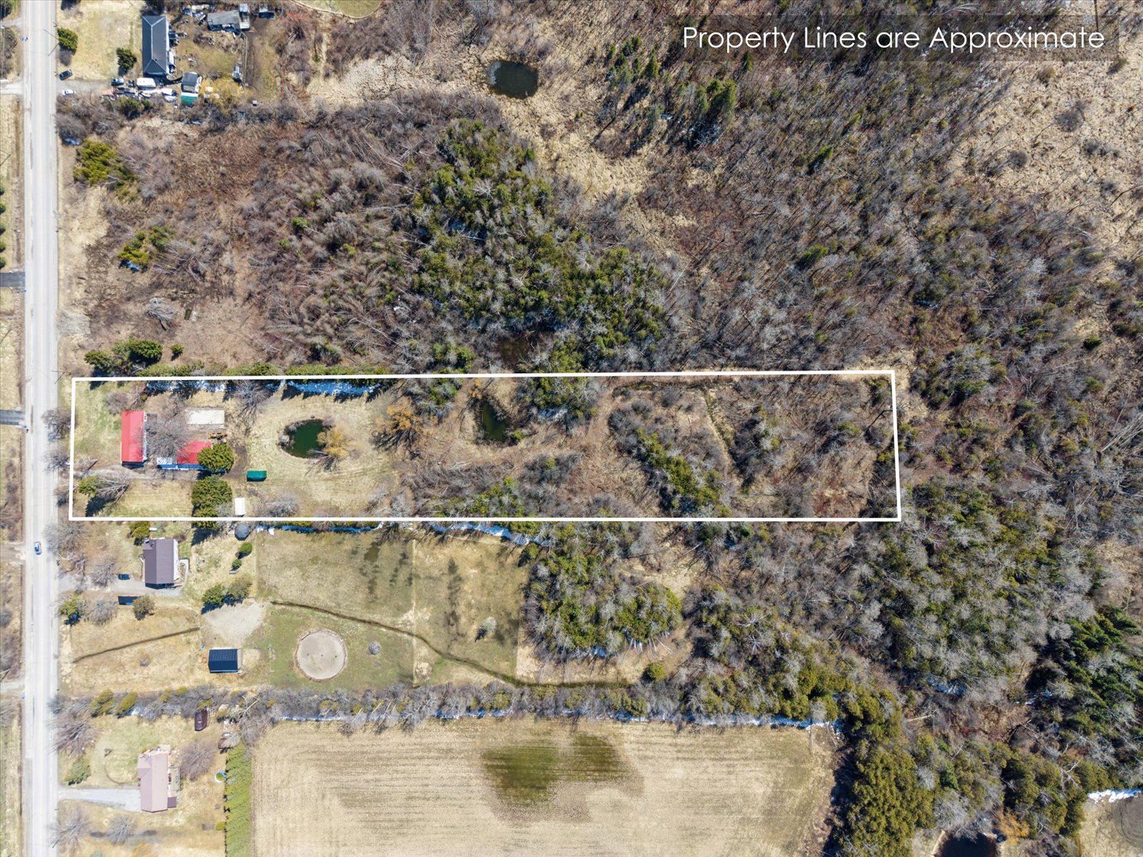 • Private 4-acre country setting with two ponds and outdoor space.