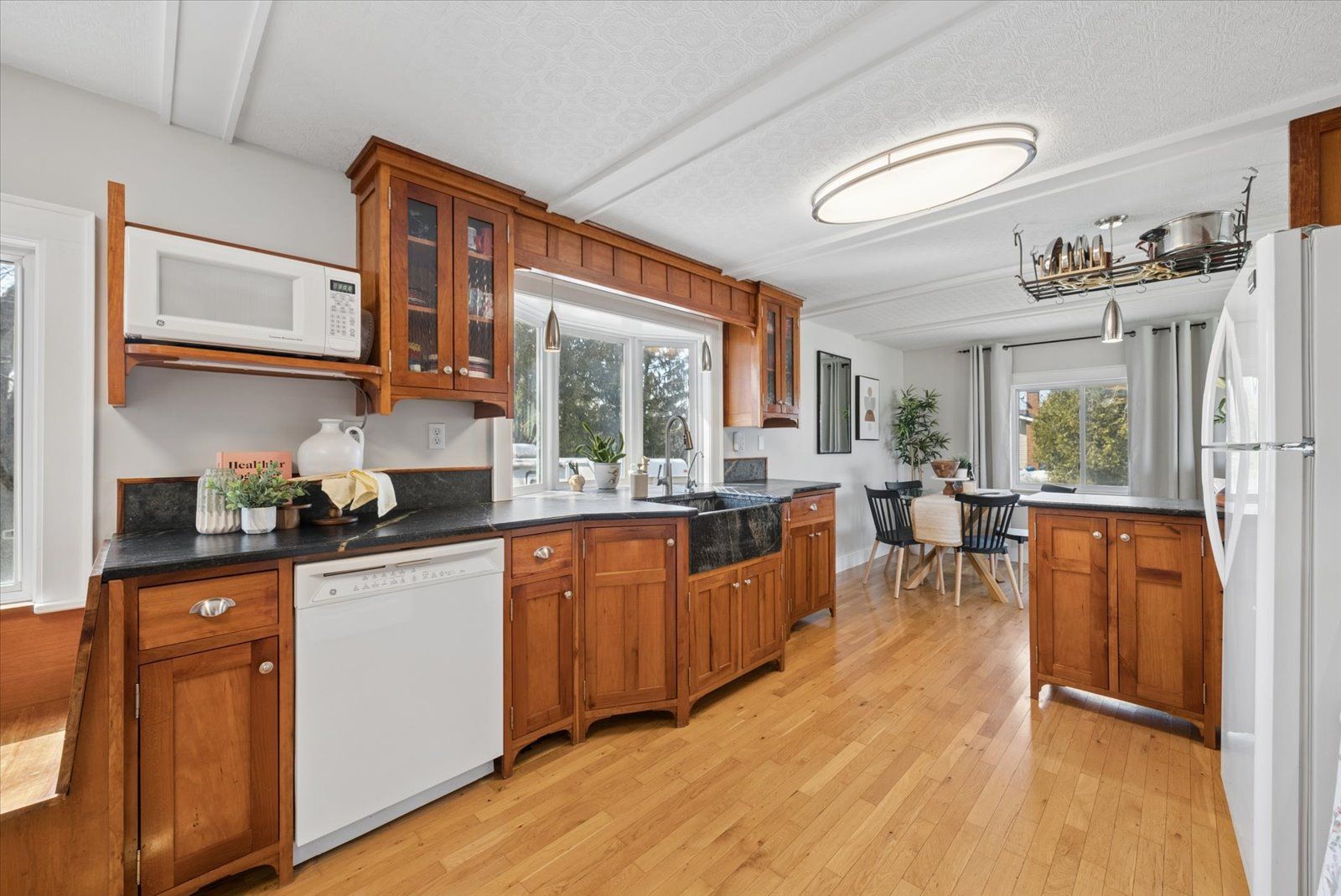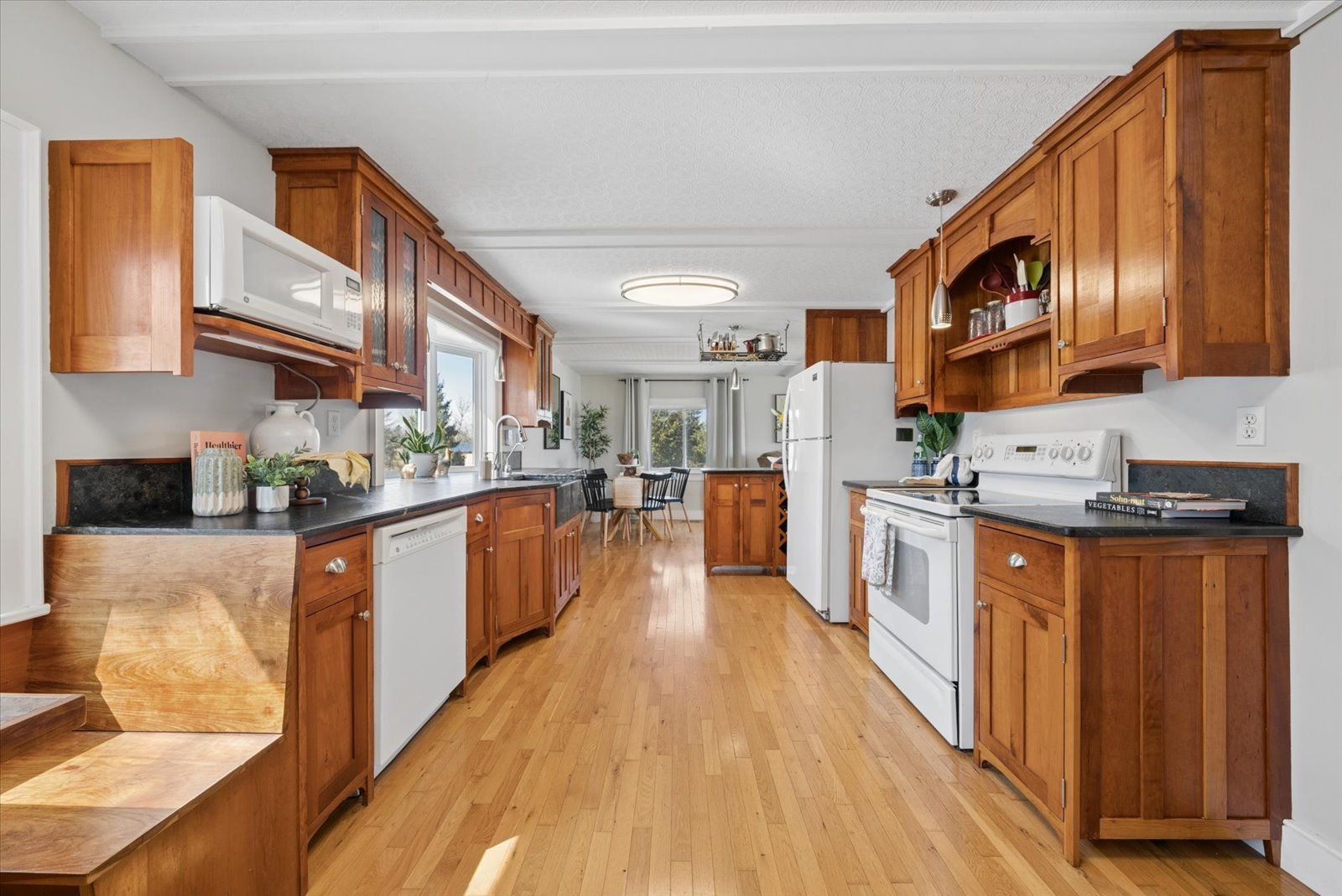 • Stylish custom kitchen with beautiful soapstone countertops and cabinetry.