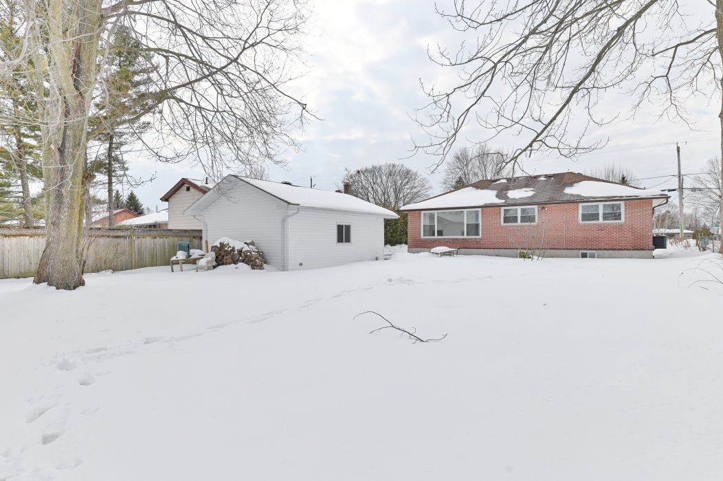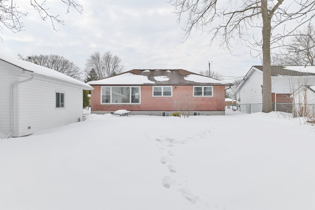 This solid all brick 4 bedroom, 2 bathroom home is an excellent opportunity for first-time home buyers or investors alike. Situated in a fantastic, family friendly neighbourhood, it's just a short walk to both the public school and high school. The main level has been beautifully updated and features refinished hardwood floors, new interior doors, fresh paint, and new trim throughout. Major mechanical updates included in a new furnace (2025), central air conditioning (2019), and a detached 18' x 24' garage built in (2020). The fully finished basement offers a complete in-law suite with a separate entrance ideal for extended family or rental potential. This space includes a well appointed kitchen with pantry, spacious living and dining areas, a large bedroom, a 3pc bathroom with its own laundry, and ample storage. Outside, you'll find a fences backyard perfect for children and pets. This property also backs directly onto mary ann sills park, providing added privacy and beautiful green space right at your doorstep.