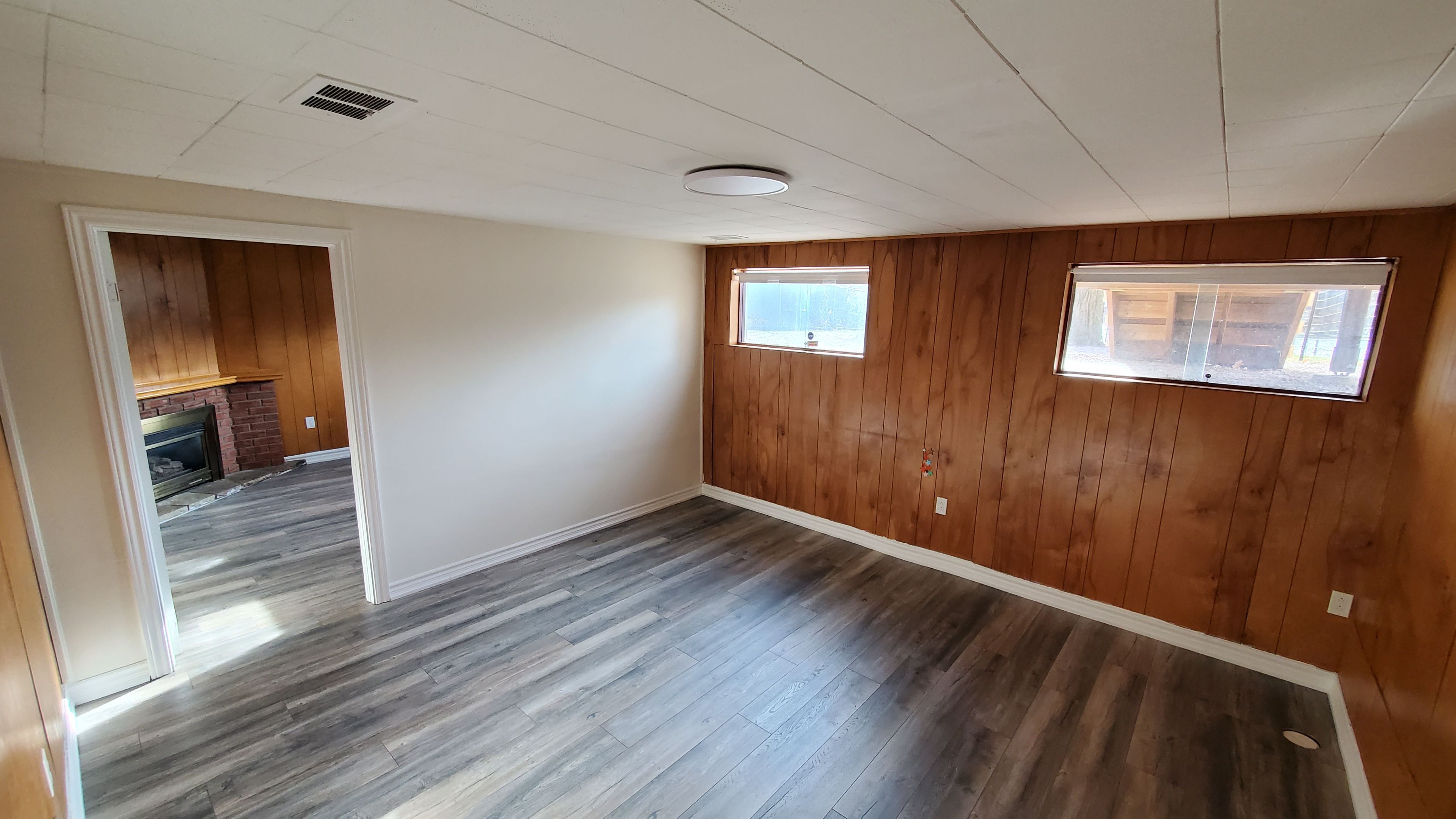Clean, spacious and full of natural light, newly renovated 800 sq. Ft. 2-bedroom ground-floor unit with two private entrances - one directly from the driveway and another from the backyard's patio. The property backs onto the stafford municipal park and sits on a large lot with mature trees. The ground level includes the dining area, kitchen, private laundry, bathroom, and a hallway with a built-in closet. The primary bedroom offers a gas fireplace. Bedrooms and the family room have laminate flooring, all other areas are finished with porcelain tiles. The fully renovated bathroom includes porcelain tile, a glass shower, vanity and toilet. 2025 upgrades include a new furnace and central air conditioner. The property located in a quiet, established neighborhood close to top ranked schools, york university, shopping, transit, finch subway station, hospitals, community centers, pools, and sports facilities. *tenants are responsible for 40% of utilities as well as lawn care, leaf cleanup, and snow removal.