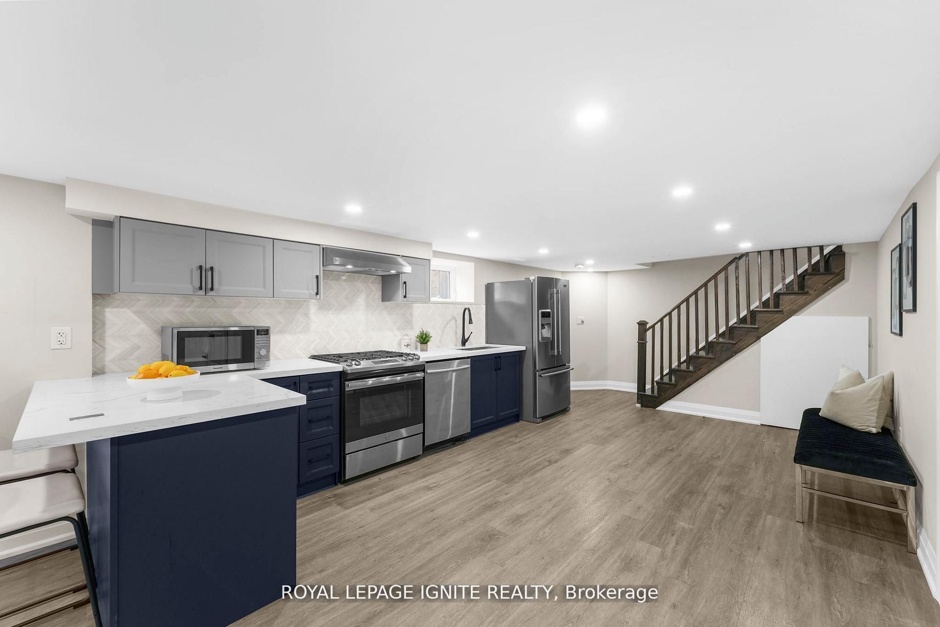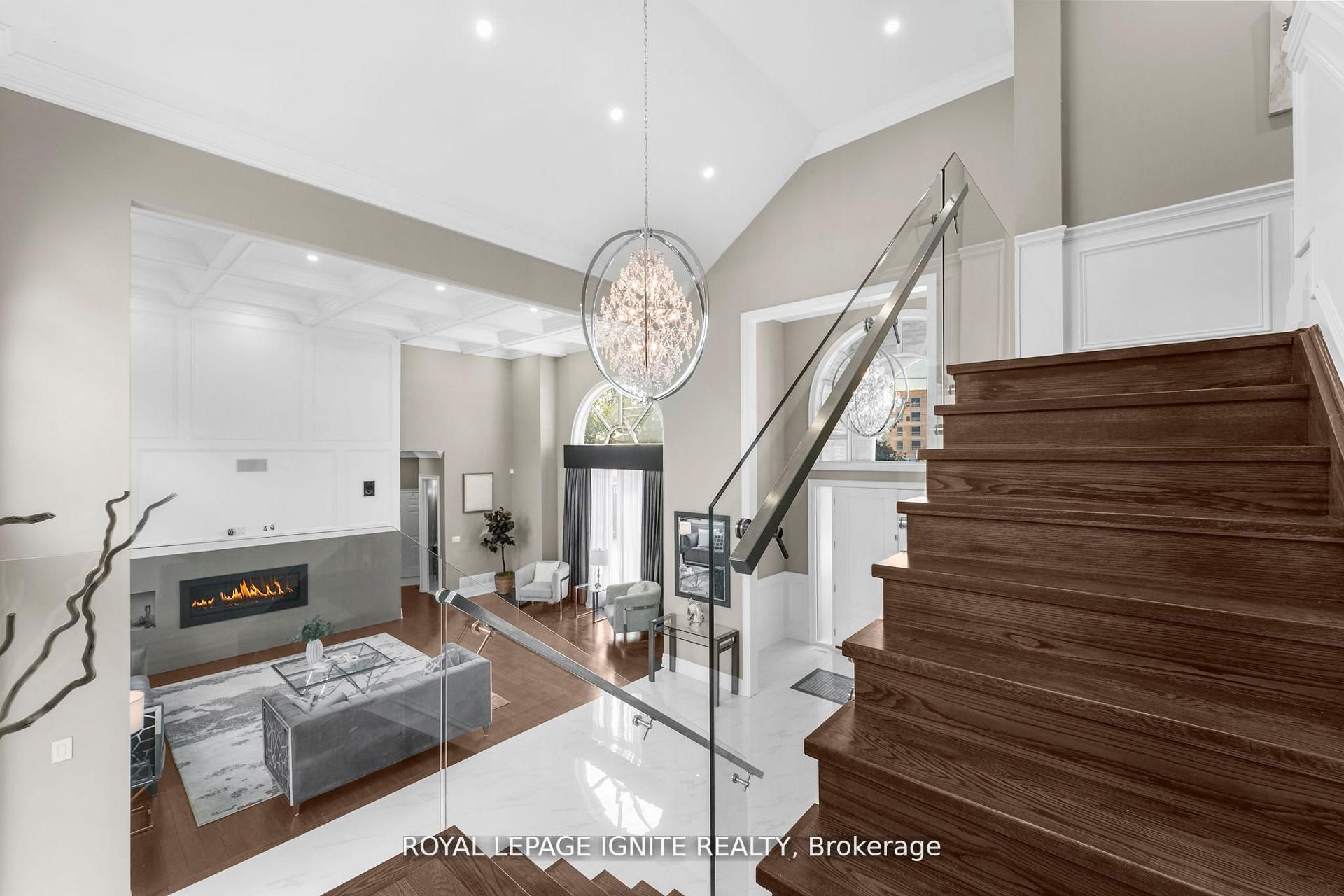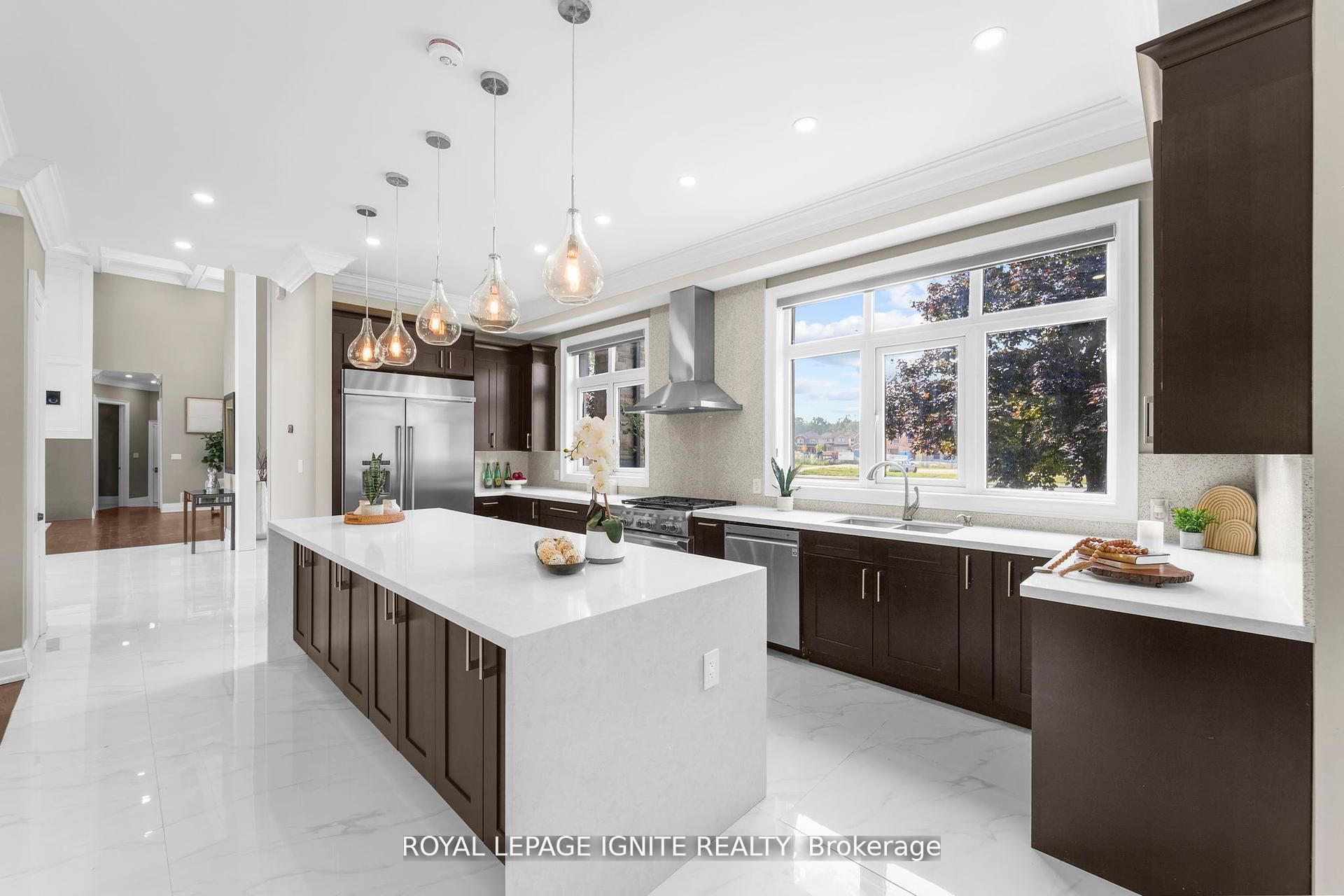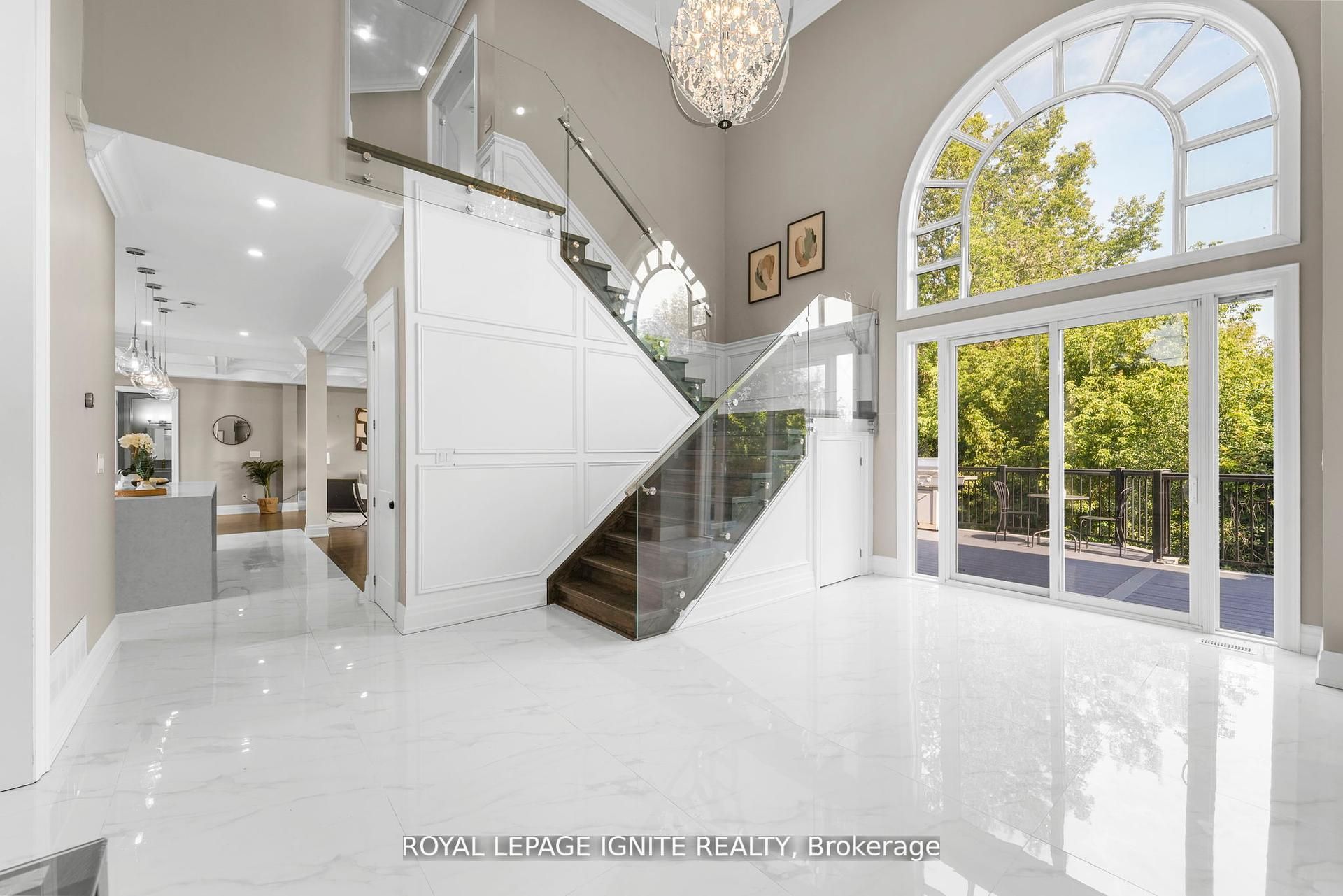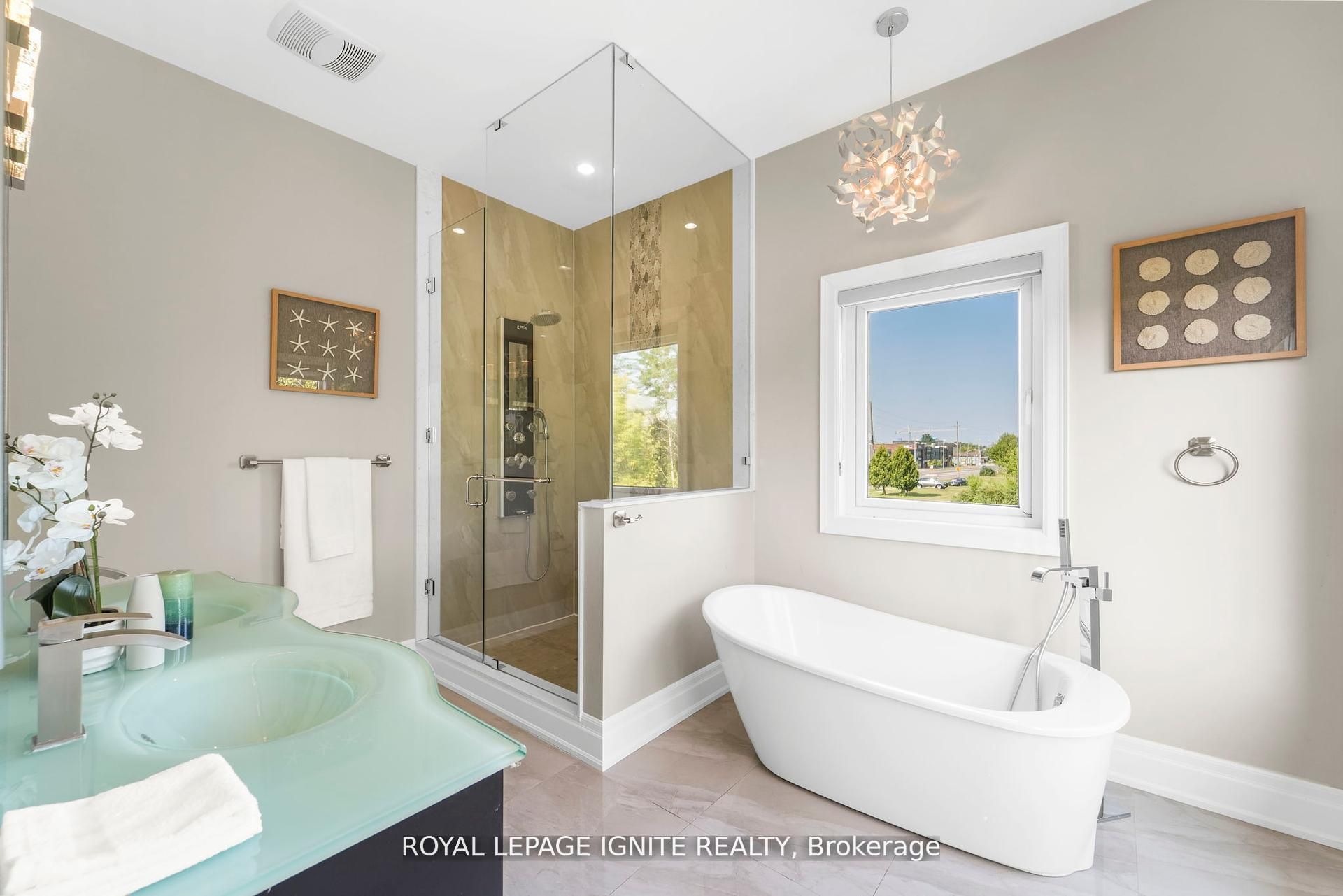 Welcome to this stunning custom-built estate home, just over five years new! Over 5000 sq ft of living space. This luxurious 5 +1 bedroom, 6 bathroom residence offers exceptional design, premium finishes, and a peaceful setting with ravine views. Commercial zoning as well in courtice secondary plan. Step into the grand foyer with soaring 22-foot ceilings, setting the stage for the open, light-filled interior. The living room features dramatic 18-foot ceilings and a striking gas fireplace, creating a warm and elegant space to relax or entertain. A wide staircase with sleek glass railings adds to the modern aesthetic. The chef's kitchen is a showstopper, complete with a 10-foot waterfall island, gas stove, and high-end stainless steel kitchenaid appliances ideal for gourmet cooking and hosting. Upstairs, three spacious bedrooms each feature their own ensuite bathroom, offering comfort and privacy for all. The primary suite includes a large walk-in closet, a luxurious 5-piece ensuite, and breathtaking views of nature. A versatile fourth & fifth bedrooms are conveniently located on the main floor. Newly renovated basement with separate entrance. Massive living/dining space. New stainless steel appliances. Huge bedroom with a walk-in closet and window. Step outside to enjoy a private deck and a massive backyard overlooking a tranquil creek perfect for relaxing or entertaining in a natural setting. View of the meandering creek and mature trees from the private backyard. Located close to all amenities, including shopping, dining, schools, and places of worship. Commuters will love the easy access to highways 401, 418, and 407, with go transit and durham region transit right at your doorstep. Millennium trail access. Walk to the courtice rec centre with a pool and library. Don't miss this rare opportunity to live in a truly one-of-a-kind property that blends luxury living with everyday convenience!
