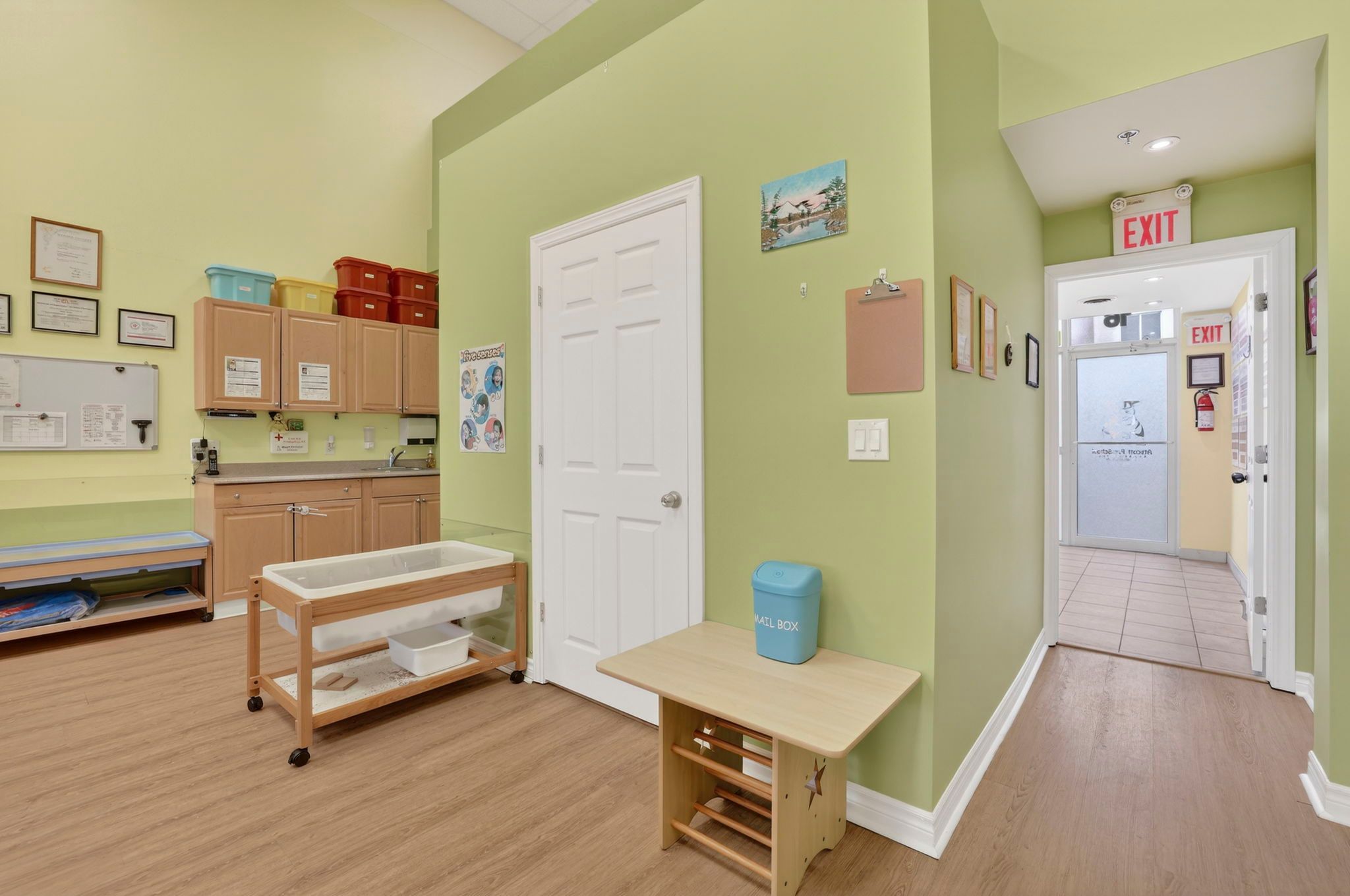 Rare em-71 zoning permits a wide range of uses, including professional, retail, and medical. Absolutely gorgeous, original owner unit currently operating as an upscale private preschool, offering a functional and well-designed layout. An excellent turn key opportunity for a preschool business. The main floor features a spacious open-concept area with high ceilings, a washroom, and a front section used for cubbies, enhanced with numerous pot lights and frosted front and rear windows for added privacy. A mezzanine level overlooks the main floor and includes office space, storage, a second washroom, and an additional sink. The sale includes all existing preschool chattels, making this a true turnkey business opportunity. Located in a well-maintained commercial plaza with a strong mix of professional tenants and ample surface parking. Potential for pylon signage, offering excellent visibility and maximum street exposure for your business. Conveniently situated near a variety of children's amenities.