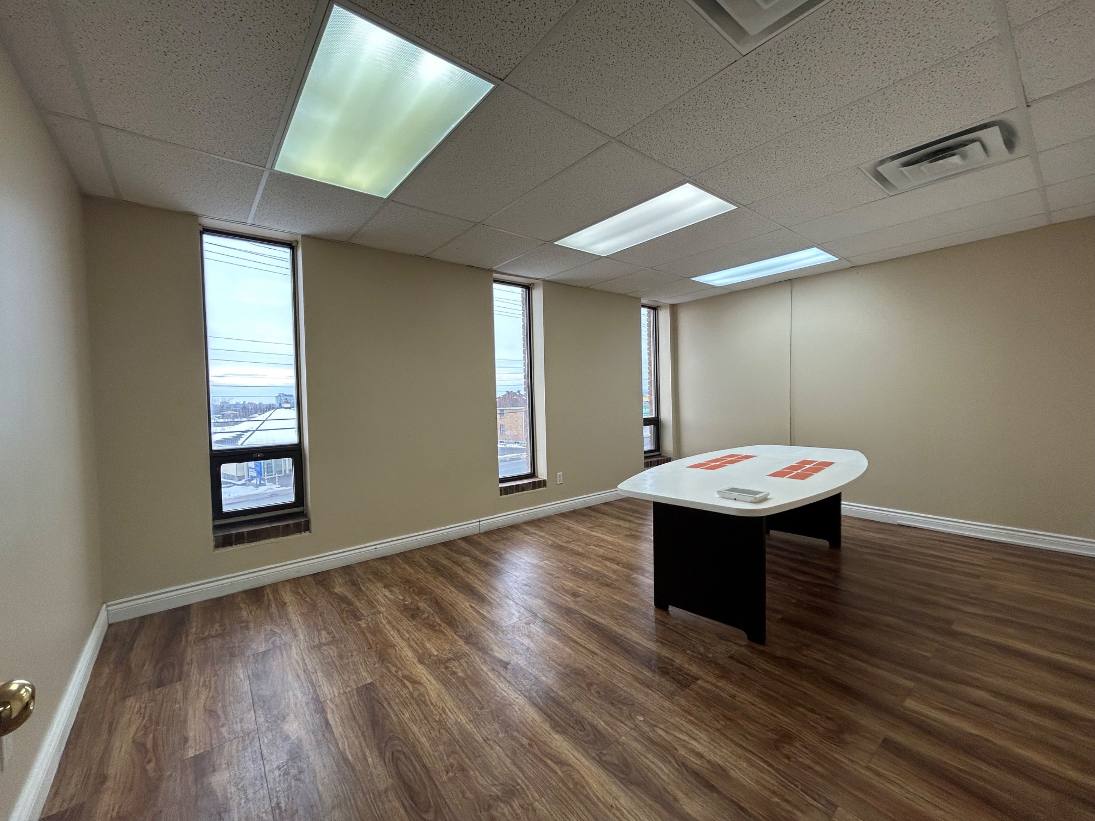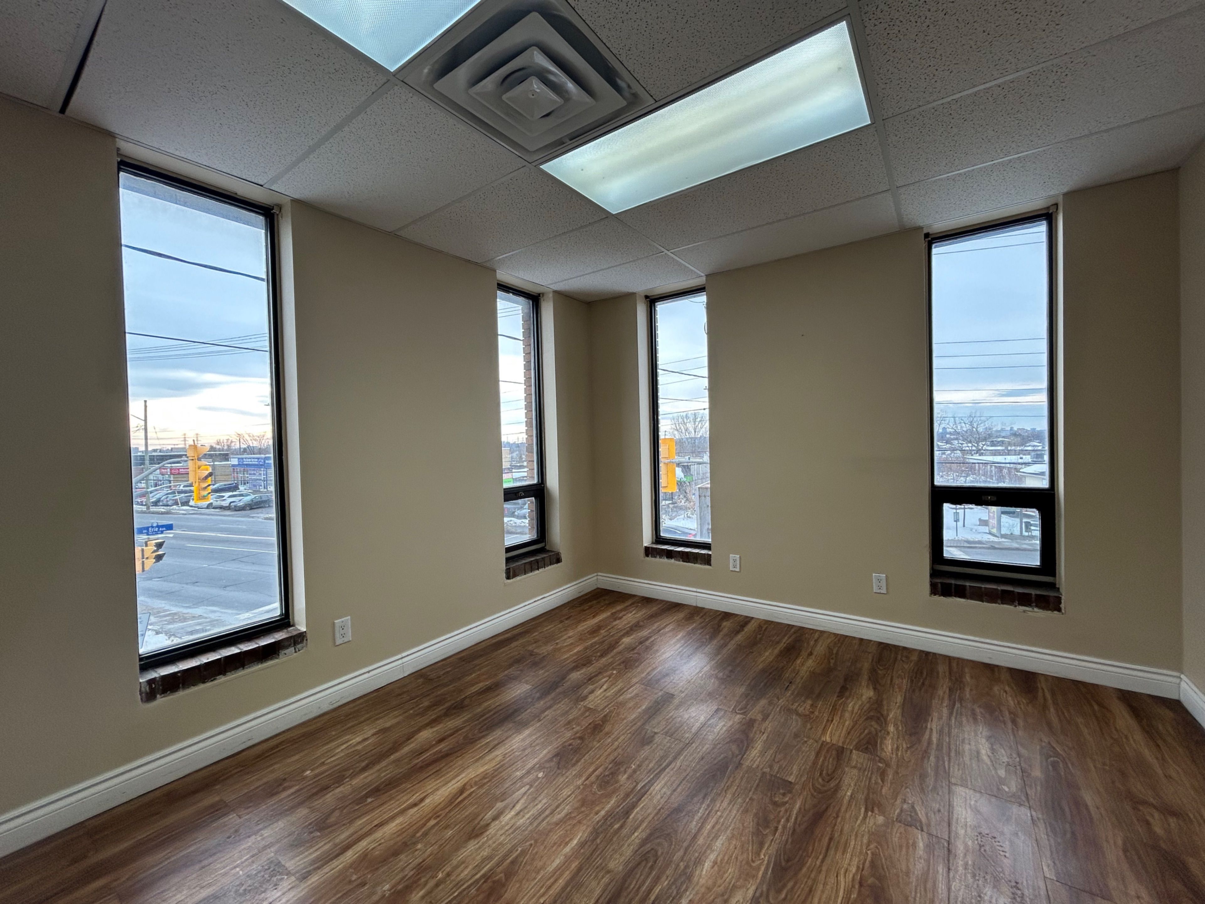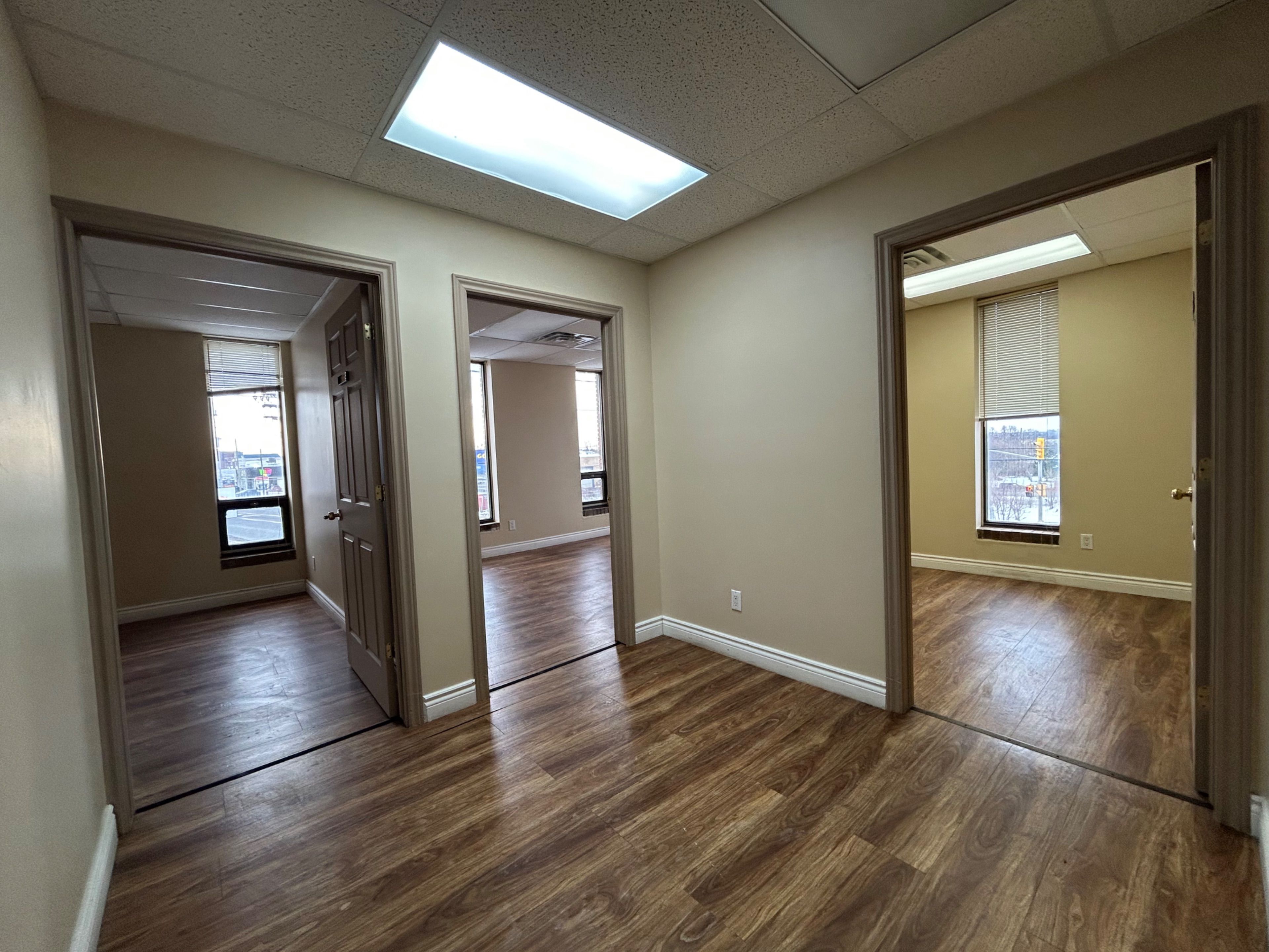 Professionally appointed, second-floor corner commercial suite offering excellent bank street exposure and is available for immediate occupancy. The spacious, light-filled walk-up features three dedicated offices, a large board room, a computer/storage room, and a welcoming reception area. Benefit from the simplicity of all-inclusive utilities and convenient on-site parking. This turn-key suite is ready to elevate your operations immediately.