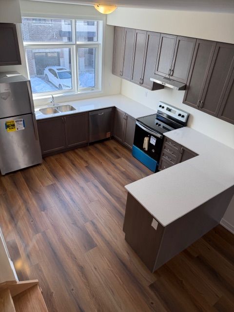 Welcome to park district towns by icon homes. This modern 3 bedroom freehold town has bright interiors with 9' ceilings on main floor. Modern kitchen with stainless steel appliances, upgraded quartz counters in kitchen, main and ensuite bathrooms. Enjoy contemporary open-concept living and dining with a 2 pc powder on the 2nd floor. Upper floor features three bedrooms, walk-in closet in the primary with a 3pc ensuite. Ensuite has double-sink and frameless shower door. Laminate floors throughout. Tandem parking in garage. Brand new never lived in just waiting for you !! Walking distance to retail plaza with restaurants, shopping, banking etc.. Minutes to 401, 407, pickering go, pickering town ctr and many trails, parks and golf.