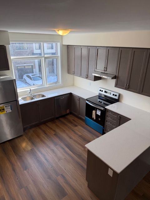 • Stylish kitchen featuring stainless steel appliances and quartz countertops.