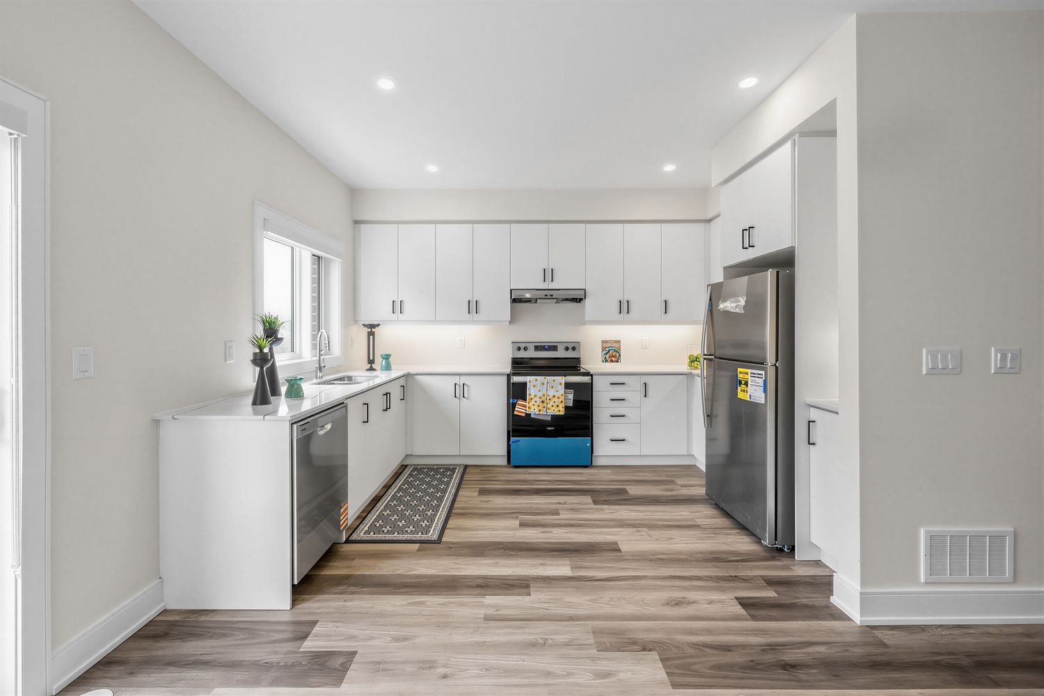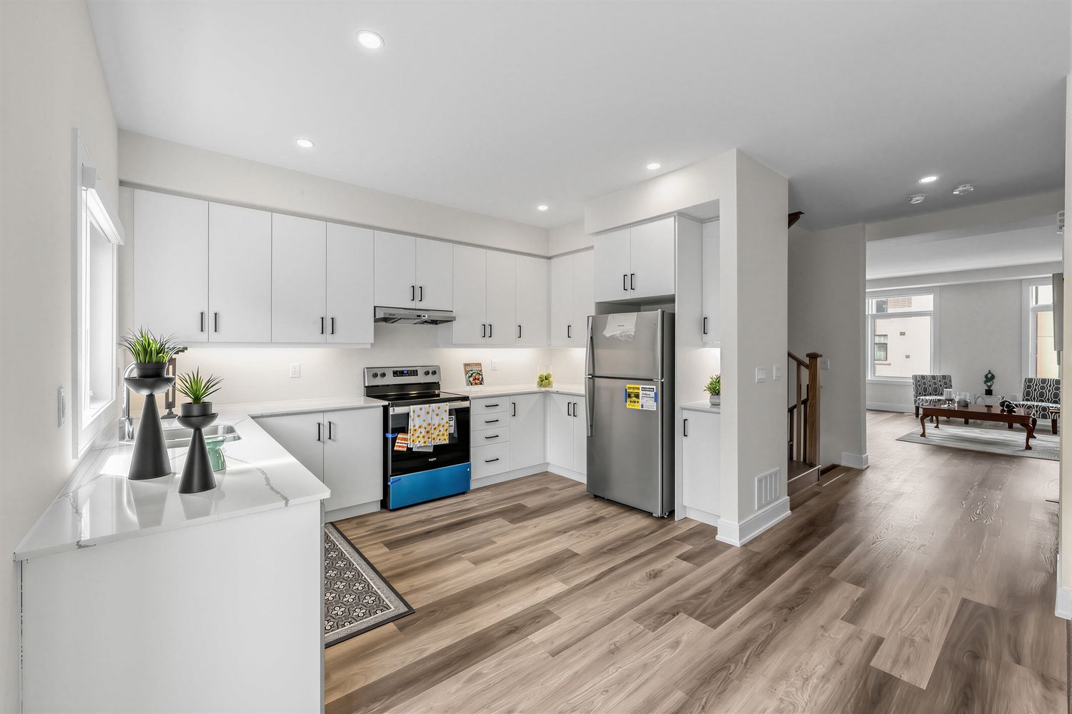 • Upgraded kitchen with quartz counters and solid oak stained stairs.
