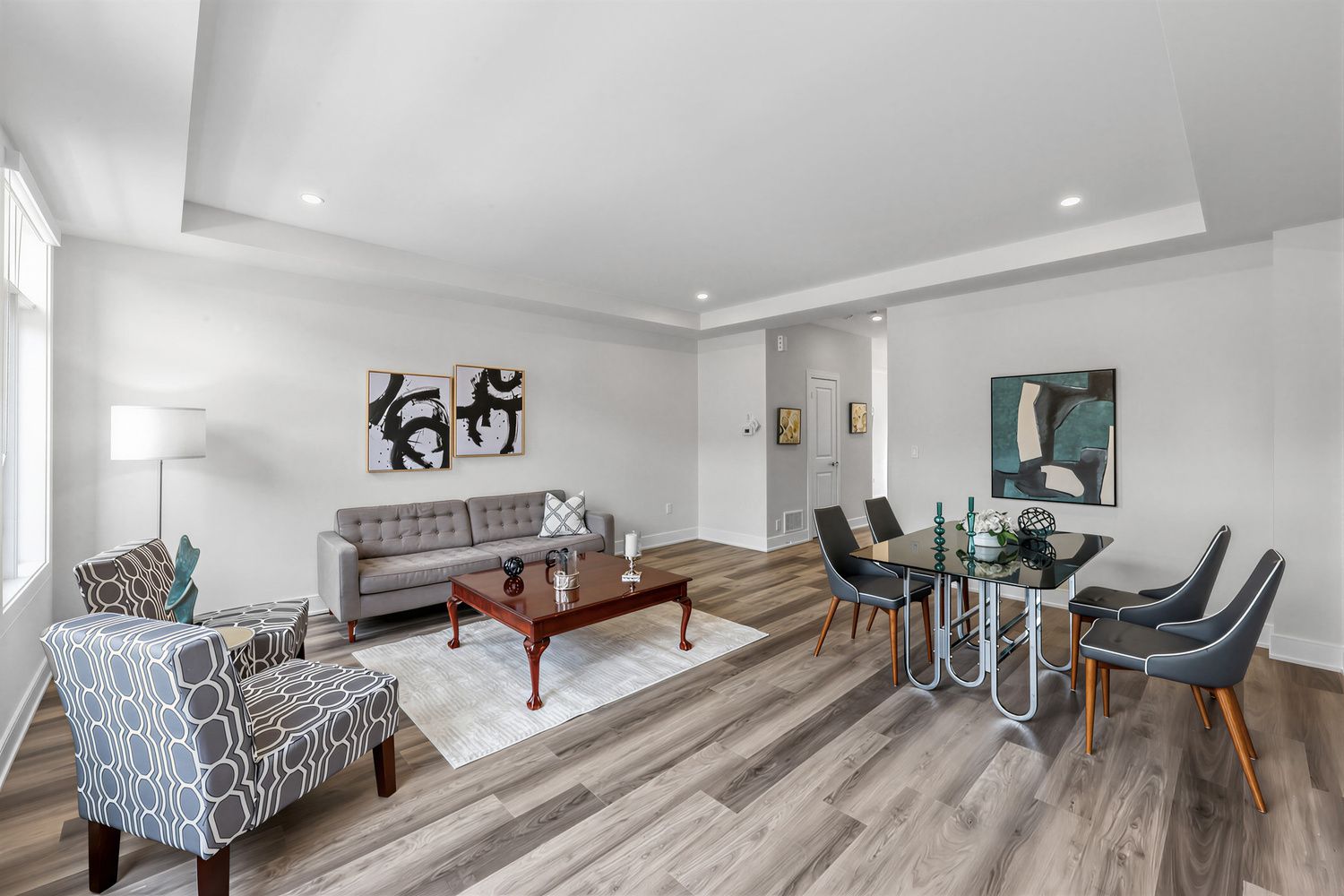 Welcome to park district towns... This exceptional furnished model home has over $40,000 in upgrades. Solid oak stained stairs, upgraded quartz kitchen counters, stone counters in washroom,(except p. Rooms) double sink in ensuite bath w/ shower stall & framess glass, deck off kitchen. Located in prime duffin heights neighbourhood. Close to many trails, golf, go station & pickering 10 minutes, walk to retail plaza with shops and dining. Temple across street, medical centre on corner of brock and dersan.. Backyard for the kids to play. Minutes to 401 & 407 . Price to sell... Presentation centre open weekends 12-4 - stop in at unit 104 to register. Note hst not included in price -