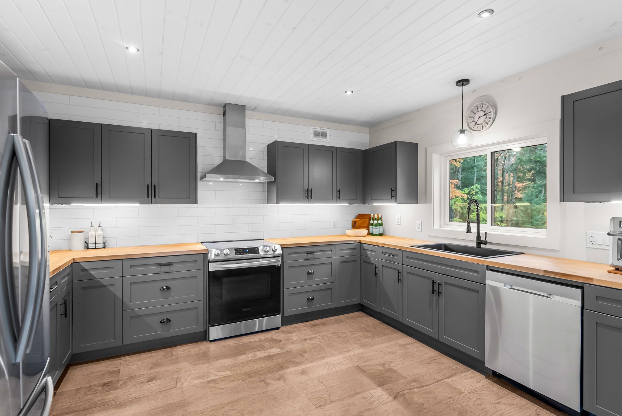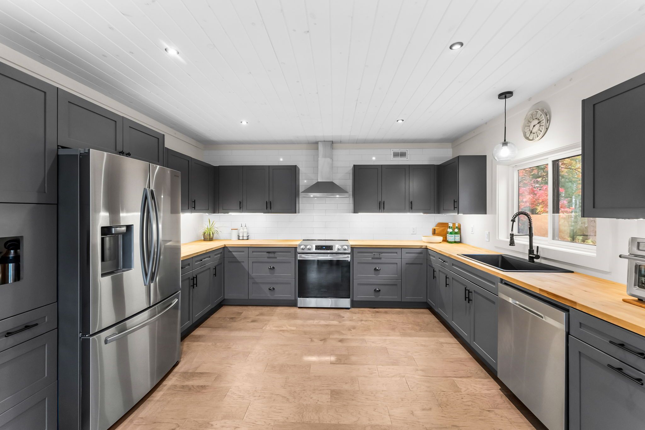 • Open-concept kitchen leads to a massive deck for outdoor enjoyment.