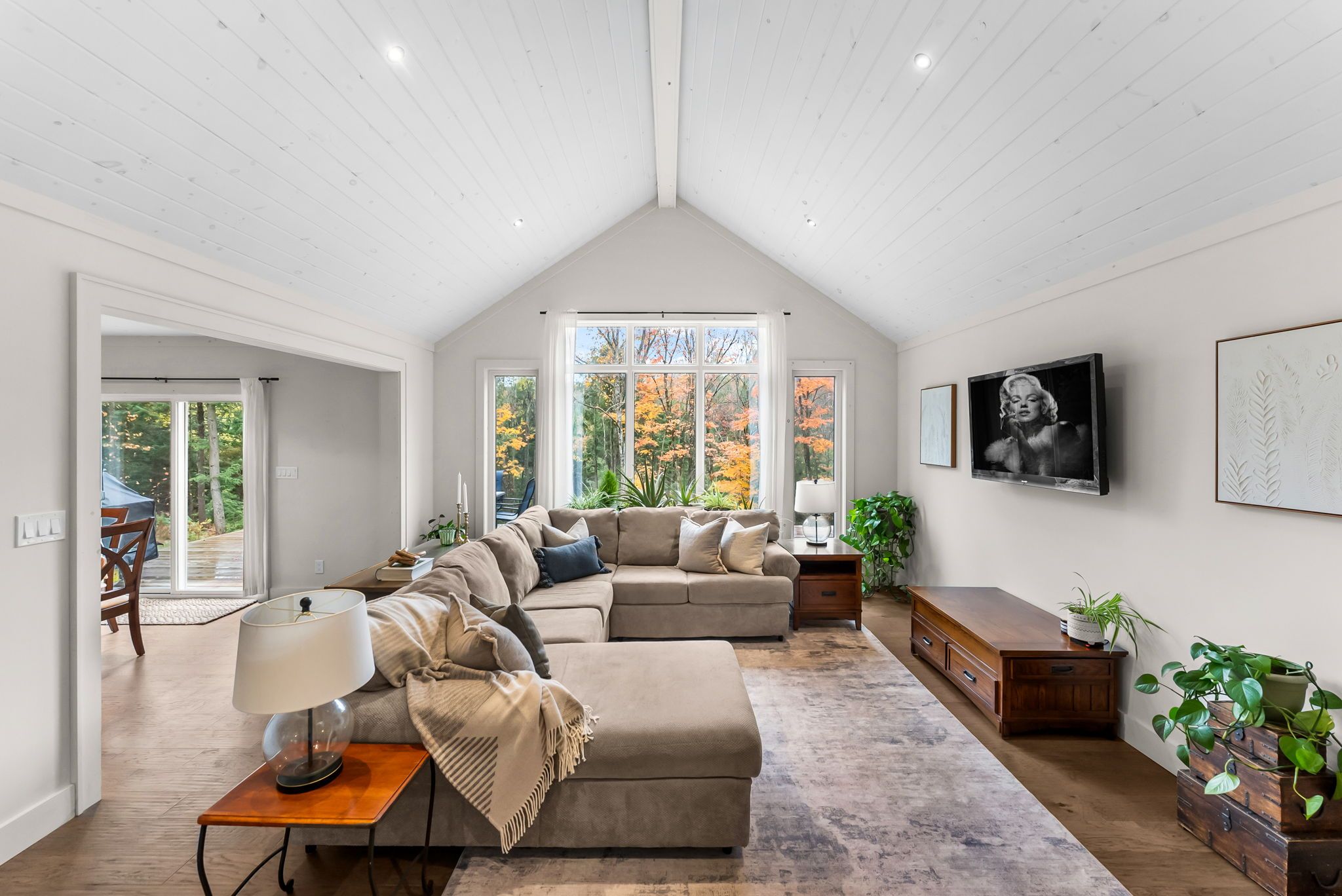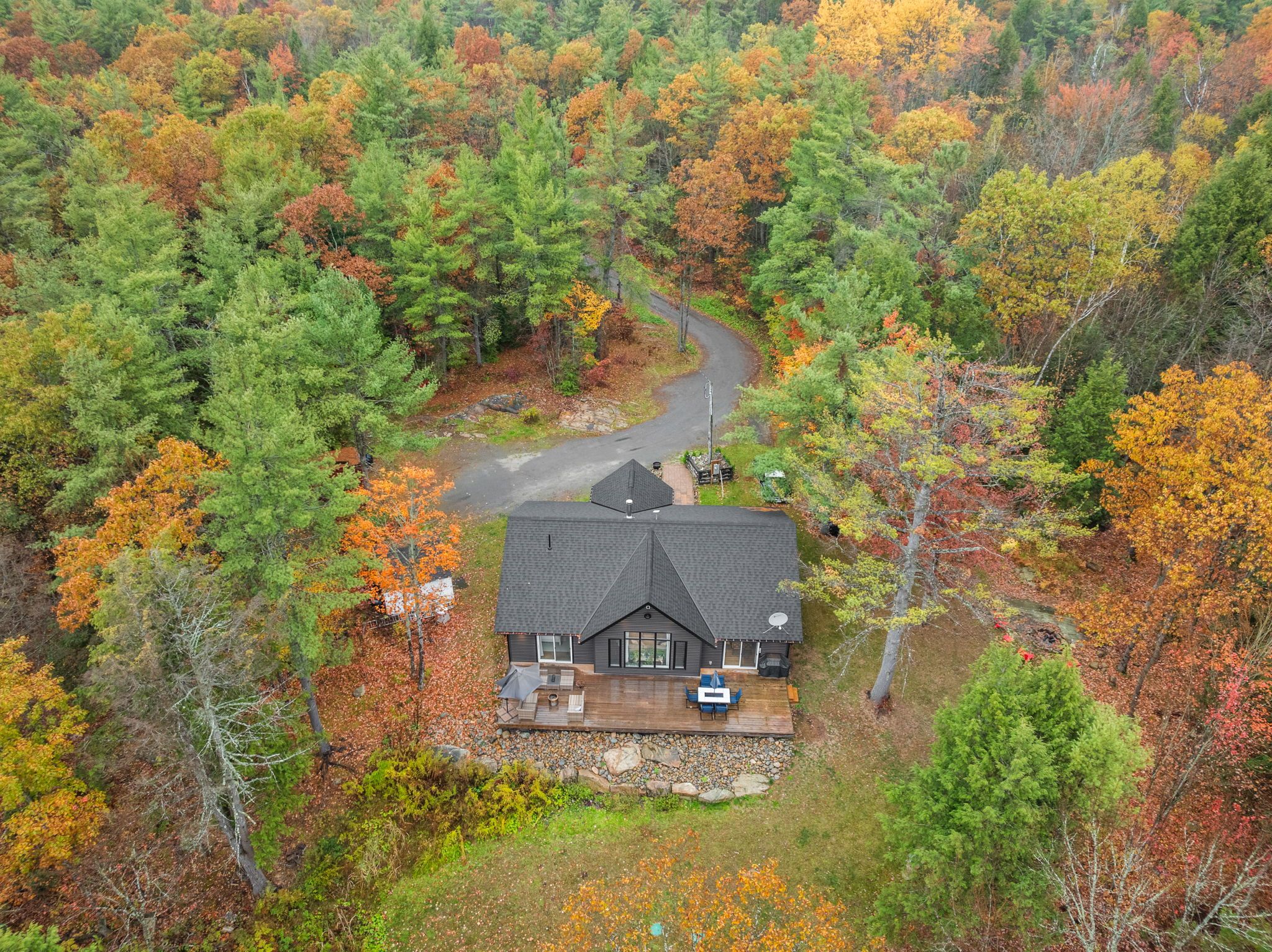 Discover peaceful country living on nearly 10 private acres with this bright, thoughtfully designed 3-bedroom bungalow. With over 1,600 sq. Ft. Of living space and in-floor heating throughout, this home offers comfort and style year-round, whether as a full-time residence or weekend retreat. The spacious living room boasts a soaring cathedral ceiling and a cozy woodstove, creating a warm, inviting space to relax. The open-concept kitchen flows seamlessly to a massive deck, perfect for bbqs, morning coffee, or simply enjoying the serene surroundings. Retreat to the primary suite featuring a private walkout, walk-in closet, and a stylish 3-piece ensuite with a custom-tiled shower. Step outside to a covered front porch, a cleared yard with firepit, and a large storage shed - ideal for outdoor gear, tools, or hobbies. With ample parking, total privacy, and a prime location just minutes to hwy 11, bracebridge, and gravenhurst, this property blends tranquility with convenience. Experience the muskoka lifestyle you've been dreaming of - where every day feels like a getaway.