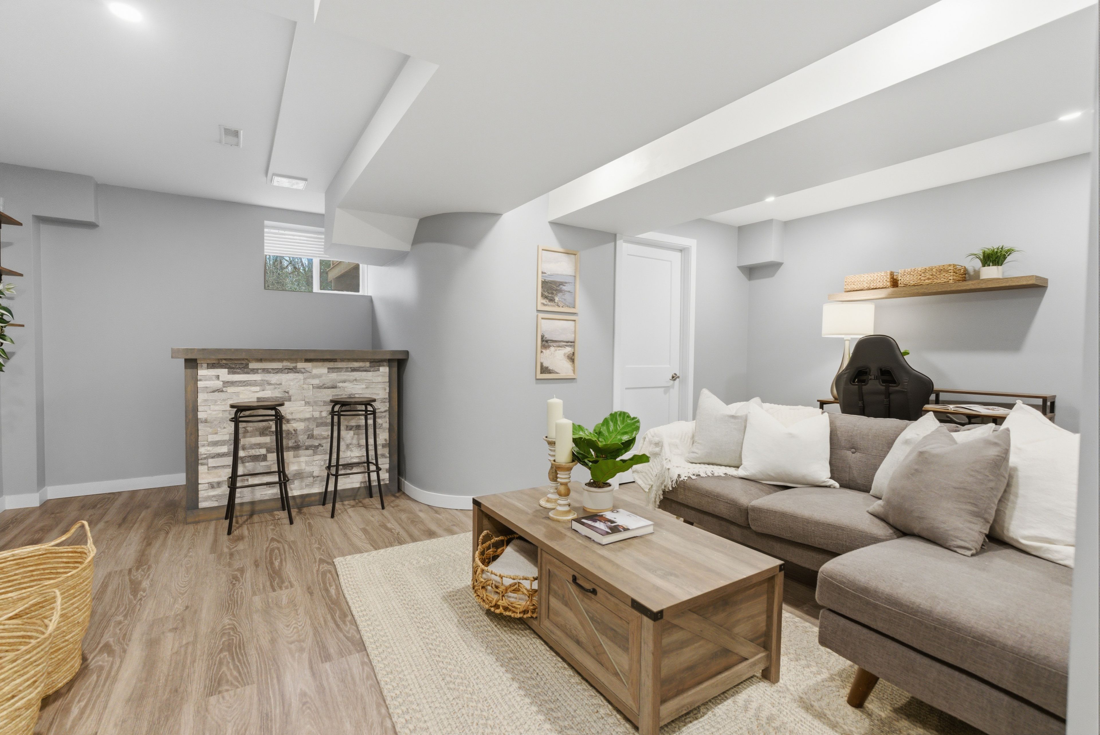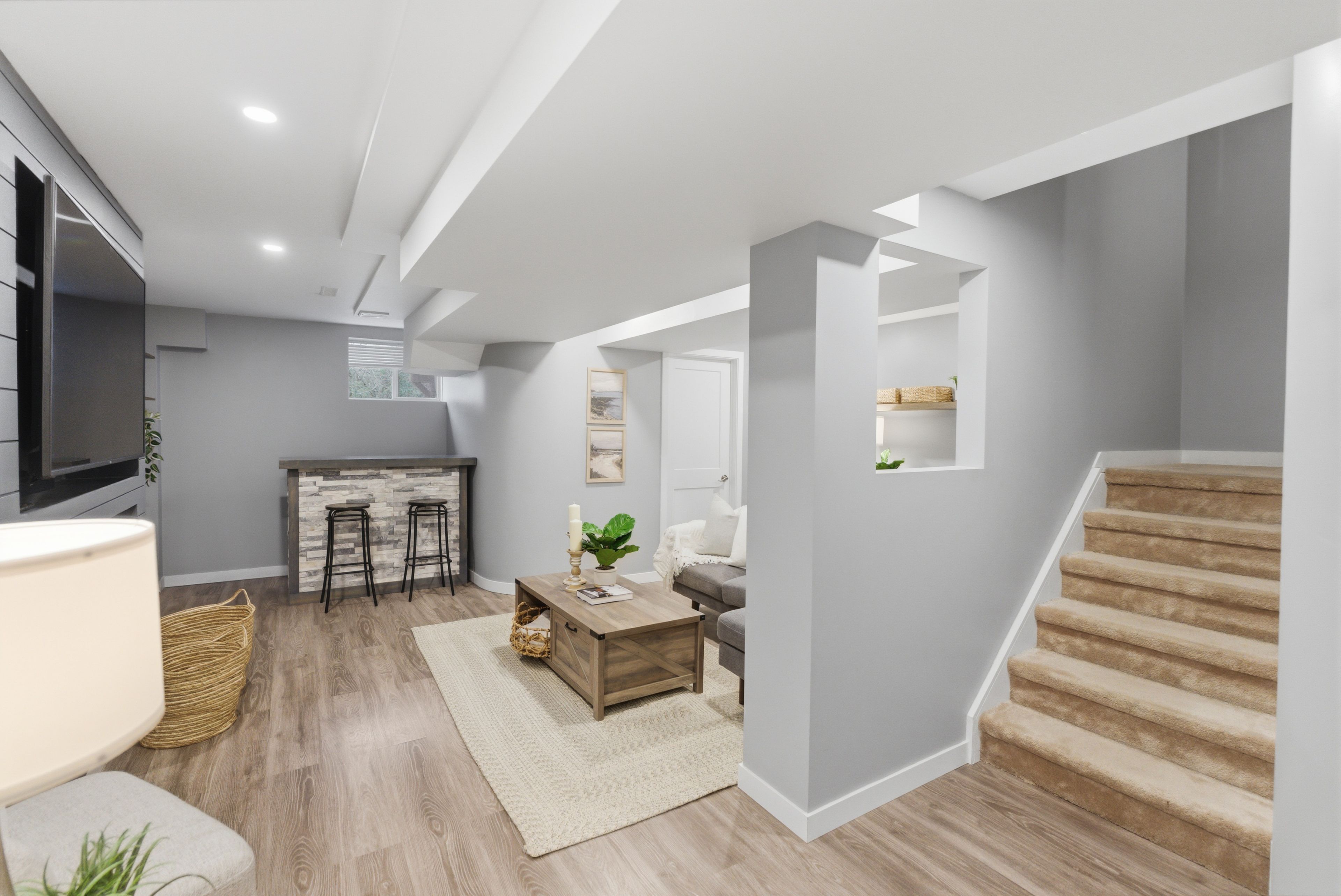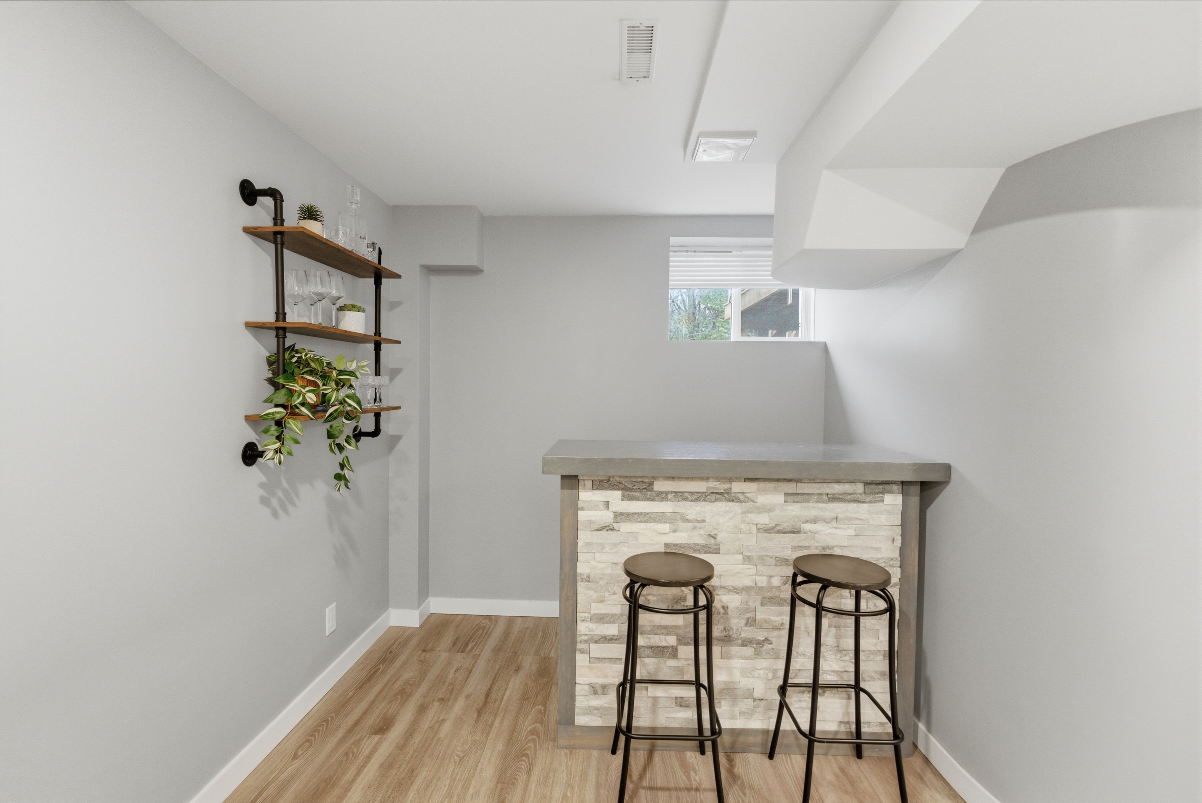 • Finished basement ideal for entertaining with a bar area and TV wall.
