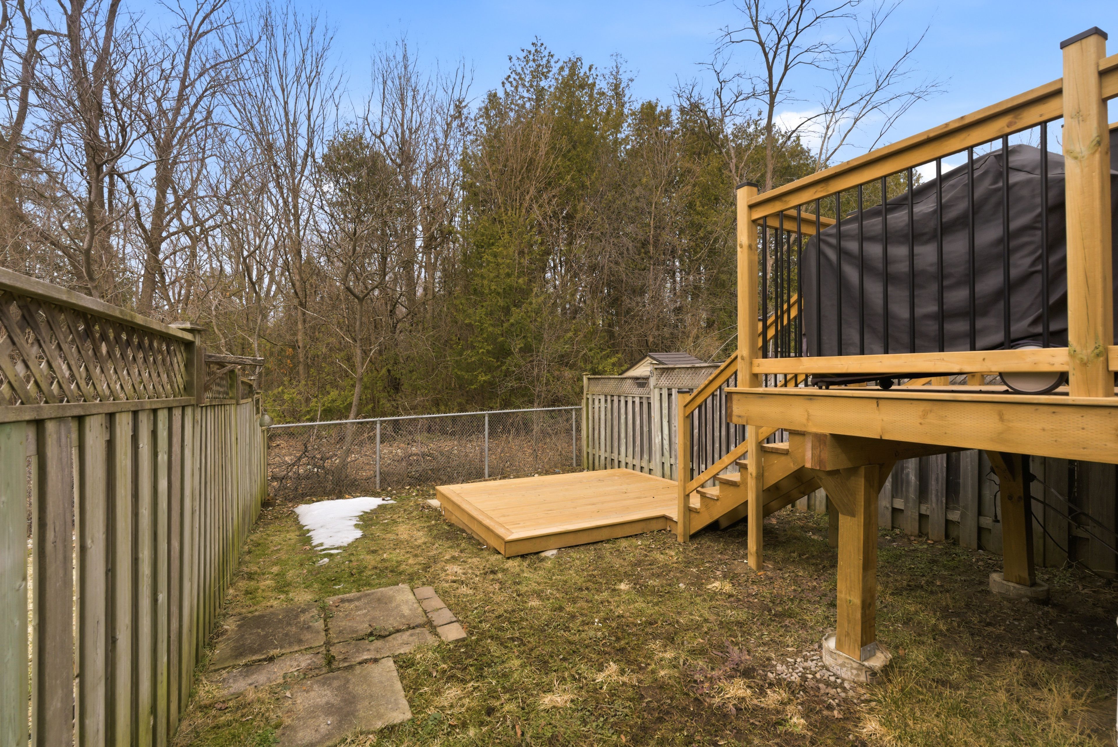 • Private backyard with a new two-level deck for relaxation and gatherings.