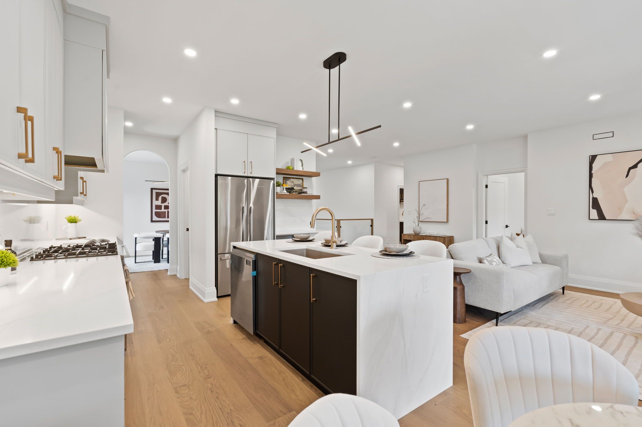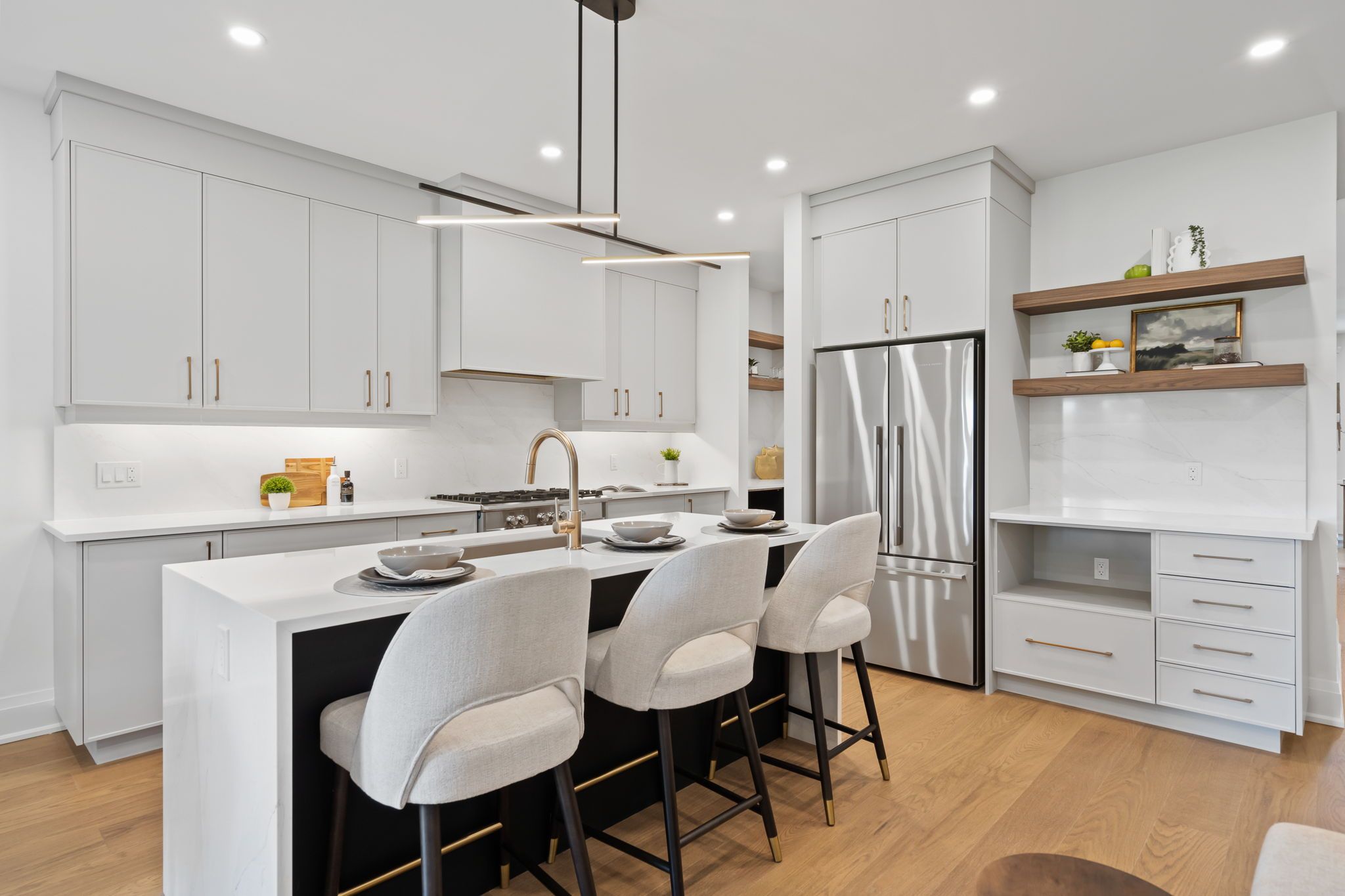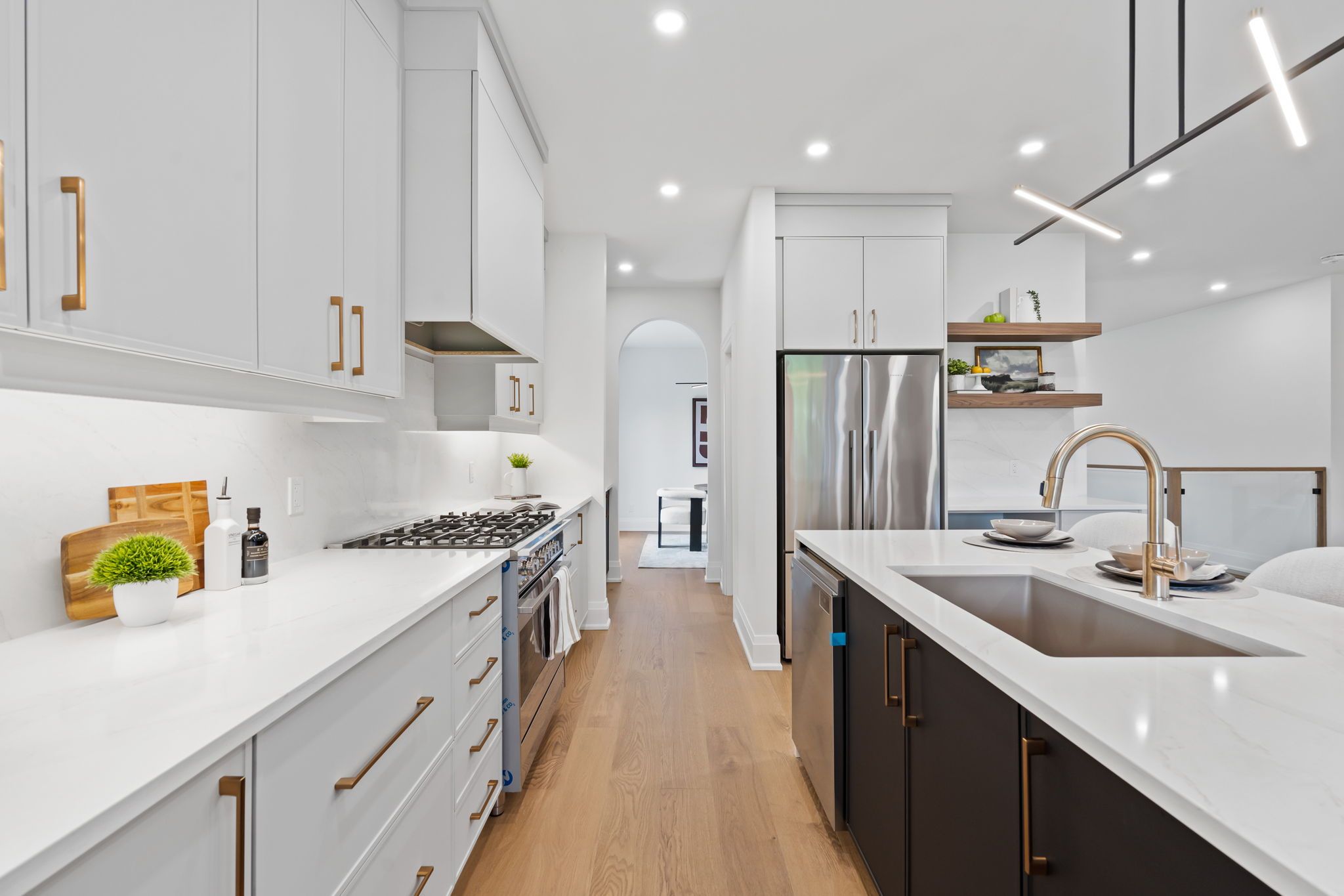 • Convenient main-floor laundry and custom-designed kitchen with high-end finishes.