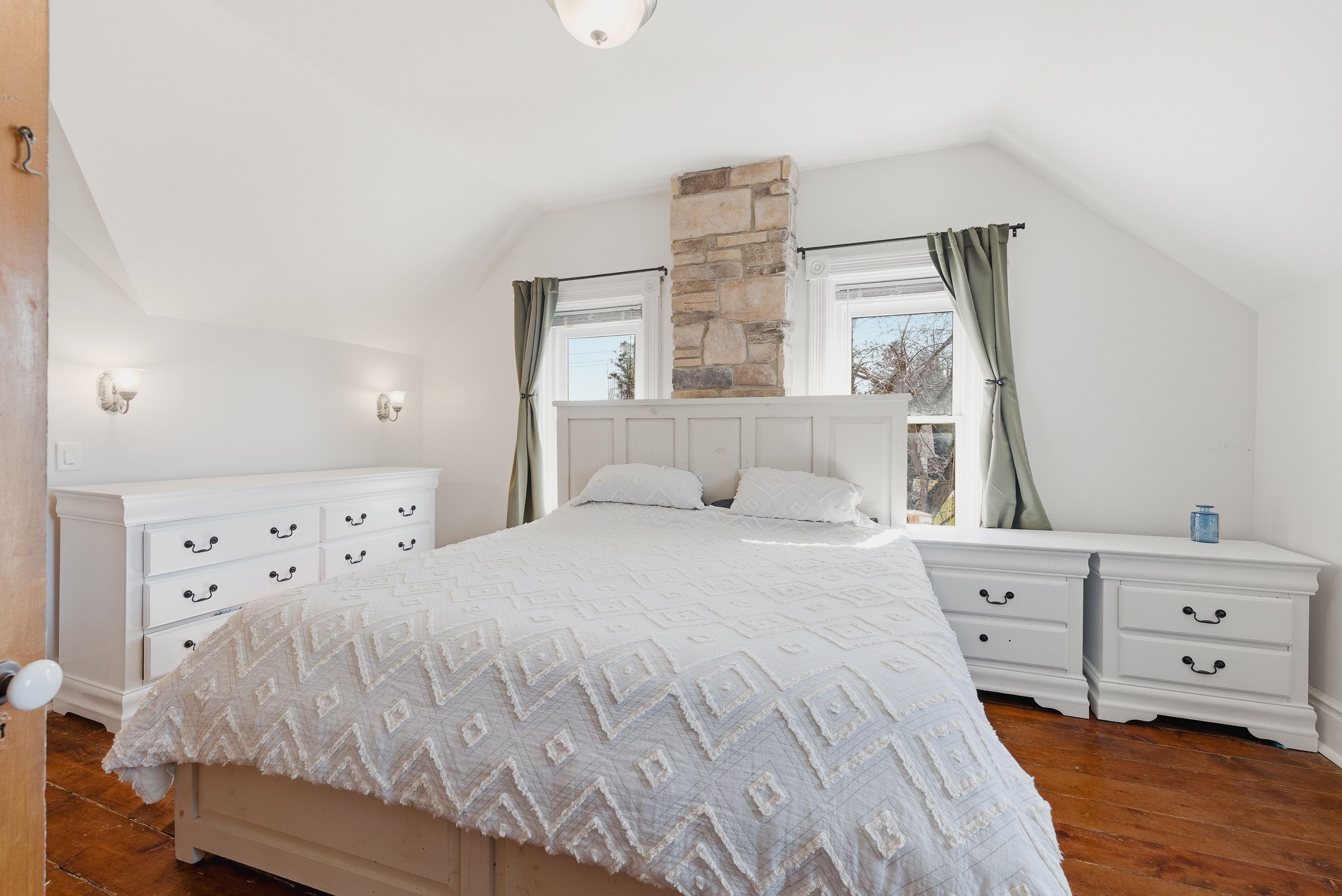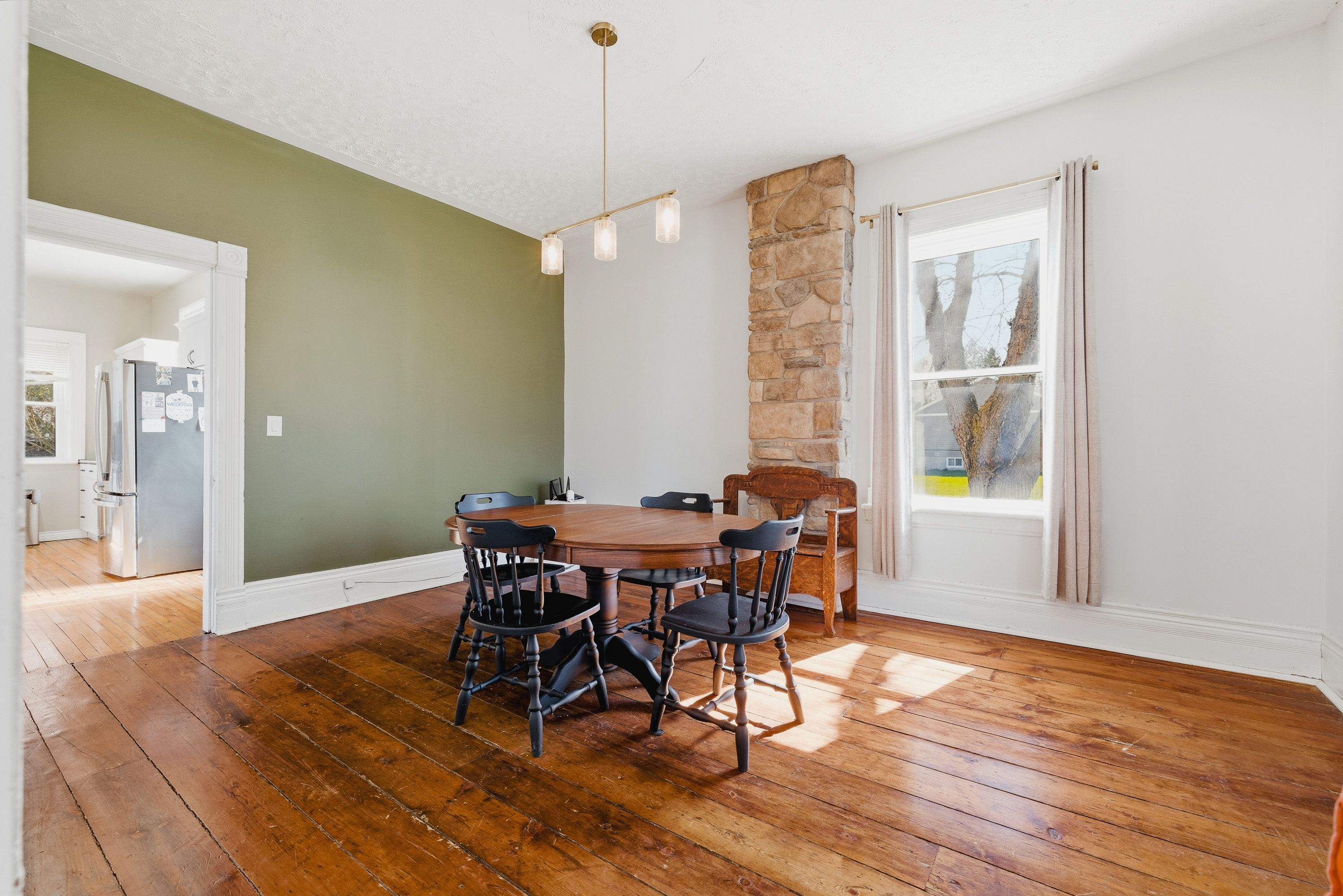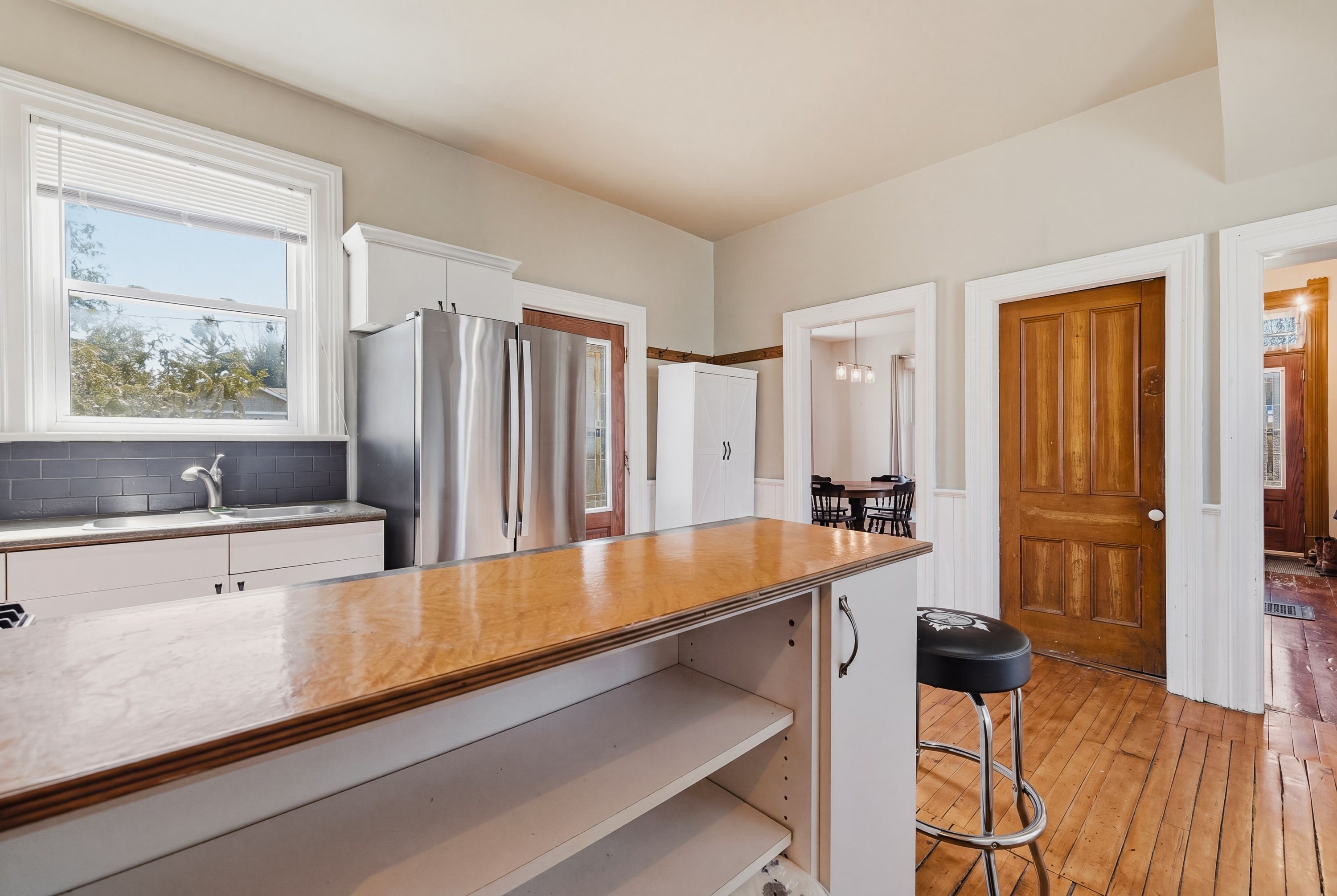 Welcome to 17 allan street west, a charming yellow brick home set in the peaceful community of clifford. Located on a large corner lot in a quiet neighbourhood, this property is just steps from local shops, downtown conveniences, and the green space of cenotaph park, offering a perfect blend of small-town living and everyday accessibility. This solid 1. 5-storey home features 3 bedrooms and 2 bathrooms, with timeless character throughout including original wood floors, trim, and soaring ceilings. The main floor offers a spacious living room with a rustic wood-burning fireplace, a formal dining area, kitchen, and an updated 2-piece bath. Upstairs, you'll find three generous bedrooms, including a primary bedroom with its own private second-floor balcony, a large 4-piece bathroom with ensuite privileges, and the convenience of second-floor laundry. The unfinished basement includes a workshop area, ample storage, and a separate walk-up entrance. Major updates include a furnace and a/c (2022), with no rental items. Outside, enjoy a partially fenced yard with mature trees, garden beds, and a large deck-perfect for relaxing or entertaining. A standout feature is the 30 x 30 heated and insulated detached workshop, ideal for hobbies or additional workspace. A wonderful opportunity to own a character-filled home with modern updates in a welcoming community.