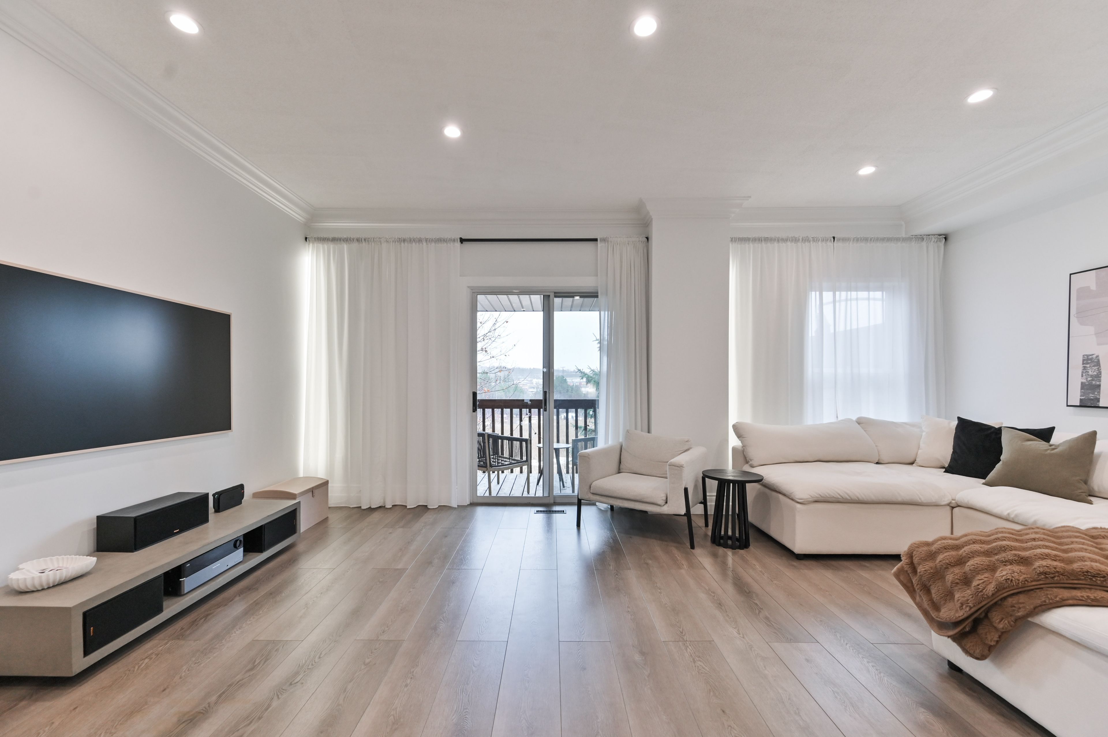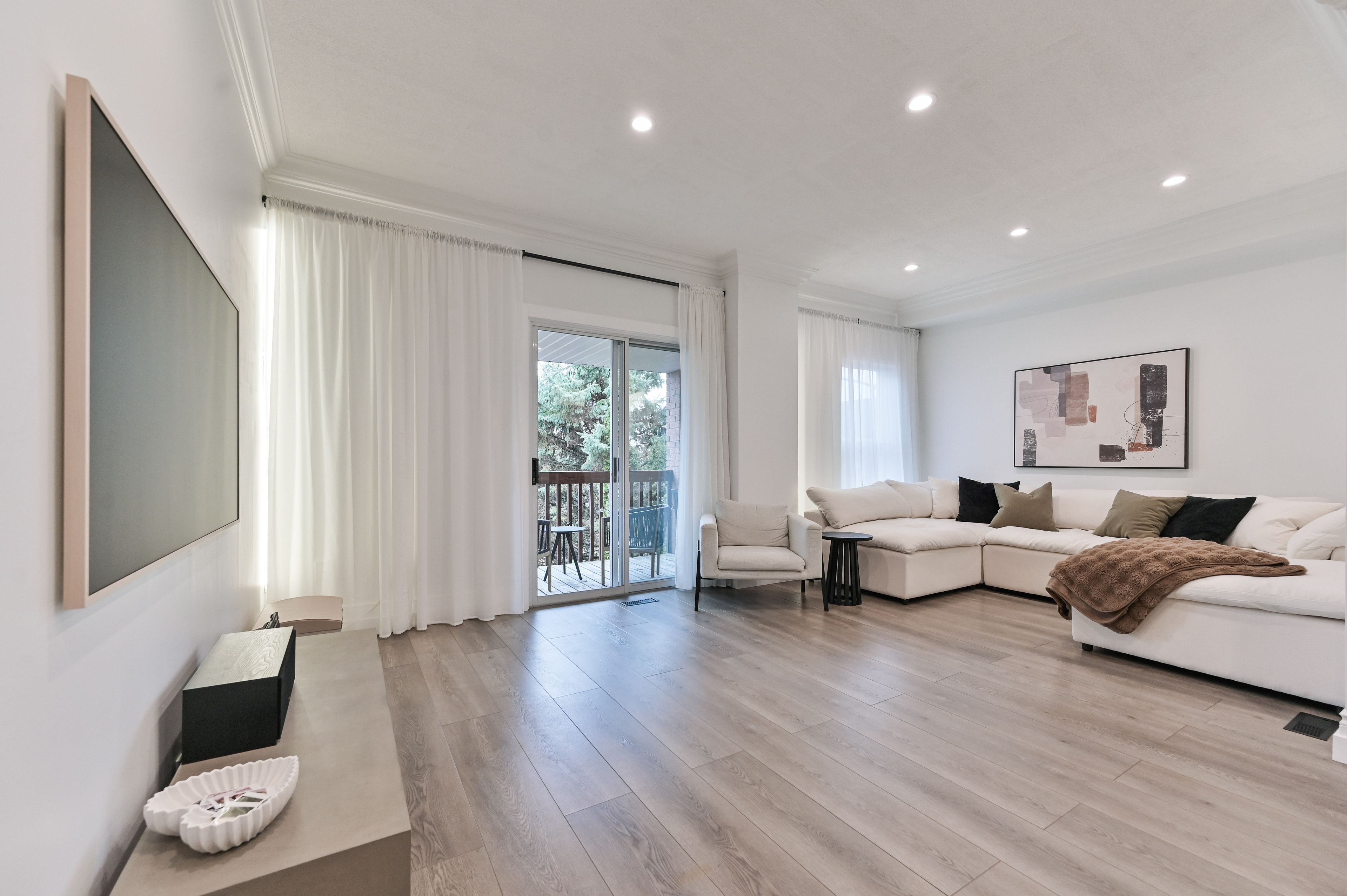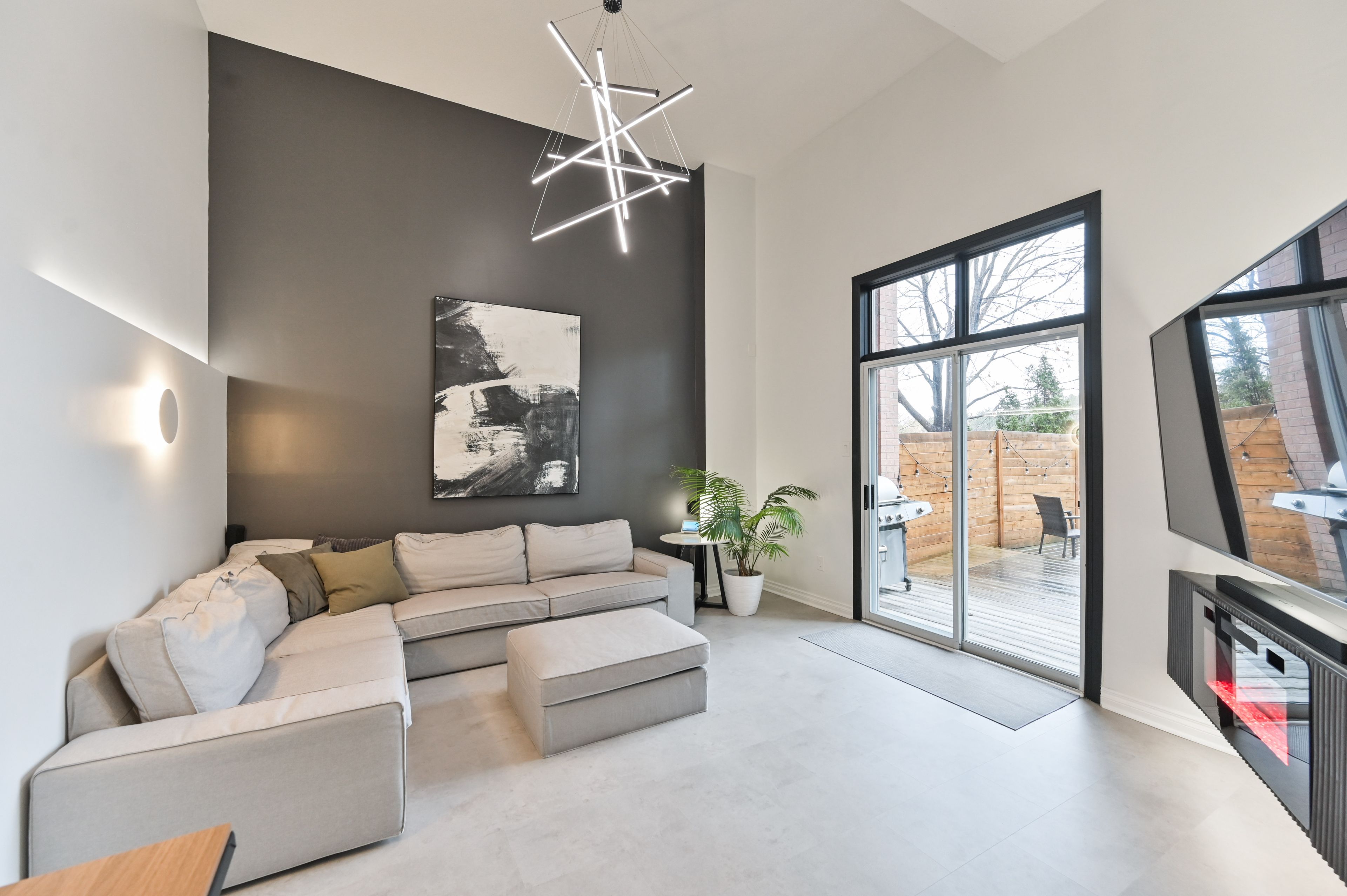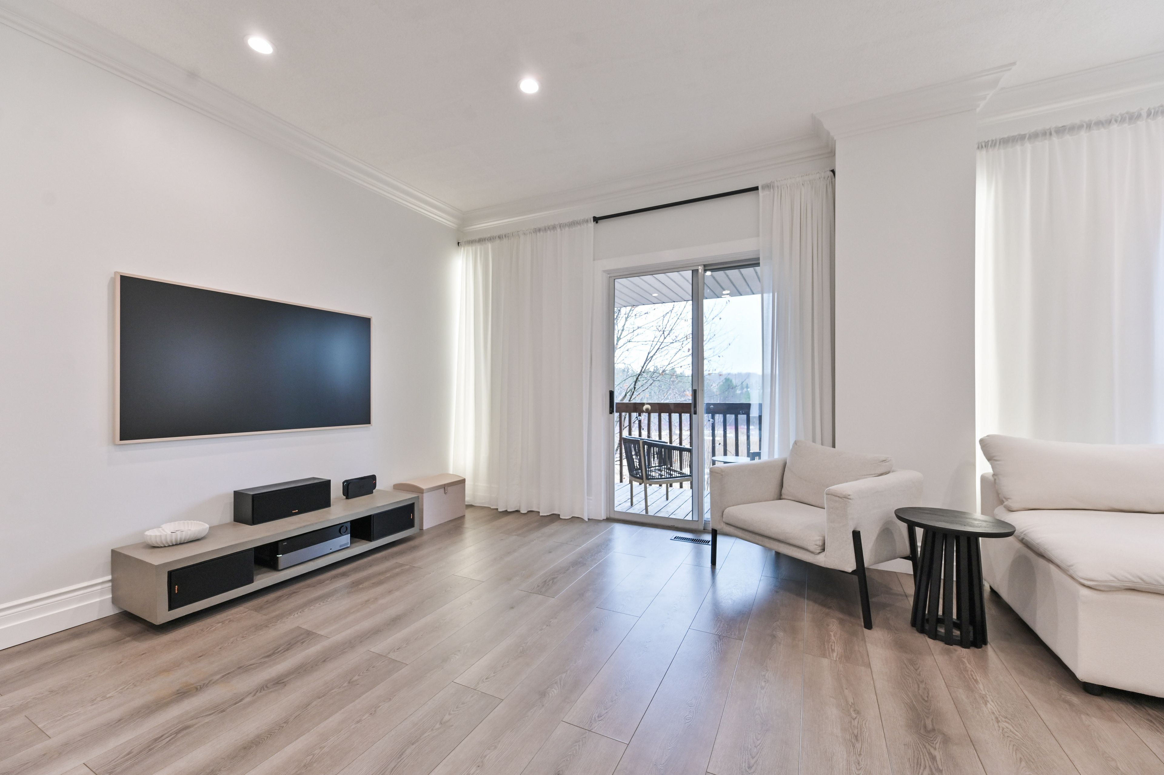 Beautifully renovated townhome backing onto private greenspace with no rear neighbours in sought-after aurora. Located on a quiet street yet just minutes from the aurora go station and aurora's vibrant downtown filled with shops, restaurants, and entertainment. This exceptionally bright open-concept home offers 3 bedrooms and 2. 5 bathrooms and shows true pride of ownership, having been professionally renovated from top to bottom with modern, elegant finishes throughout. The primary suite features a walk-in closet and a beautifully updated ensuite with heated floors and a state-of-the-art shower panel, creating a spa-like retreat. The home's most striking feature is the dramatic walk-out basement, designed with a loft-like feel and a stylish bar overlooking the space below. Large windows fill the area with natural light, creating an incredible setting for entertaining. Step directly outside to the expansive private deck overlooking peaceful greenspace, an ideal space for hosting gatherings while enjoying the rare privacy of having no rear neighbours. With tranquil views behind the home, the outdoor setting offers a level of privacy rarely found in townhomes and creates an inviting atmosphere for entertaining or relaxing. A truly unique and beautifully upgraded home combining modern style, dramatic living space, and exceptional indoor-outdoor entertaining.