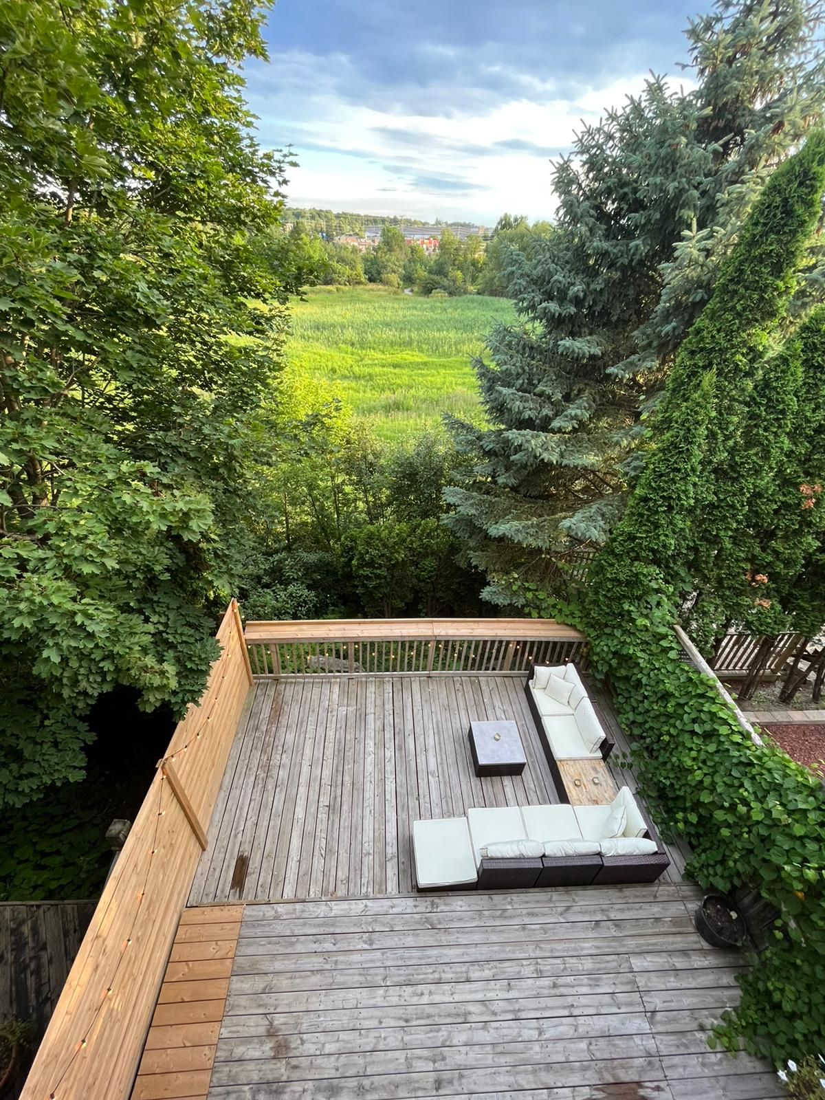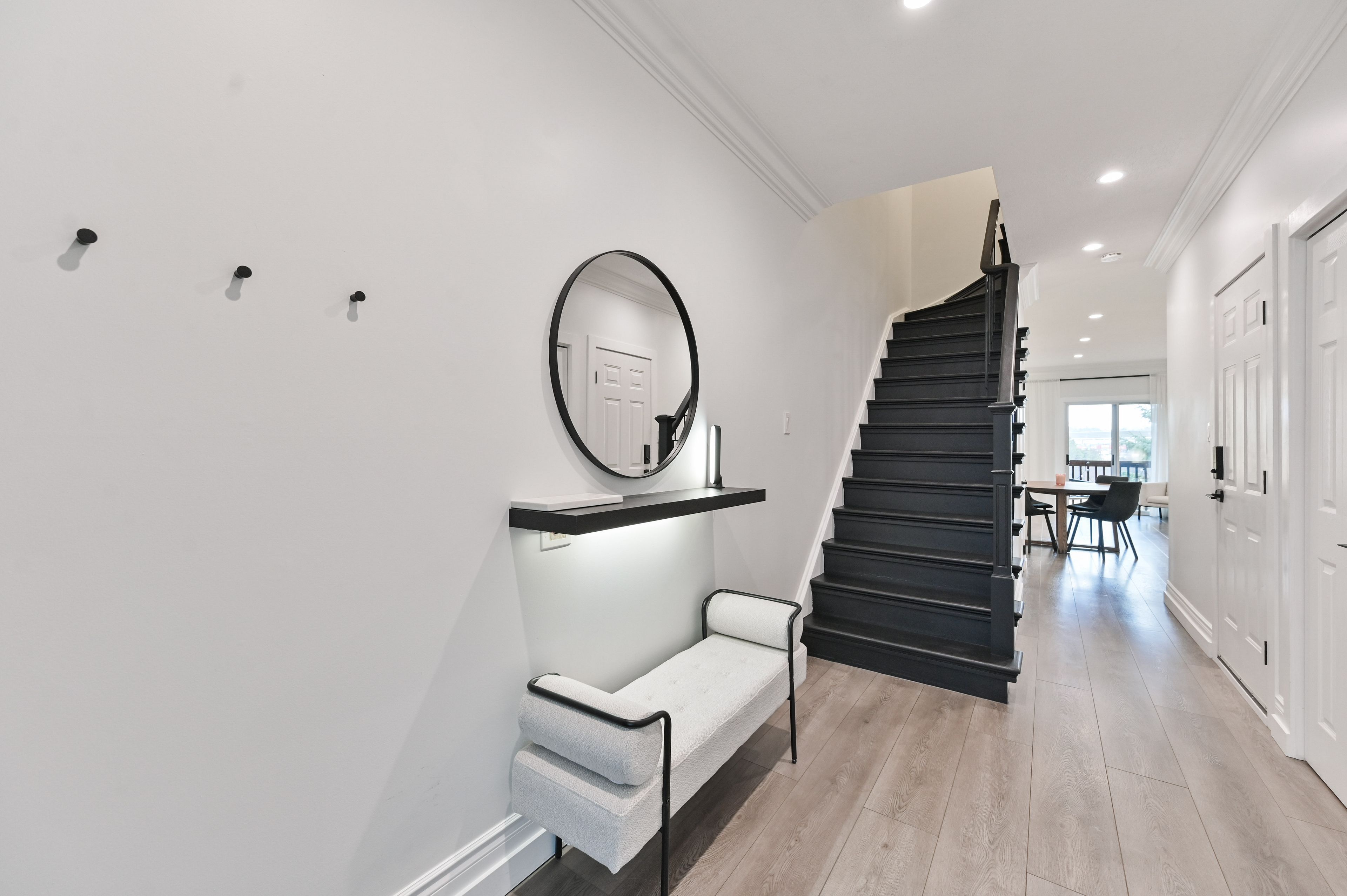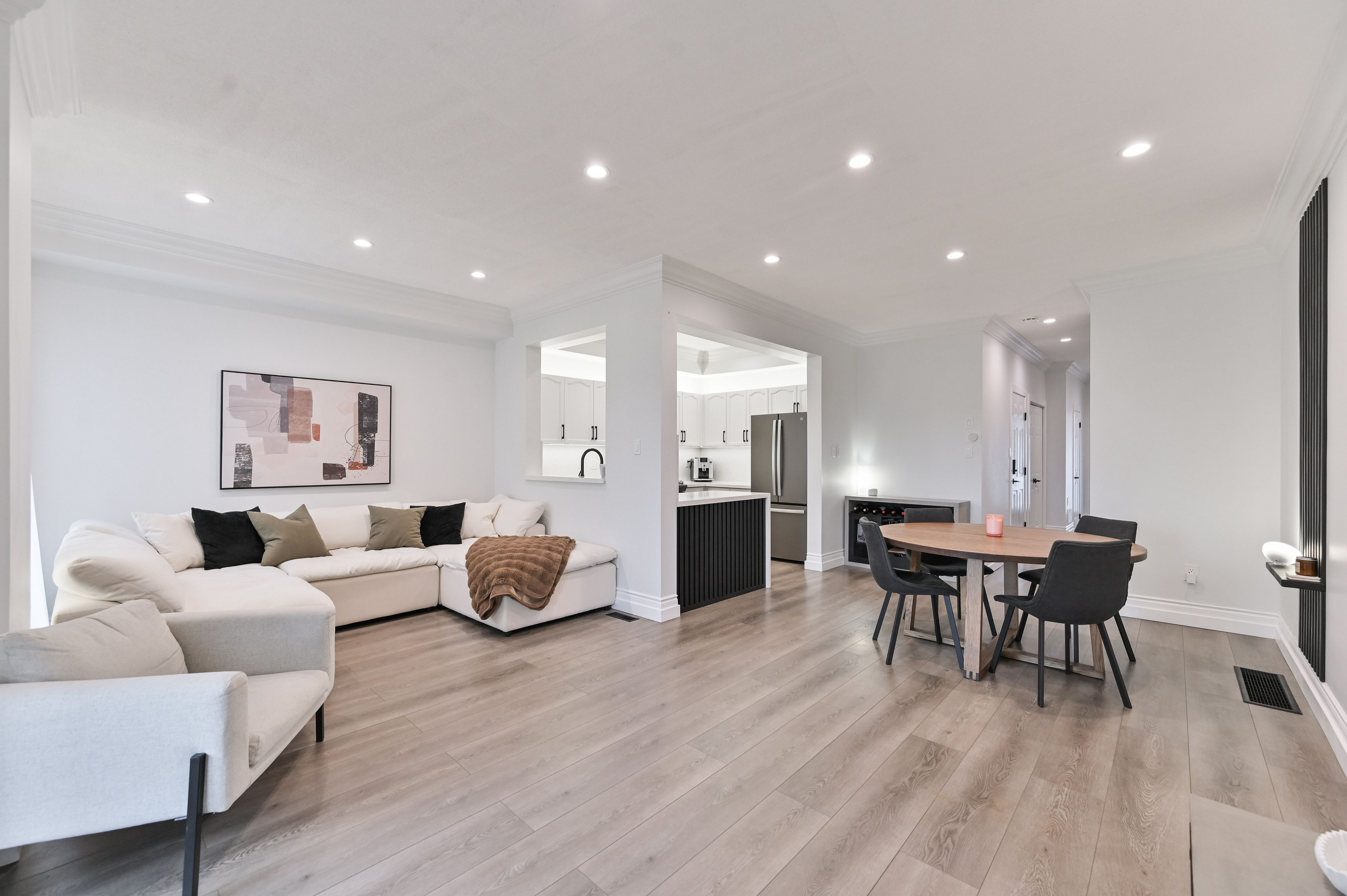 Beautifully renovated townhome backing onto private greenspace with no rear neighbours in sought-after aurora. Located on a quiet street yet just minutes from the aurora go station and aurora's vibrant downtown filled with shops, restaurants, and entertainment. This exceptionally bright open-concept home offers 3 bedrooms and 2. 5 bathrooms and shows true pride of ownership, having been professionally renovated from top to bottom with modern, elegant finishes throughout. The primary suite features a walk-in closet and a beautifully updated ensuite with heated floors and a state-of-the-art shower panel, creating a spa-like retreat. The home's most striking feature is the dramatic walk-out basement, designed with a loft-like feel and a stylish bar overlooking the space below. Large windows fill the area with natural light, creating an incredible setting for entertaining. Step directly outside to the expansive private deck overlooking peaceful greenspace, an ideal space for hosting gatherings while enjoying the rare privacy of having no rear neighbours. With tranquil views behind the home, the outdoor setting offers a level of privacy rarely found in townhomes and creates an inviting atmosphere for entertaining or relaxing. A truly unique and beautifully upgraded home combining modern style, dramatic living space, and exceptional indoor-outdoor entertaining.
