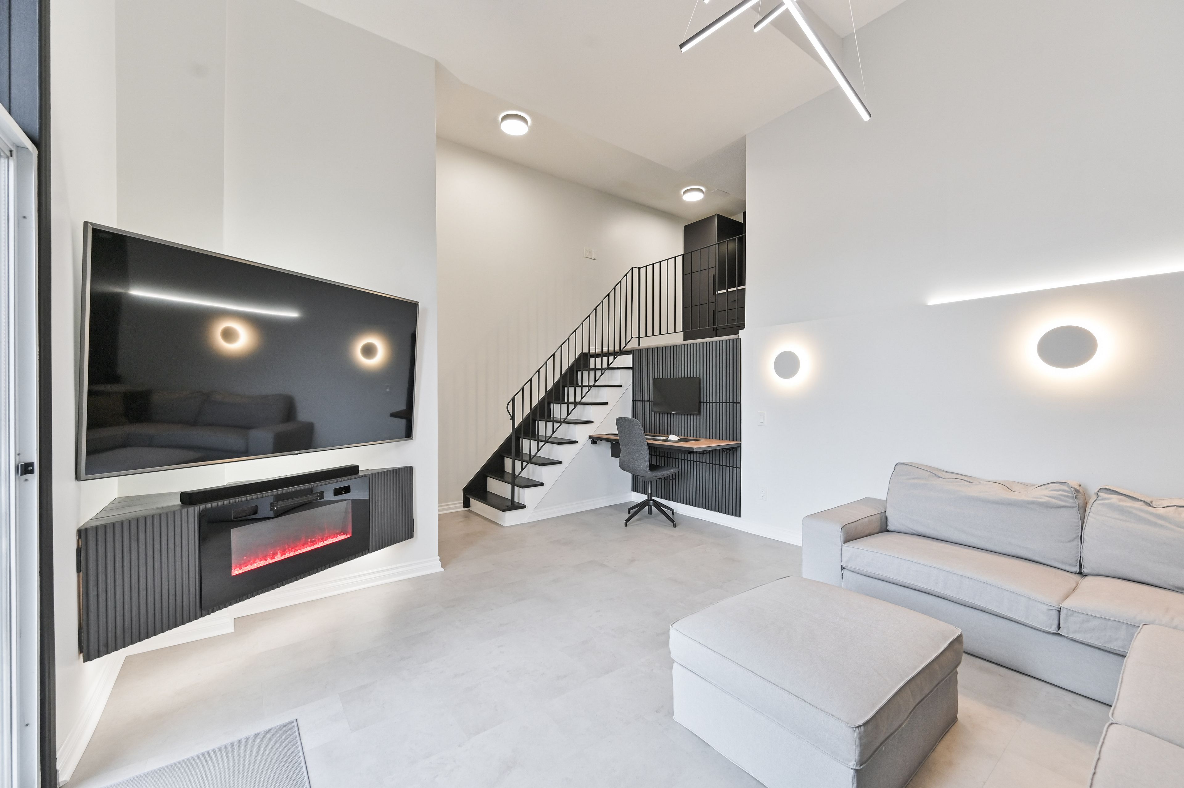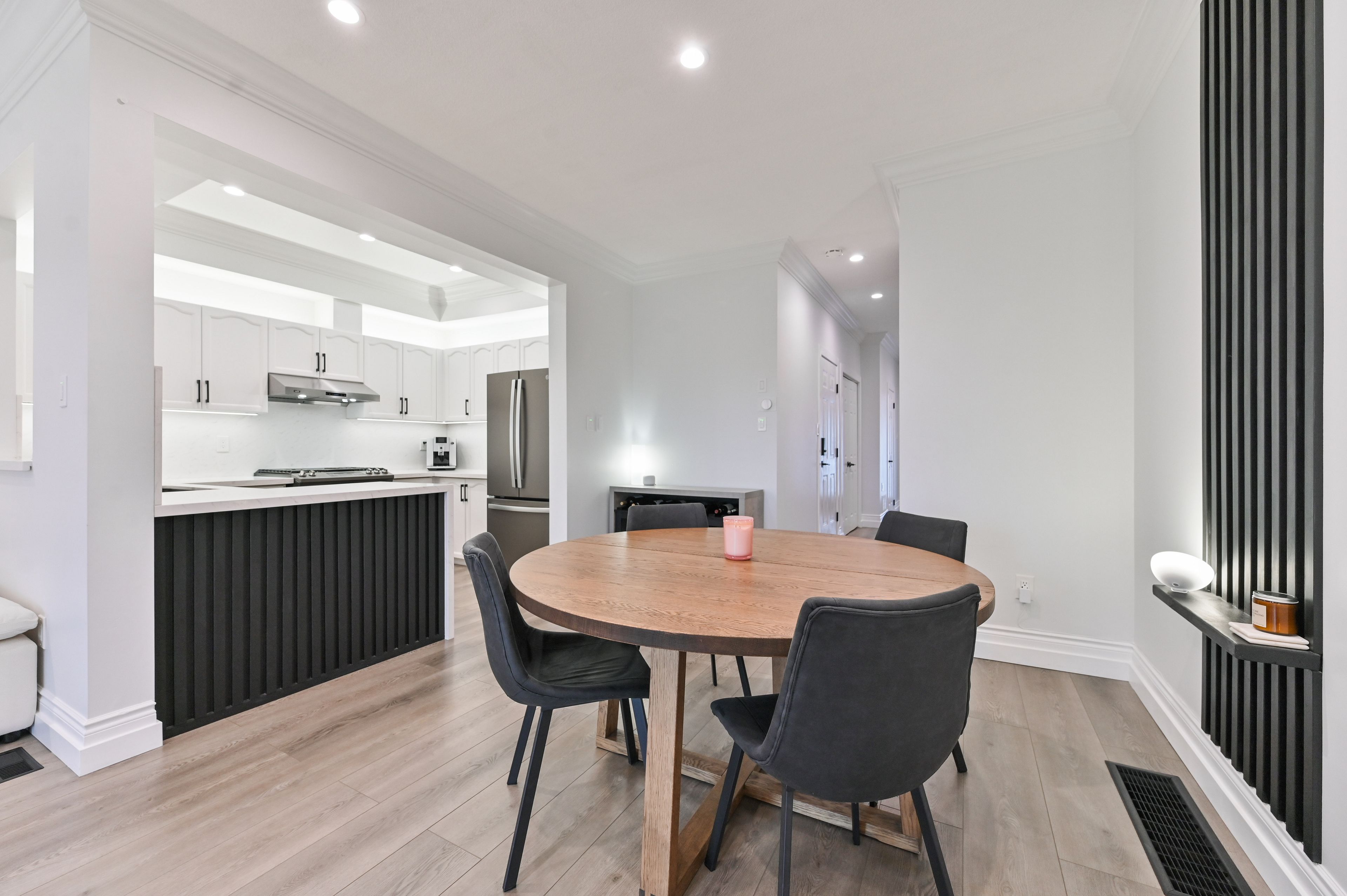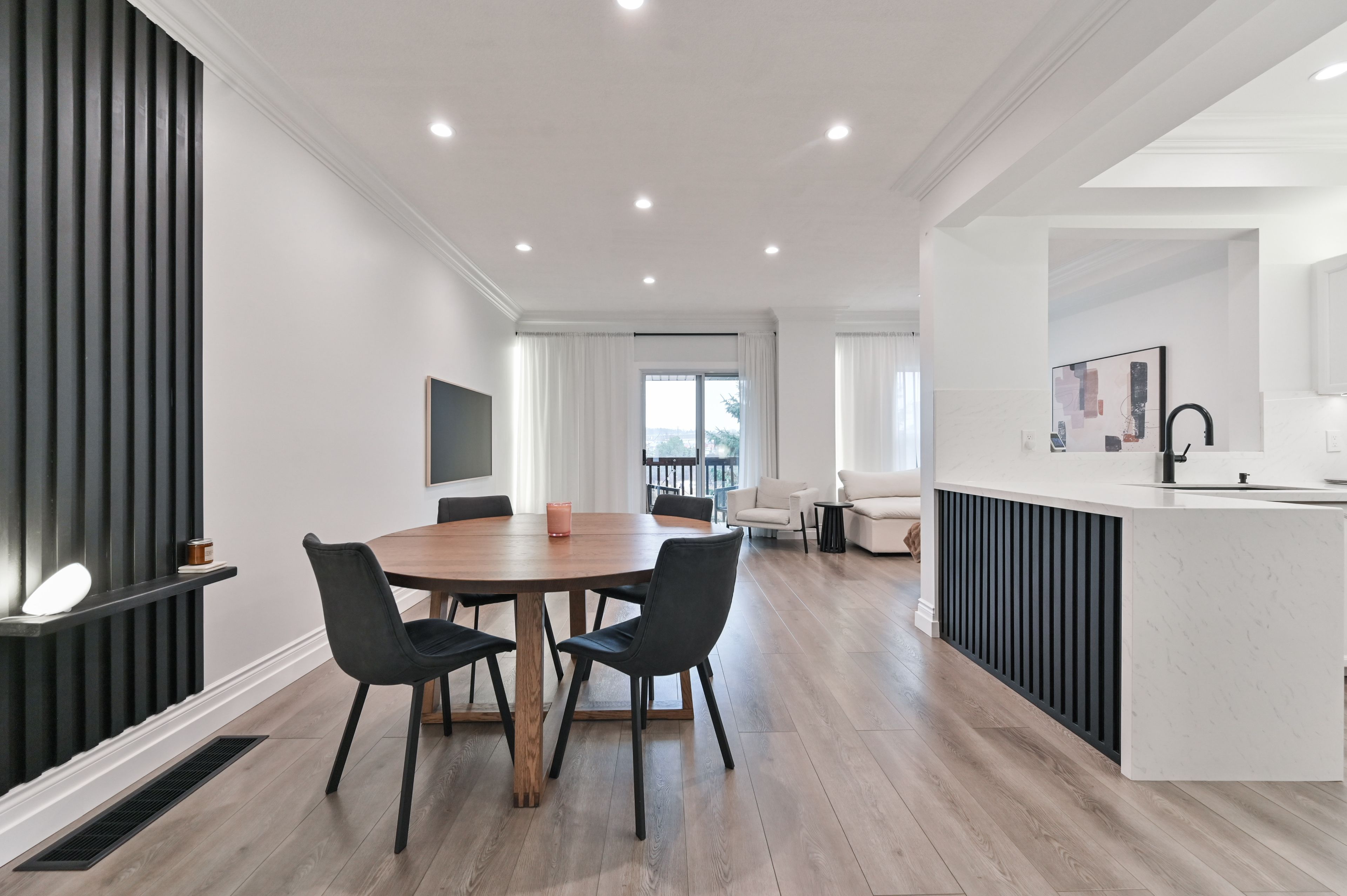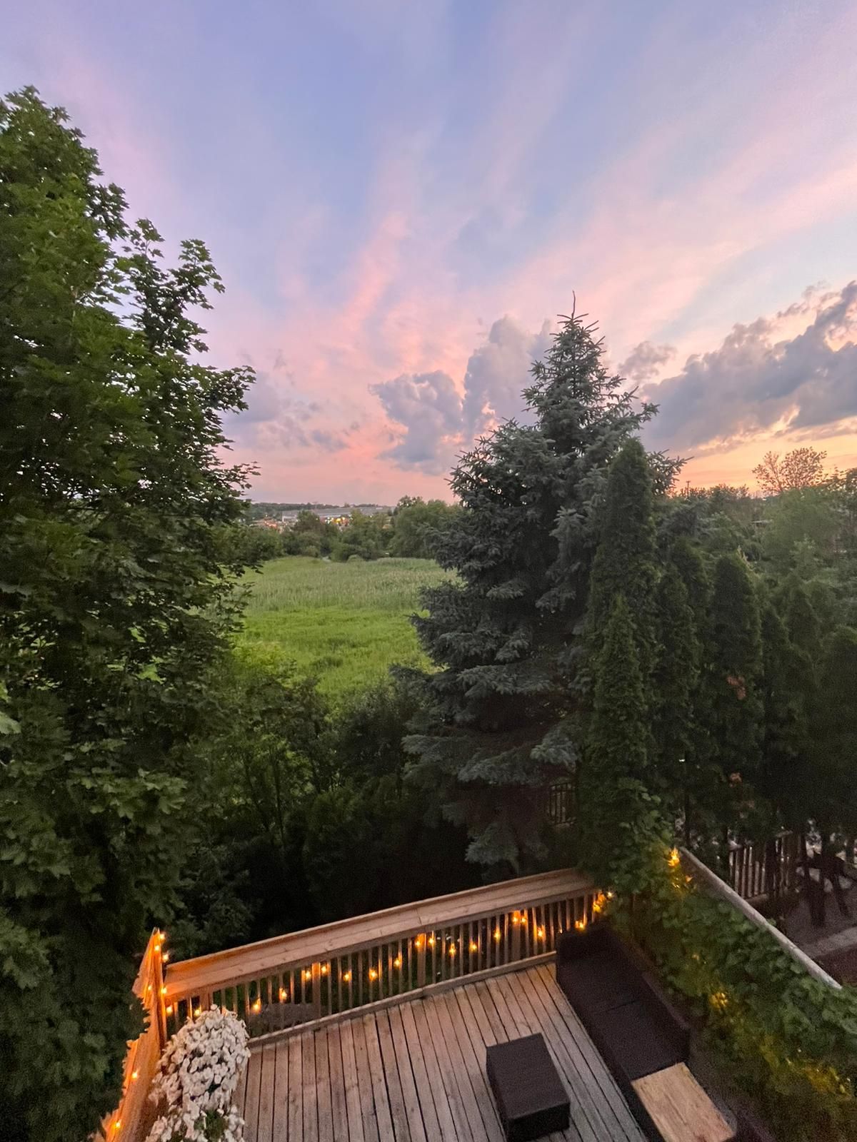 Beautifully renovated townhome backing onto private greenspace with no rear neighbours in sought-after aurora. Located on a quiet street yet just minutes from the aurora go station and aurora's vibrant downtown filled with shops, restaurants, and entertainment. This exceptionally bright open-concept home offers 3 bedrooms and 2. 5 bathrooms and shows true pride of ownership, having been professionally renovated from top to bottom with modern, elegant finishes throughout. The primary suite features a walk-in closet and a beautifully updated ensuite with heated floors and a state-of-the-art shower panel, creating a spa-like retreat. The home's most striking feature is the dramatic walk-out basement, designed with a loft-like feel and a stylish bar overlooking the space below. Large windows fill the area with natural light, creating an incredible setting for entertaining. Step directly outside to the expansive private deck overlooking peaceful greenspace, an ideal space for hosting gatherings while enjoying the rare privacy of having no rear neighbours. With tranquil views behind the home, the outdoor setting offers a level of privacy rarely found in townhomes and creates an inviting atmosphere for entertaining or relaxing. A truly unique and beautifully upgraded home combining modern style, dramatic living space, and exceptional indoor-outdoor entertaining.