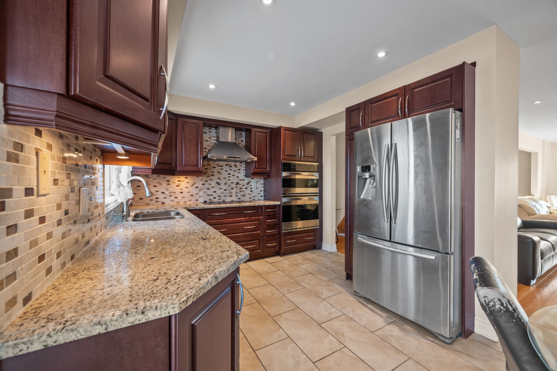 Step into this move-in-ready executive townhome situated in one of mississauga's most dynamic areas. From the entryway, the home's unique warmth and character immediately stand out, creating an inviting atmosphere that's great for everyday living and entertaining. The main floor offers impressive ceiling height and direct access from the breakfast area to a raised deck- an ideal spot to start your day or relax in the evenings. The home includes a bright eat-in kitchen with a breakfast bar and stainless steel appliances, along with a private fenced backyard featuring a finished walkout. Three well-sized bedrooms and four bathrooms provide plenty of room for families and guests alike. Sunlight fills the home throughout, adding to its comfortable and uplifting feel. Its central location places you minutes from highway 401 and 403, square one, grocery stores, gyms, schools, places of worship, and the new transit system right nearby. This is a rare opportunity to own a home that blends comfort, convenience, and modern living in one of mississauga's most desirable neighbourhoods.