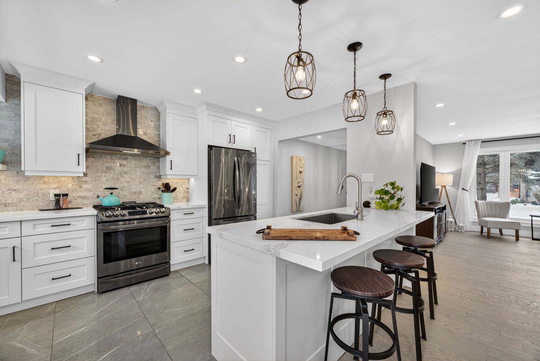 • Updated raised bungalow on a private half-acre lot in Mono Mills.