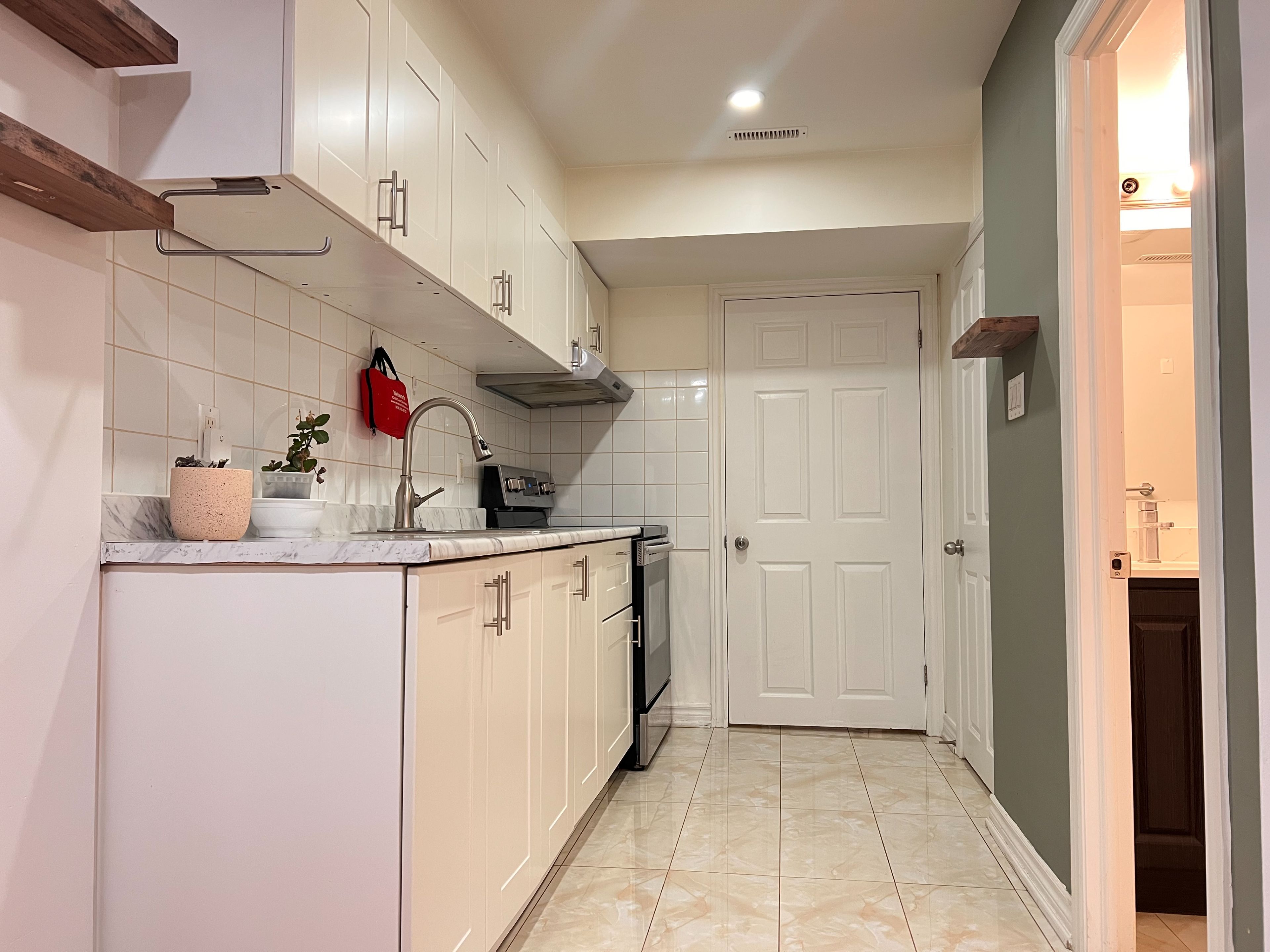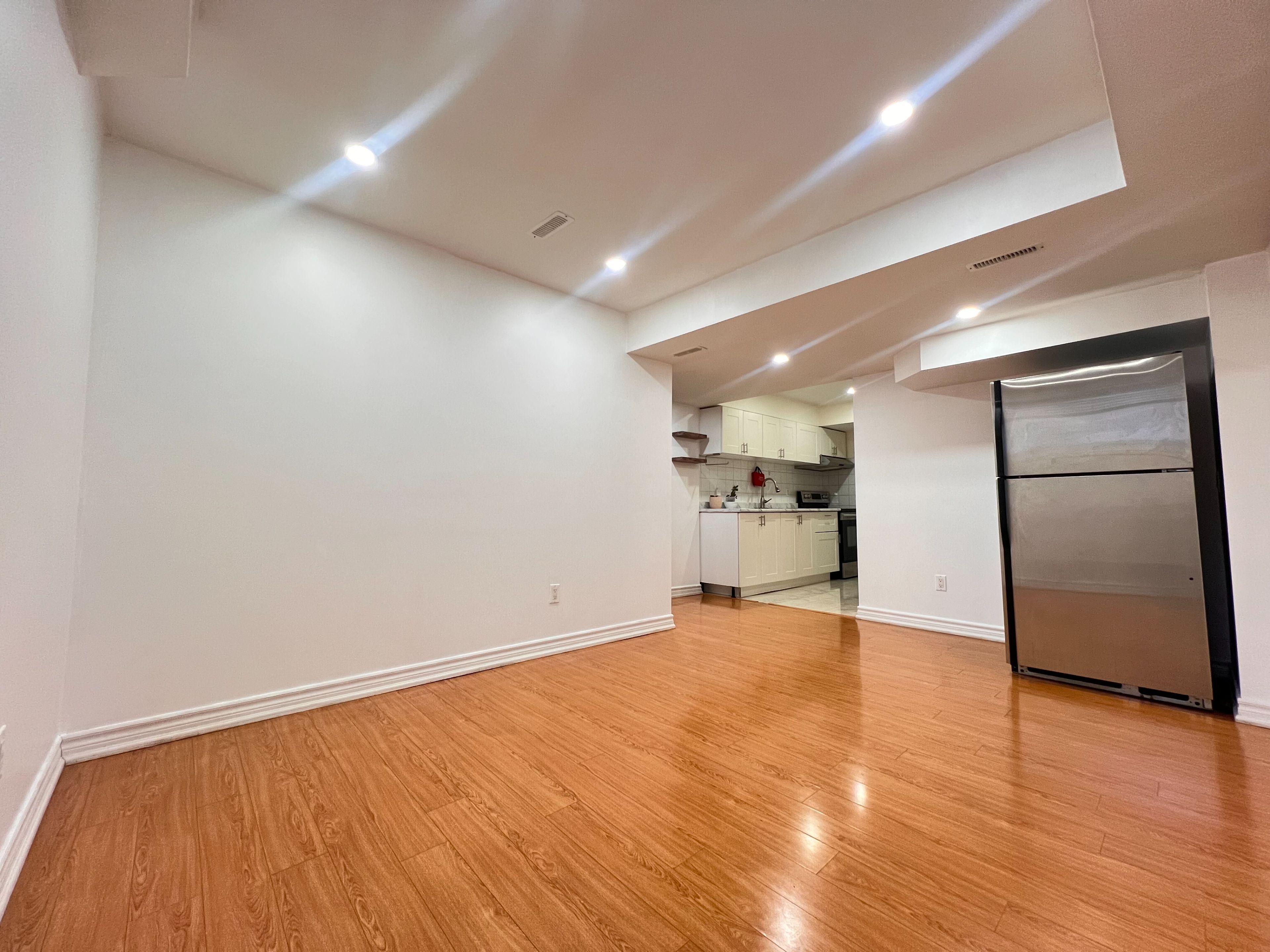 Recently renovated walk-out basement apartment with a separate private entrance. Features an open-concept living area, upgraded flooring, and fresh paint throughout. The modernized bathroom adds a stylish touch.