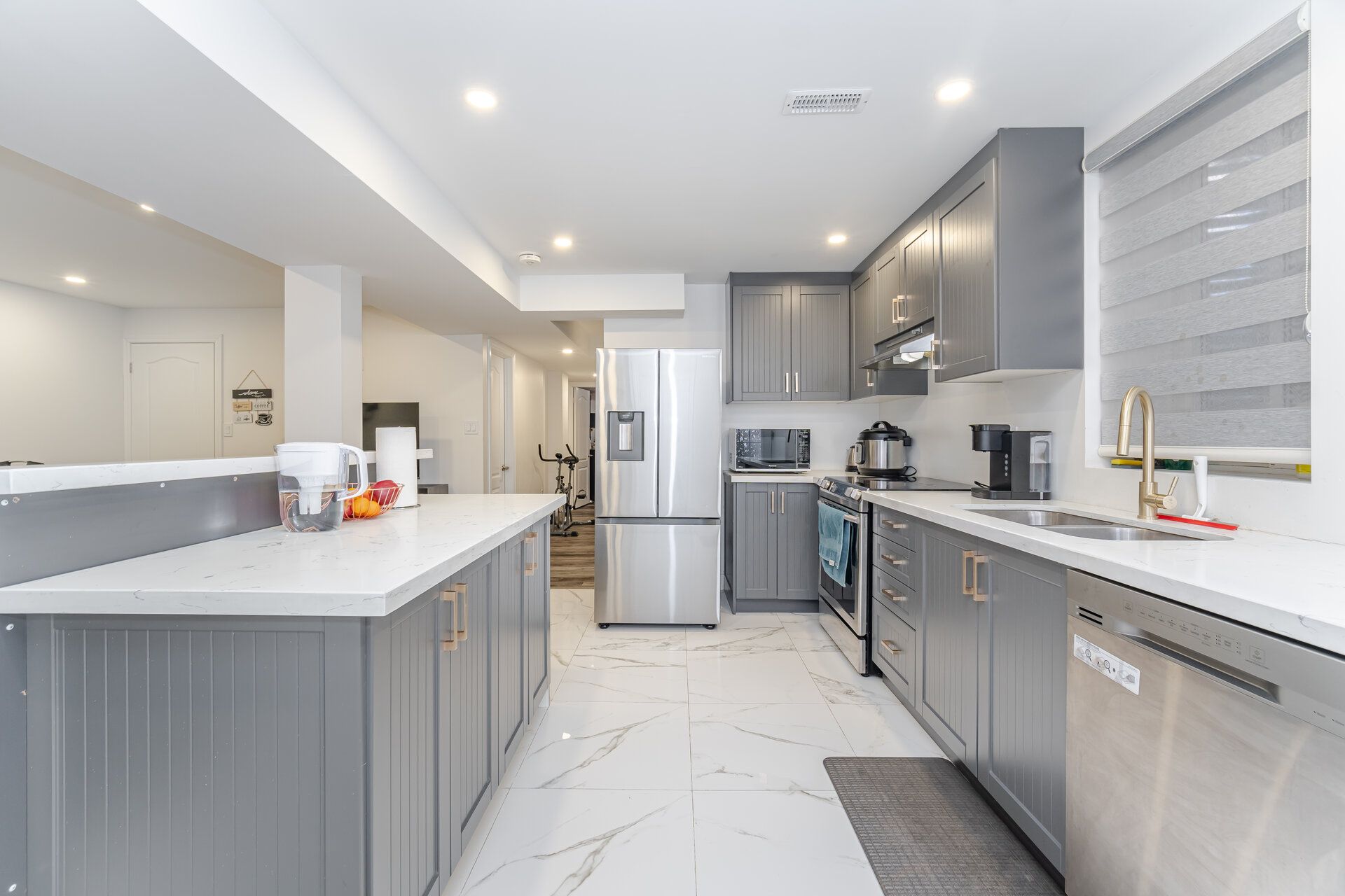 Stunning east facing 4+1 bedroom home featuring 3 full washrooms on the second floor, a main-floor den, and a legal 1-bedroom finished basement with a separate entrance, separate laundry, and all amenities. The owner has invested over $100k in upgrades throughout the home. The basement currently has a aaa tenant paying $1,700 monthly and is willing to stay. This beautifully maintained property offers hardwood floors throughout the main level and upper hallway, a spacious master bedroom with a walk-in closet, and upgraded ensuite washrooms featuring modern standing showers in both the master bedroom and a second bedroom, providing added comfort and convenience. The main floor includes a convenient laundry room and a fully upgraded kitchen with granite countertops, complemented by 9-foot ceilings for a bright, open feel. The exterior showcases stamped concrete on the driveway, around the home, and into the backyard, creating a seamless and elegant finish. Ideally located close to major amenities and the go station, this home provides exceptional comfort, convenience, and premium finishes throughout.
