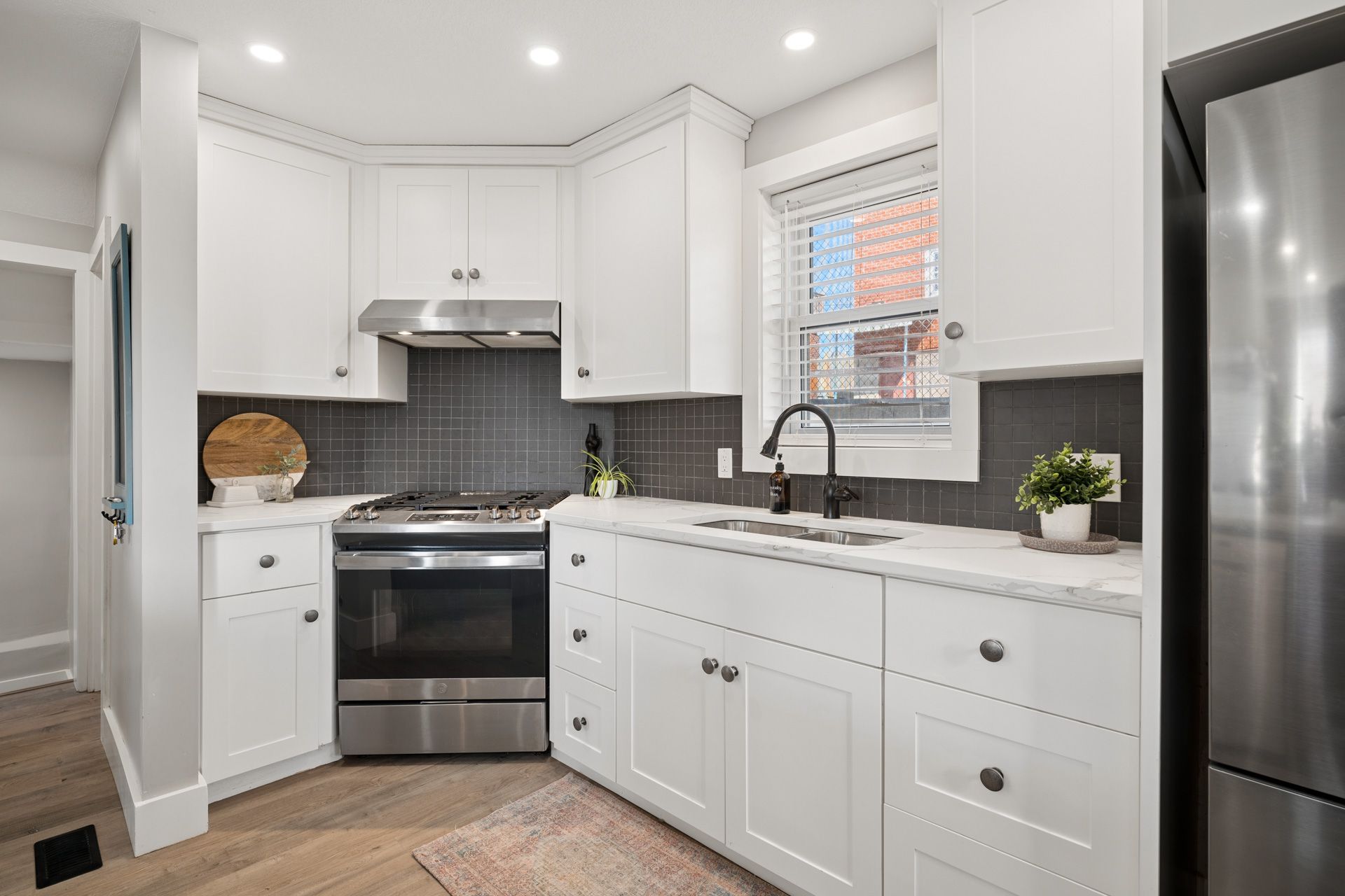 • Stylish kitchen with quartz countertops and oversized island for entertaining.
