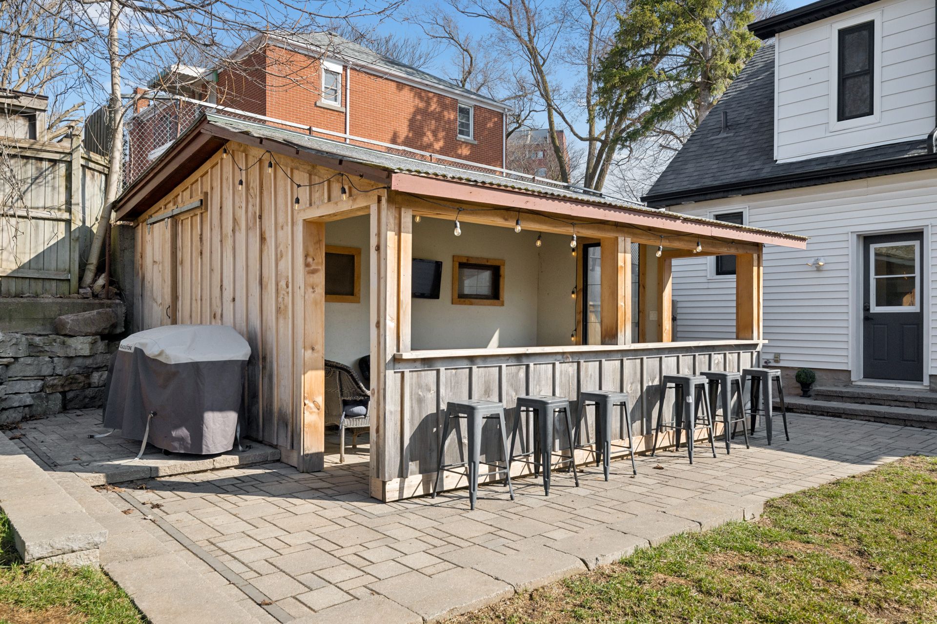 Fully renovated from top to bottom, this stunning 3-bedroom, 1. 5-bath home offers the perfect blend of modern design, thoughtful upgrades, and lifestyle-set in a highly sought-after central kitchener location just minutes from downtown amenities like victoria park, st. Mary's hospital, iron horse trail, shopping, and quick highway access. Step inside to a bright, open-concept main floor where pot lights and large windows fill the space with natural light. The beautifully updated two-tone kitchen (2020) features quartz countertops, a stylish backsplash, stainless steel appliances, and an oversized island ideal for entertaining. Major 2020 updates also include windows, doors, and extensive interior improvements, delivering a truly turnkey experience. The inviting living area is anchored by a cozy gas fireplace (2020) with custom built-ins and a wood mantle. A separate, spacious dining room provides versatility as an optional main floor bedroom. Upstairs offers two well-appointed bedrooms and a renovated bathroom (2020) with clean, contemporary finishes. The lower level provides excellent potential for a future fourth bedroom, office, or guest space, with updated plumbing throughout (2020, no cast iron) and a spacious laundry area. Additional upgrades include added insulation throughout most of the main floor, central a/c (2021), water softener (2020), and rented hot water heater (2021). Step outside to a professionally landscaped, fully fenced backyard featuring updated interlock (2024) and a standout detached covered structure with bar seating, lighting, and lounge space with tv capability-perfect for entertaining. A 16x10 sunroom and 16x8 shed, both with updated board and batten siding (2021), add functional space. Curb appeal is enhanced with new siding, fascia, and soffit (2022), plus a newly finished armour stone driveway (2025). Don't wait to call this move-in ready home yours!