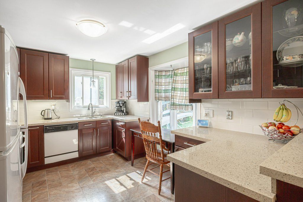 • Cozy eat-in kitchen with gas fireplace and deck access for outdoor dining.