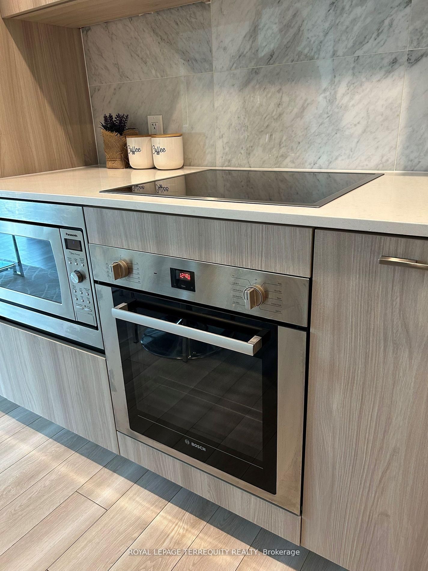 • Modern kitchen equipped with Bosch and Panasonic appliances, soft close cabinets.