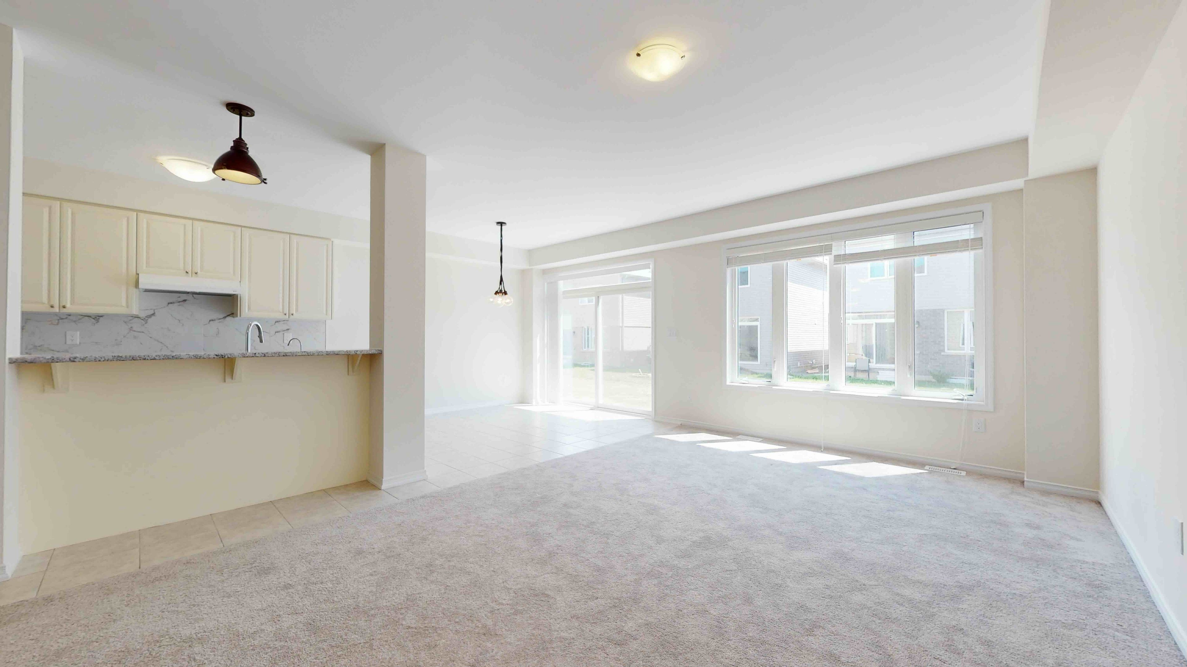 • Bright open-concept living and dining area with 9-ft ceilings.