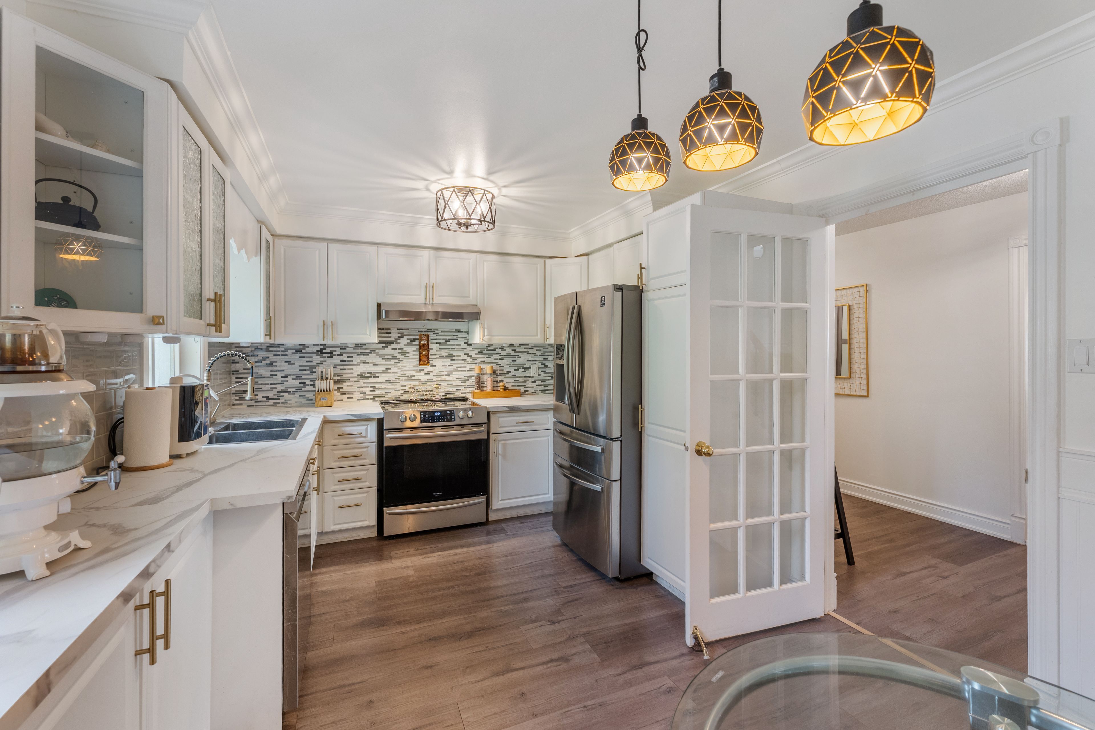• Finished basement with separate entrance, great for rental income potential.