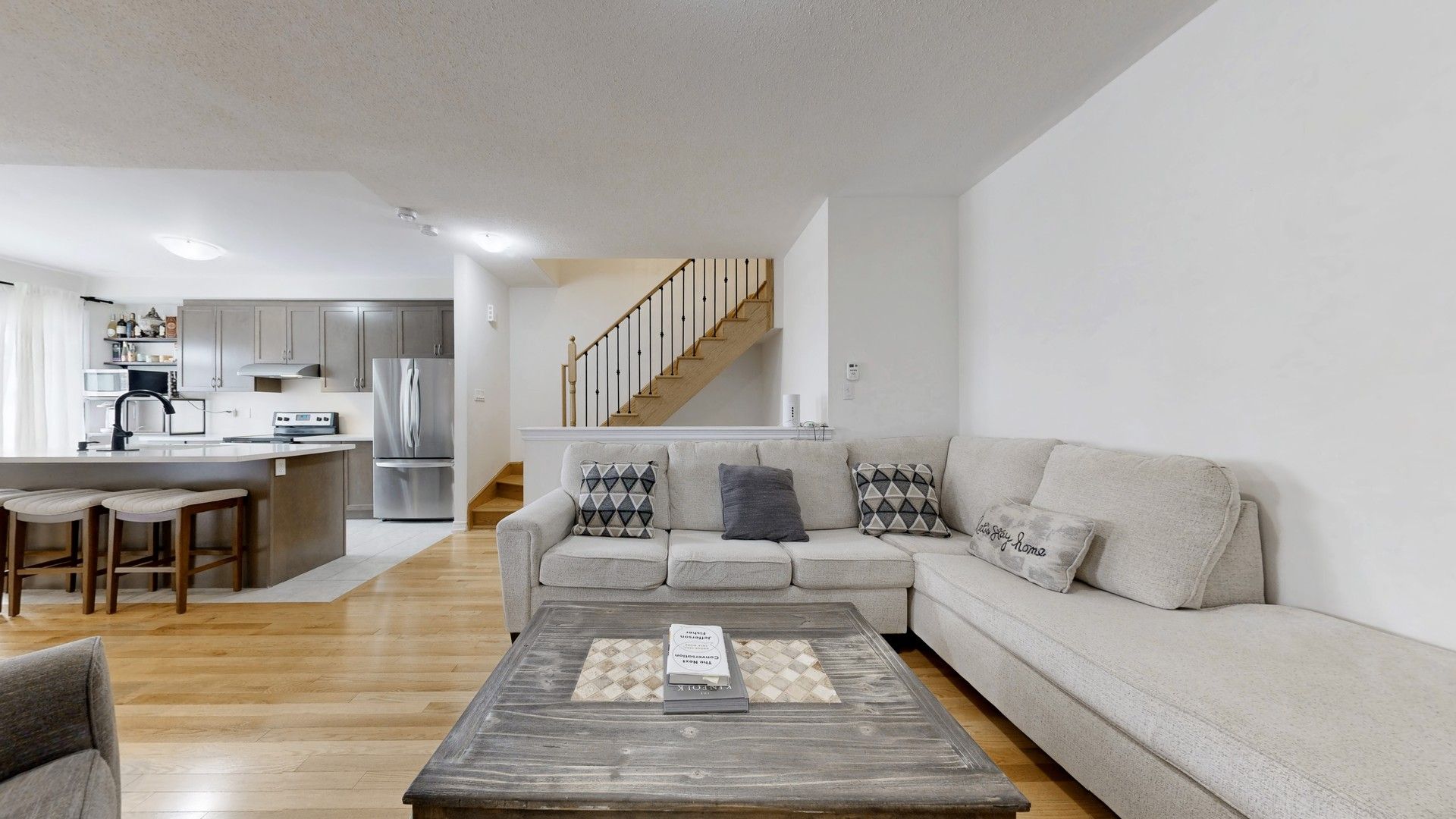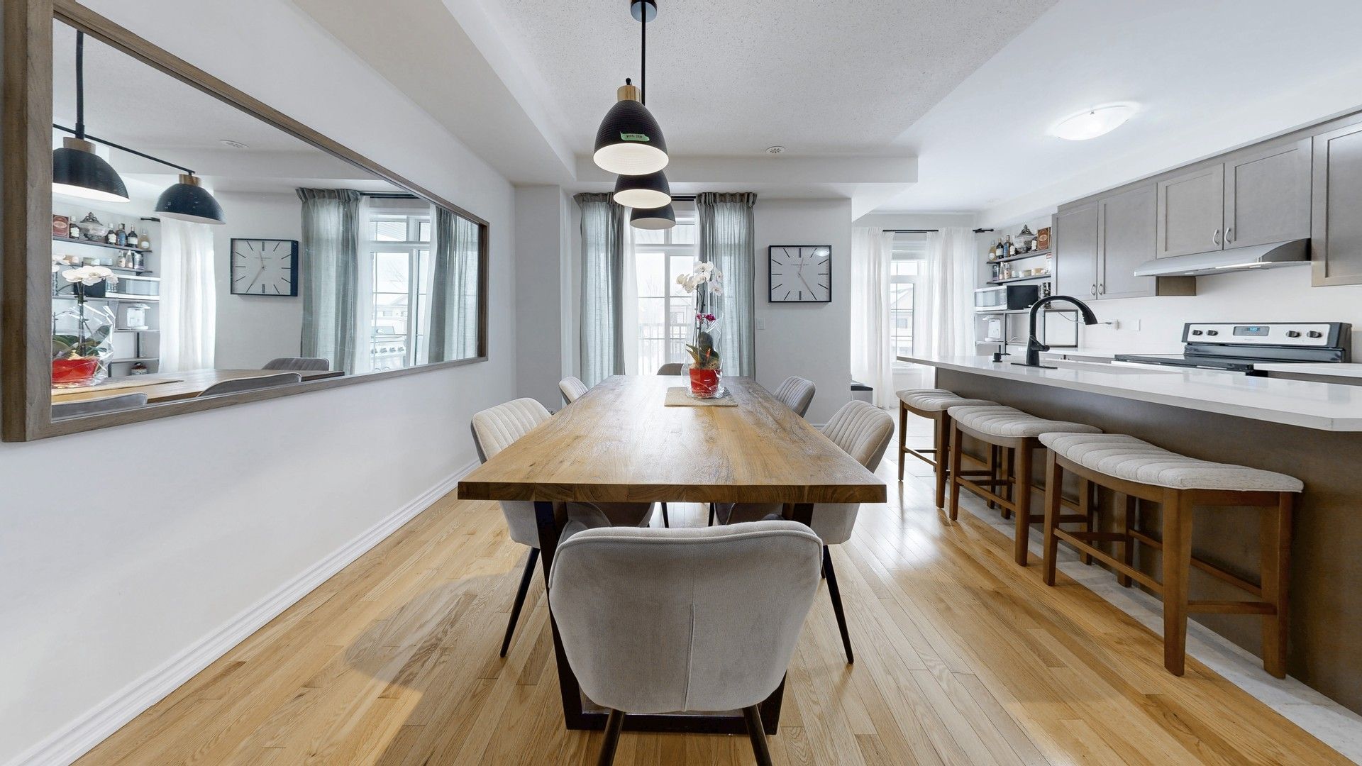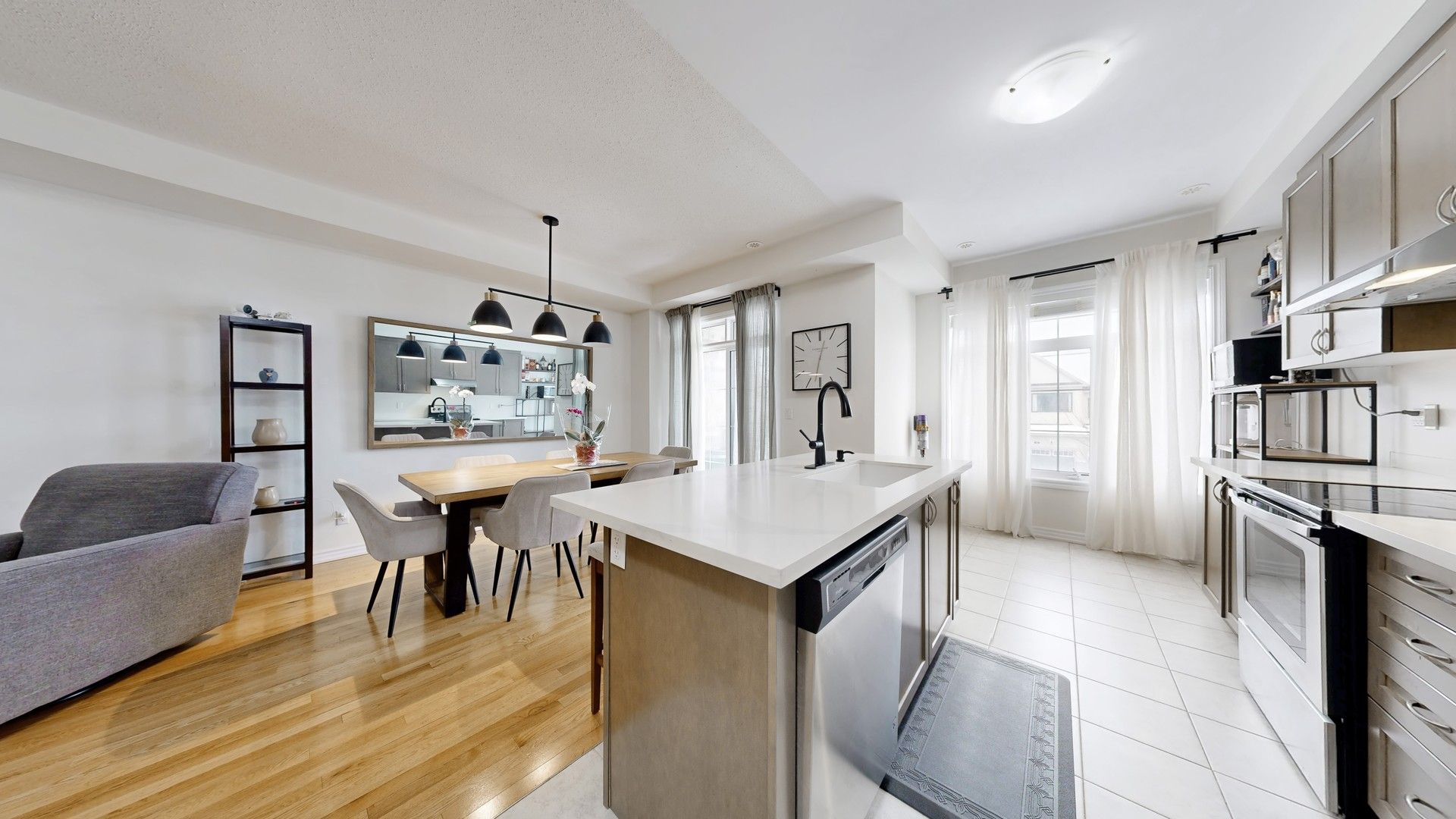 Welcome to this gorgeous townhouse in a vibrant, family-oriented community. Enjoy a bright, open-concept layout with 9-ft ceilings and seamless flow throughout the main floor. The kitchen features stainless steel appliances and a walk-out to a spacious balcony with gas bbq hookup - ideal for summer nights. The primary retreat offers double closets plus a walk-in for extra storage. Large foyer with double closet and direct garage access for added convenience. Just steps to carnaby park, scenic trails, schools, go transit, shopping, dining, and quick access to hwy 404.