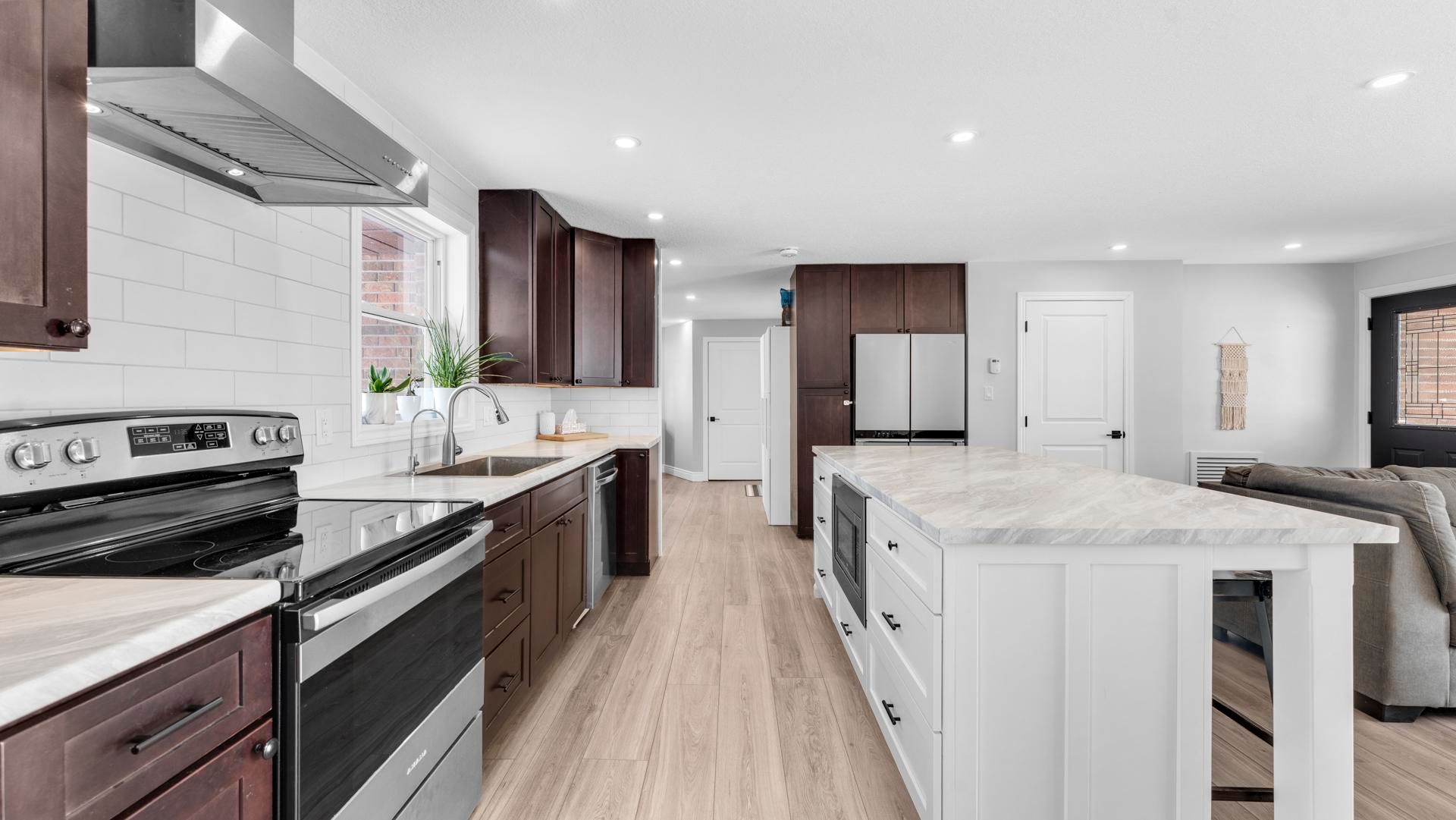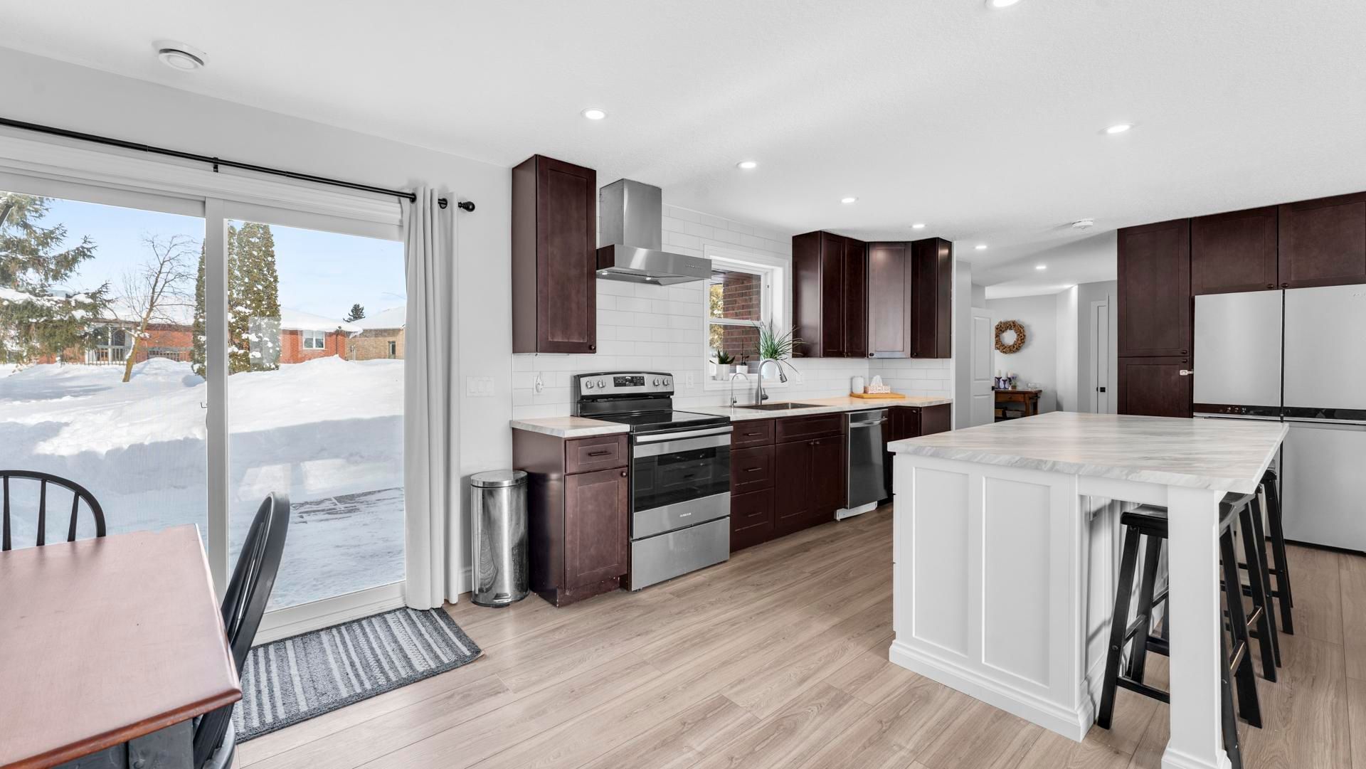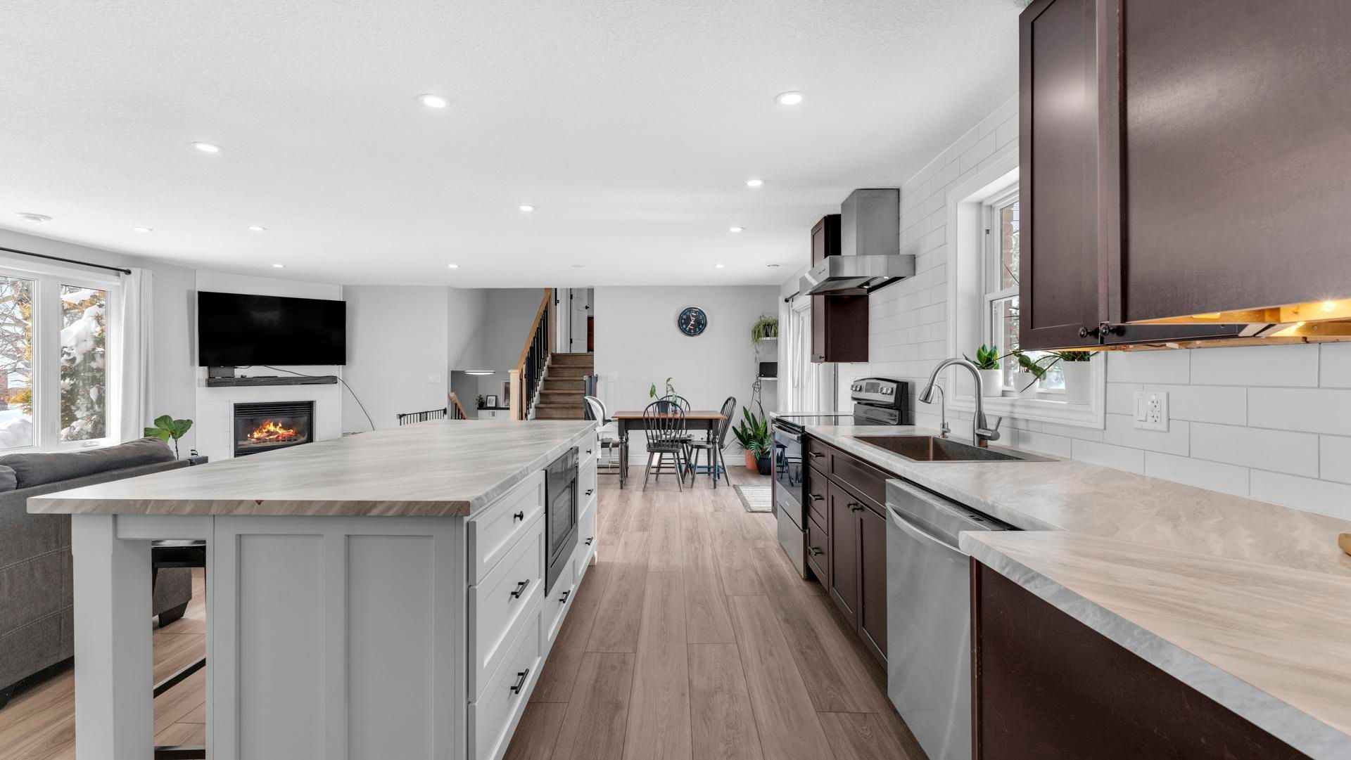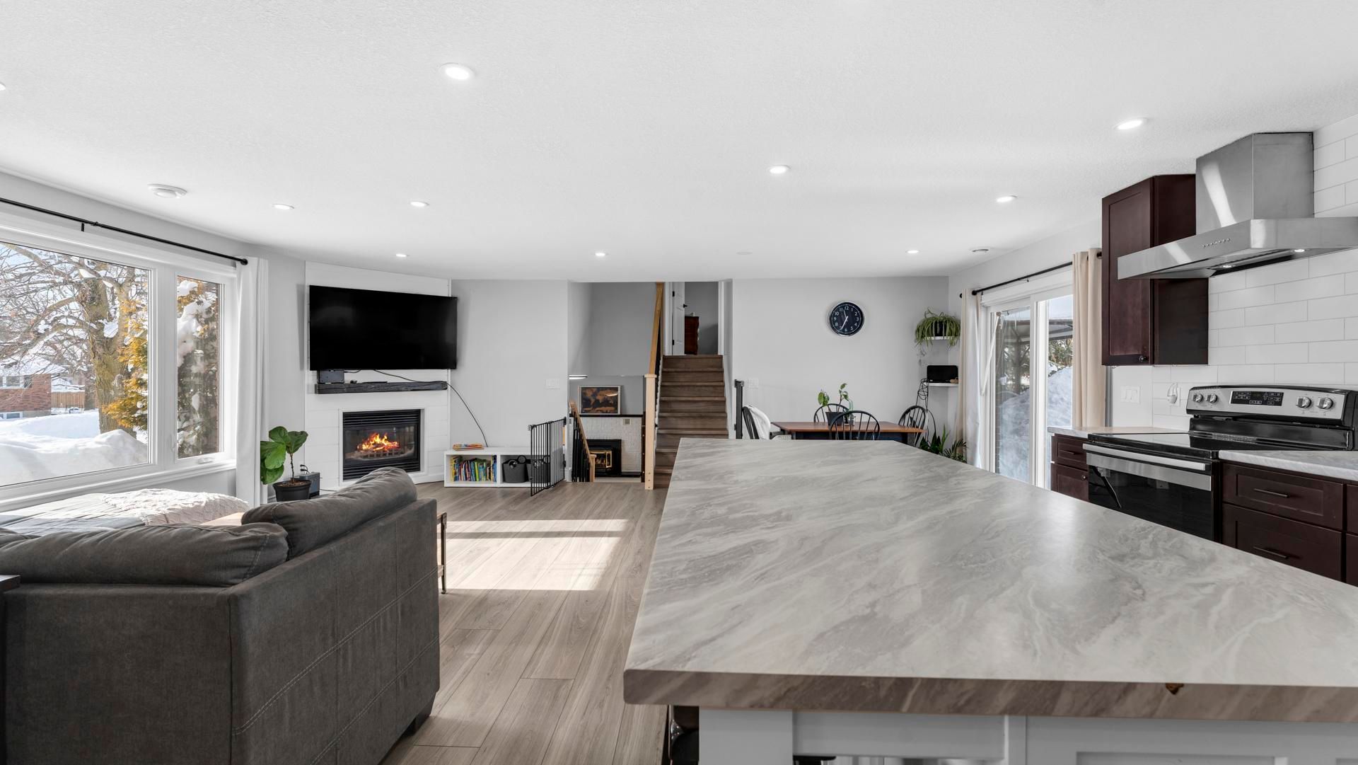 Situated on a quiet dead-end street in desirable chesley neighbourhood, this fully updated, move-in ready side-split delivers modern living in an exceptional community. Thoughtfully renovated throughout, this home has been converted to natural gas with newer furnace and central air units, offering efficiency and comfort. Bright and open-concept, the home features 3 spacious bedrooms and 3 bathroom bathrooms, designed for both everyday living and entertaining. The stunning kitchen showcases a large island and pantry space, ideal for hosting, while the inviting living room is anchored by a cozy gas fireplace. Main floor laundry adds convenience. The upper level offers two good-sized bedrooms and a stylish 4-piece bath. The lower split includes a family room with gas stove, a third bedroom, and a modern 3-piece bath-perfect for guests or flexible living. Outside, enjoy a private patio overlooking the large backyard. Additional highlights include an attached garage, new gas furnace and air conditioning, and close proximity to parks, schools, and amenities. A refined home offering quality, comfort, and location.