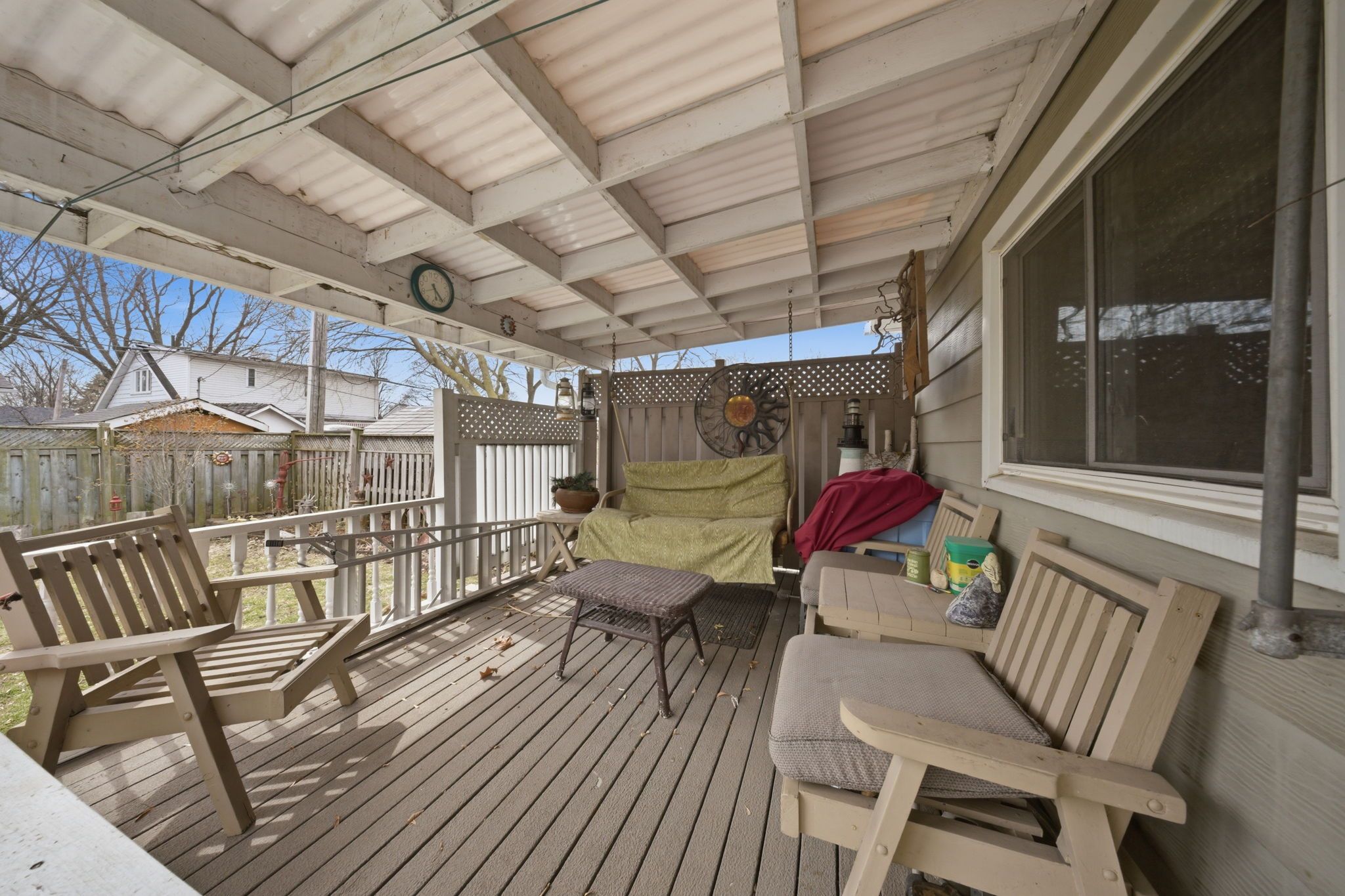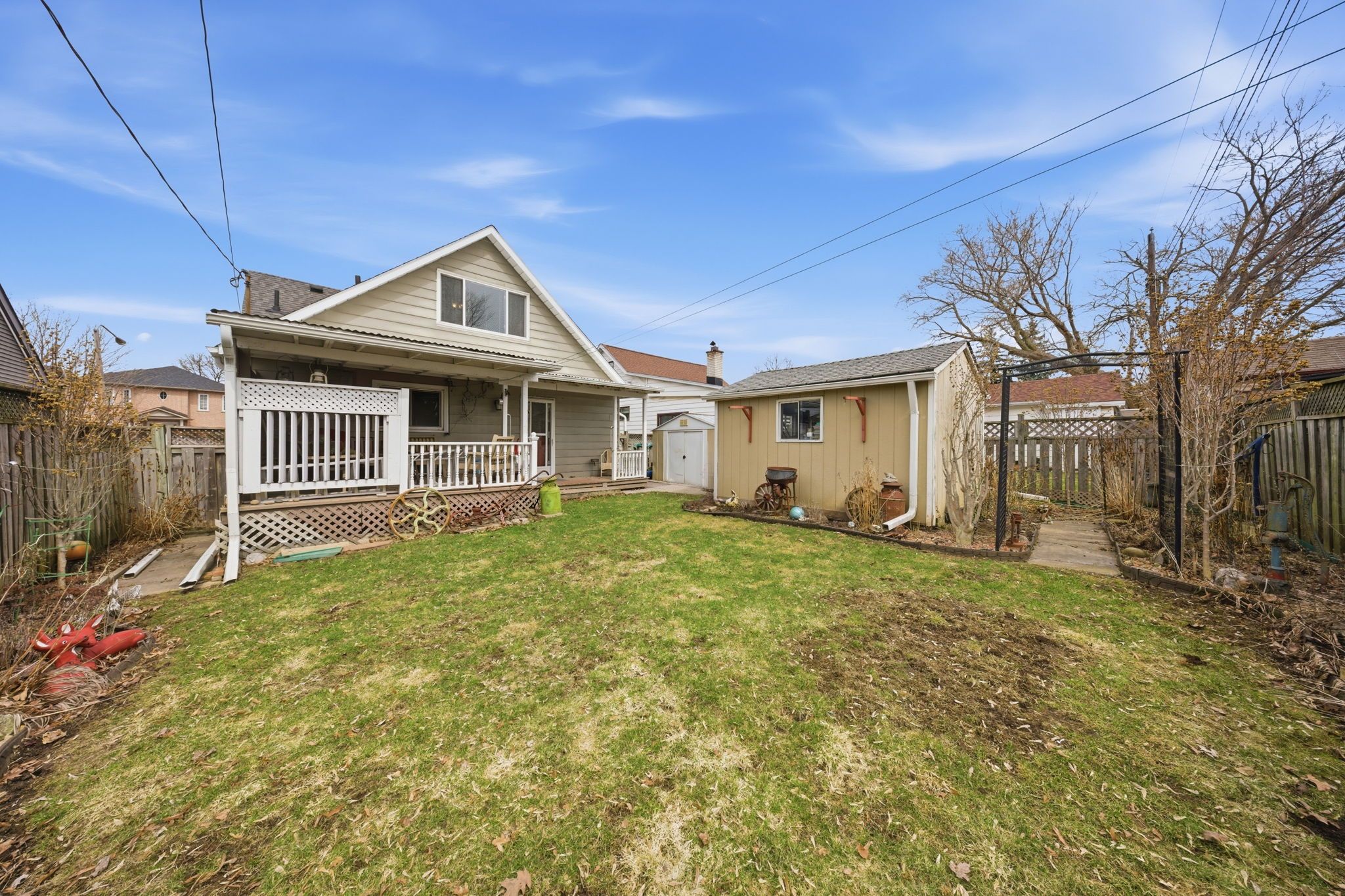 • Private yard with a deck and two sheds for outdoor storage.