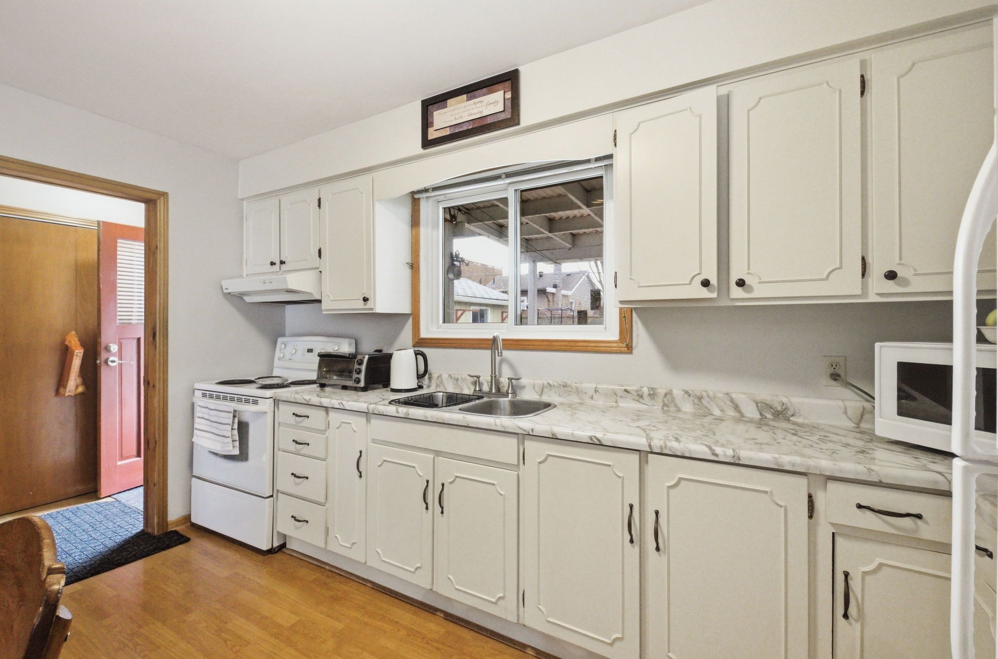 • Open eat-in kitchen that overlooks a formal dining area for gatherings.